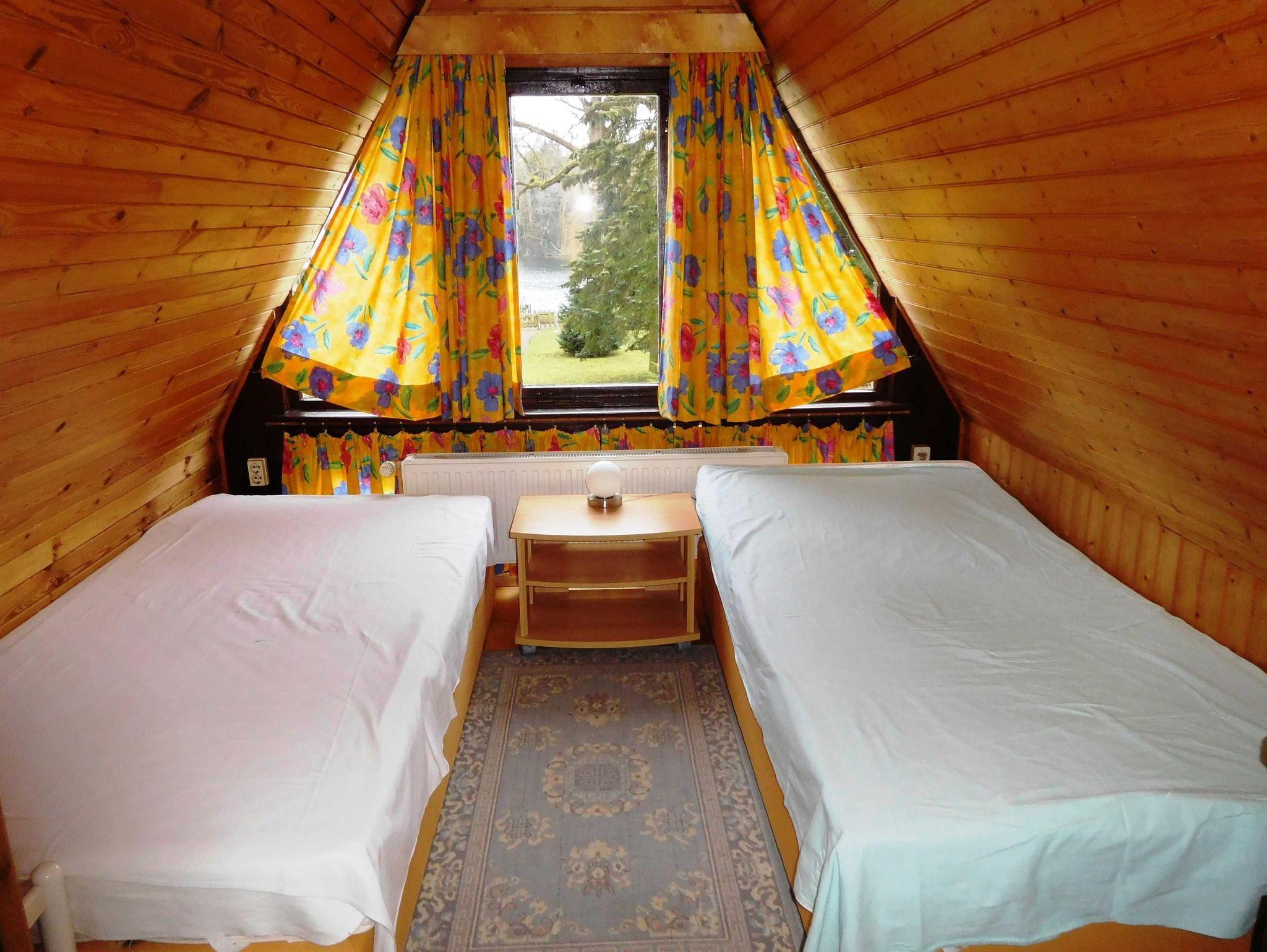Das Ferienhaus zeichnet sich durch die besondere Lage am See aus. Es ist für 4 Personen ausgestattet. Im Erdgeschoss gibt es eine kleine Küche, Bad mit Dusche und einen Wohnraum mit Seeblick. Über eine Wendeltreppe erreicht man den Schlafbereich, der in 2 Zimmer mit jeweils 2 Einzelbetten ausgestattet ist.