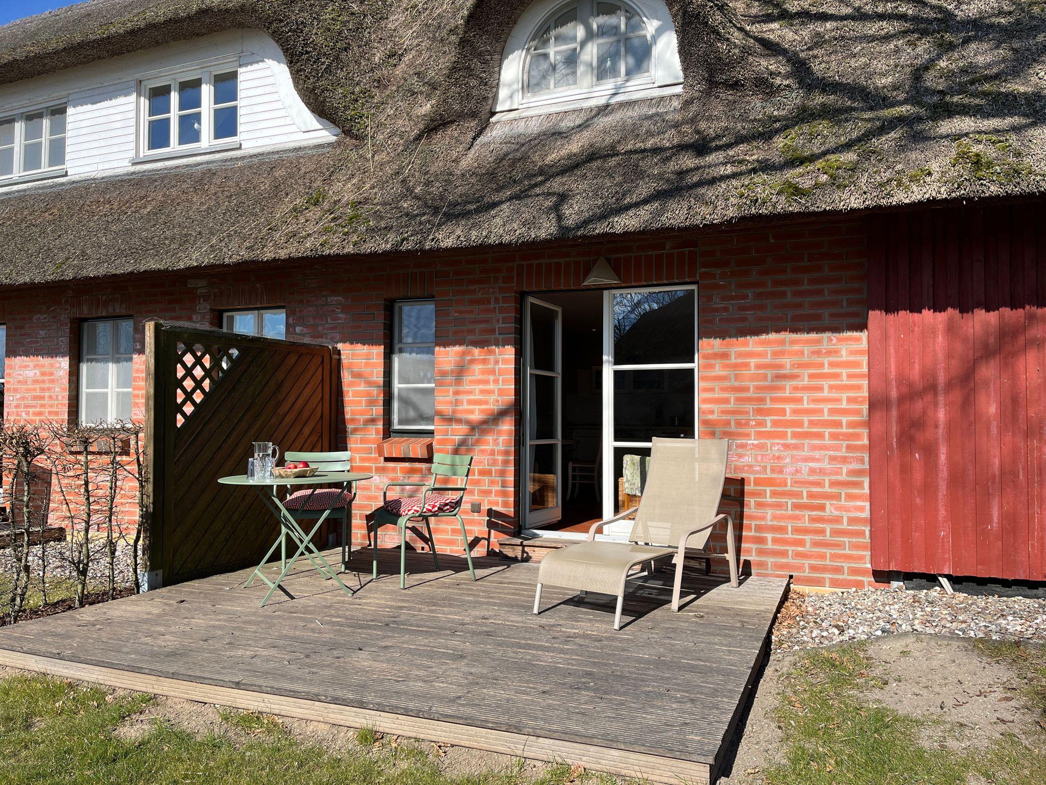 Das romantisch reetgedeckte Haus beherbergt 6 individuelle, komfortable Ferienwohnungen. Auf dem großzügig, malerisch gelegenen Grundstück befinden sich außerdem ein weiteres reetgedecktes Ferienhaus in typisch skandinavischer Holzbauweise.