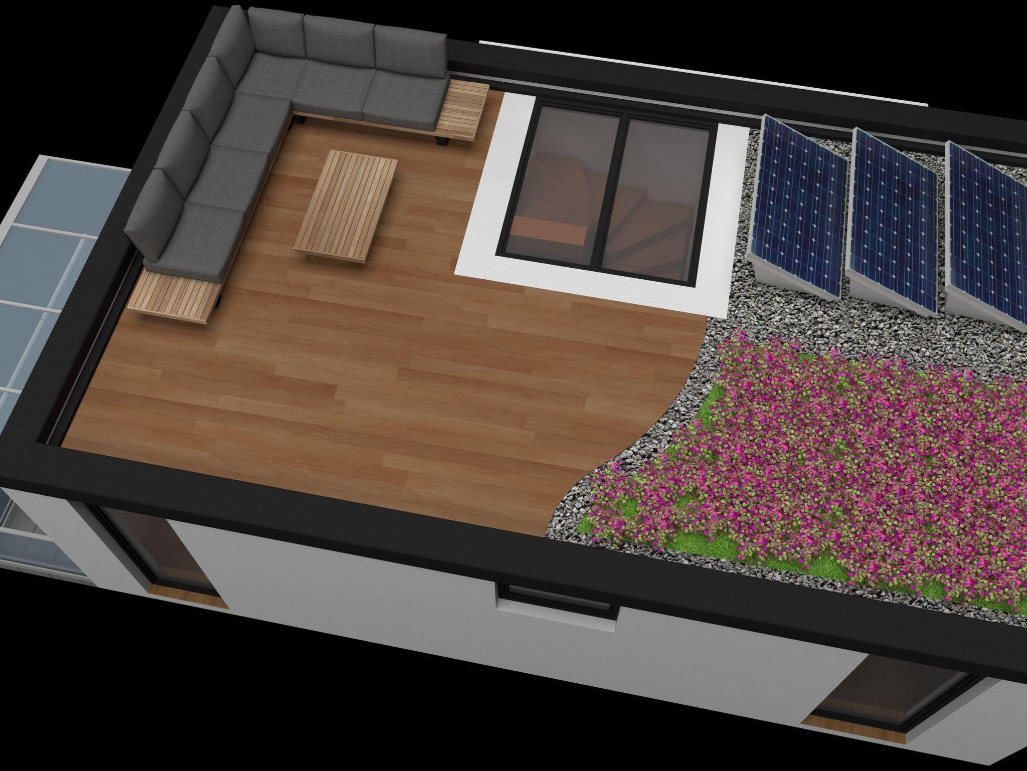 Das Dachgeschoss beherbergt ein große Dachterrasse mit fantastischen Blick über den Altdorfer See oder in den Sternenhimmel.