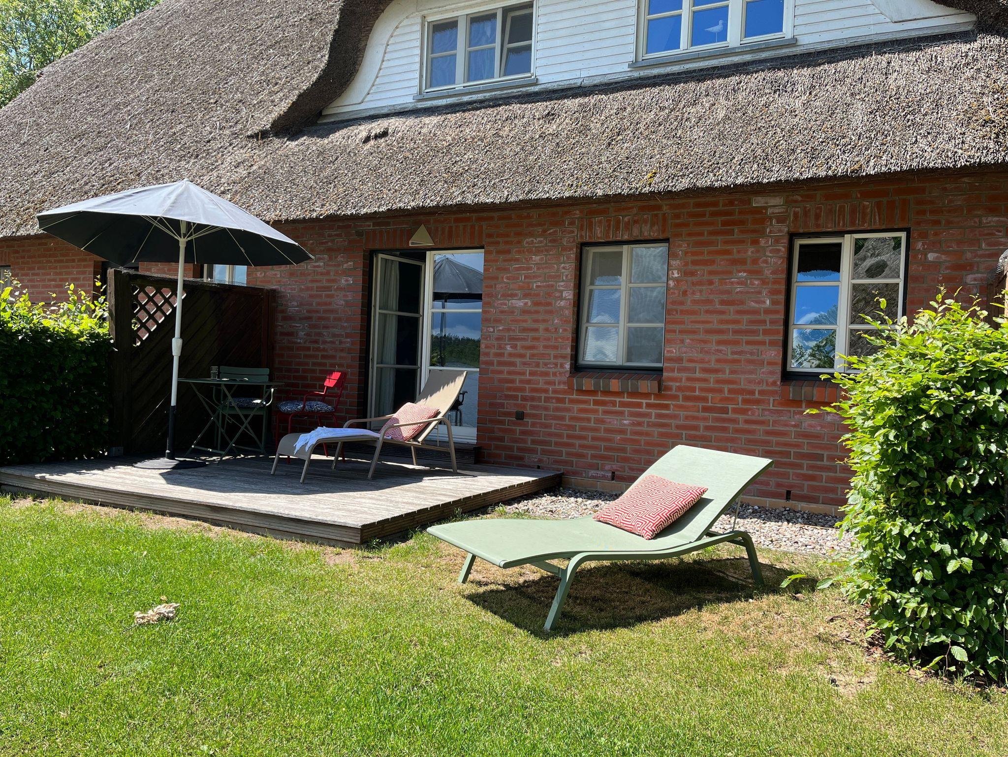Das romantisch reetgedeckte Haus beherbergt 6 individuelle, komfortable Ferienwohnungen. Auf dem großzügig, malerisch gelegenen Grundstück befinden sich außerdem ein weiteres reetgedecktes Ferienhaus in typisch skandinavischer Holzbauweise.