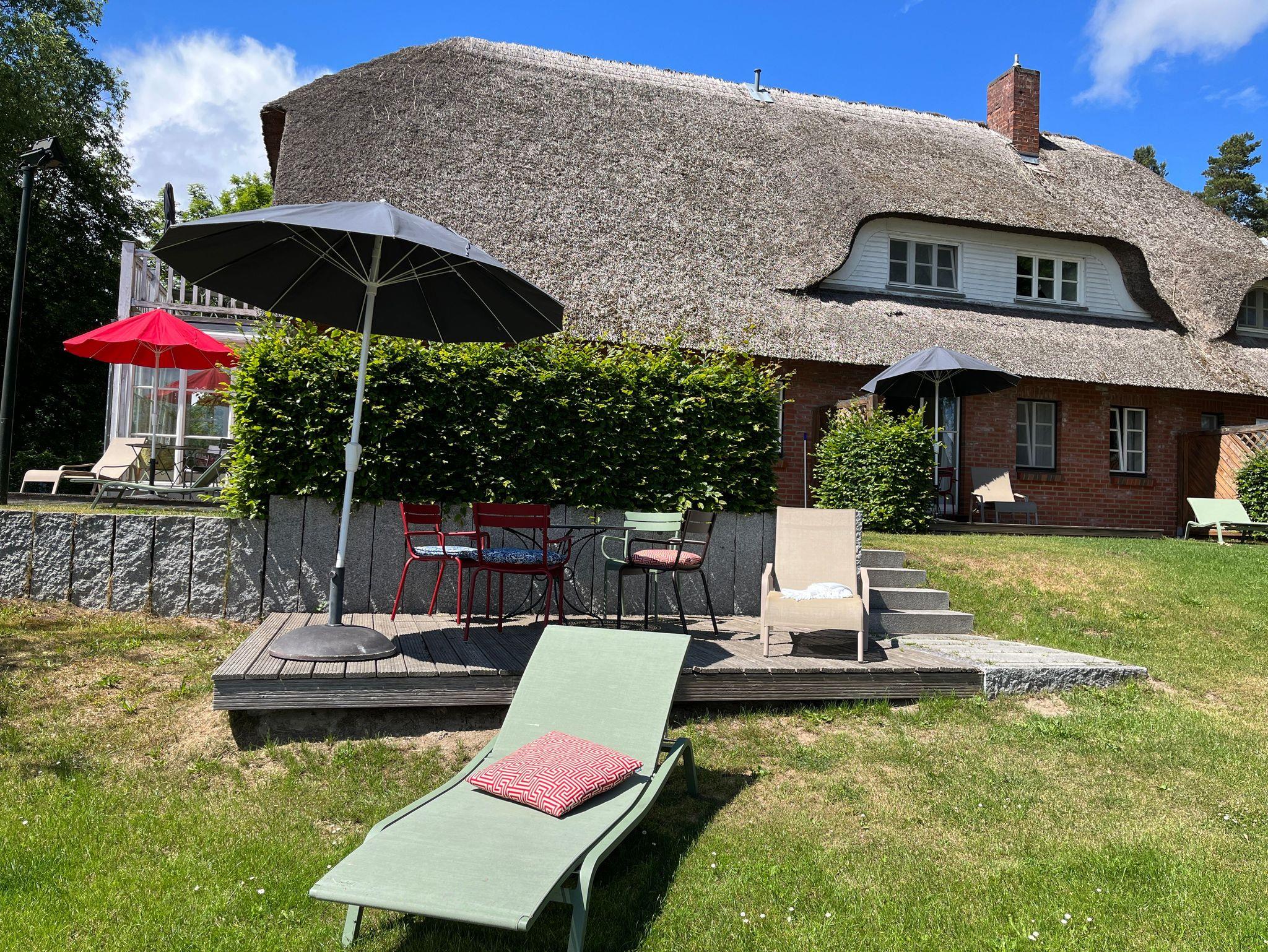 Das romantisch reetgedeckte Haus beherbergt 6 individuelle, komfortable Ferienwohnungen. Auf dem großzügig, malerisch gelegenen Grundstück befinden sich außerdem ein weiteres reetgedecktes Ferienhaus in typisch skandinavischer Holzbauweise.