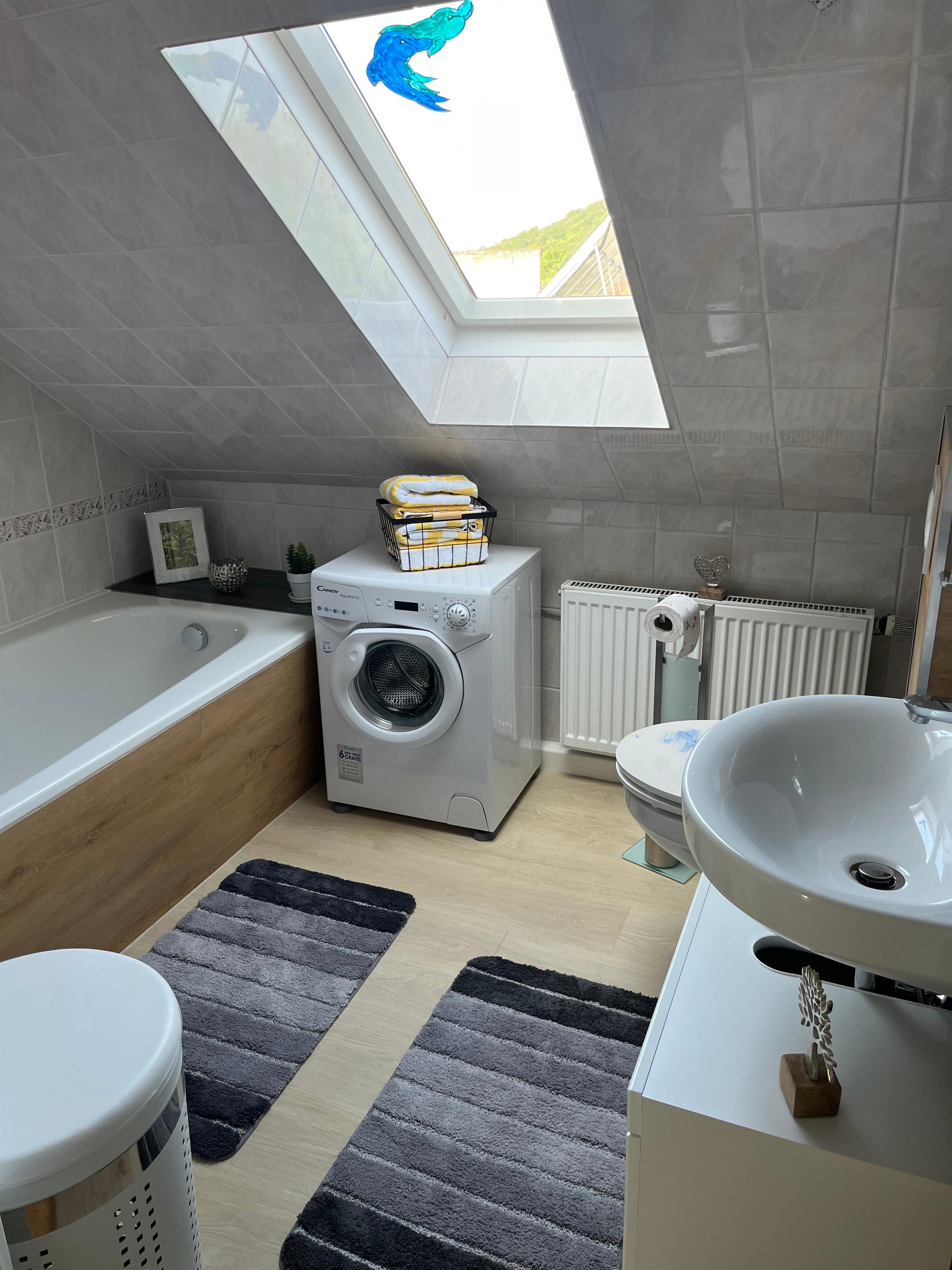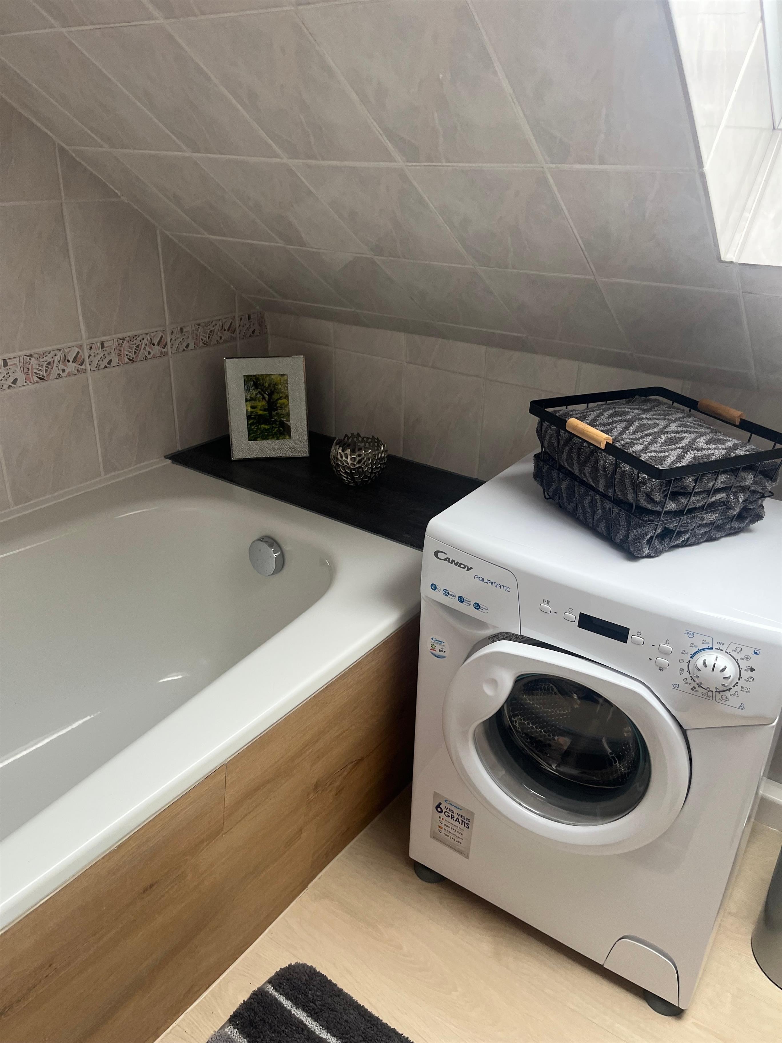 Bücher, Spiele ,Staubsauger, Waschmaschine und Wäscheständer sind auch vorhanden. Handtücher und Bettwäsche sind im Preis mit inbegriffen.