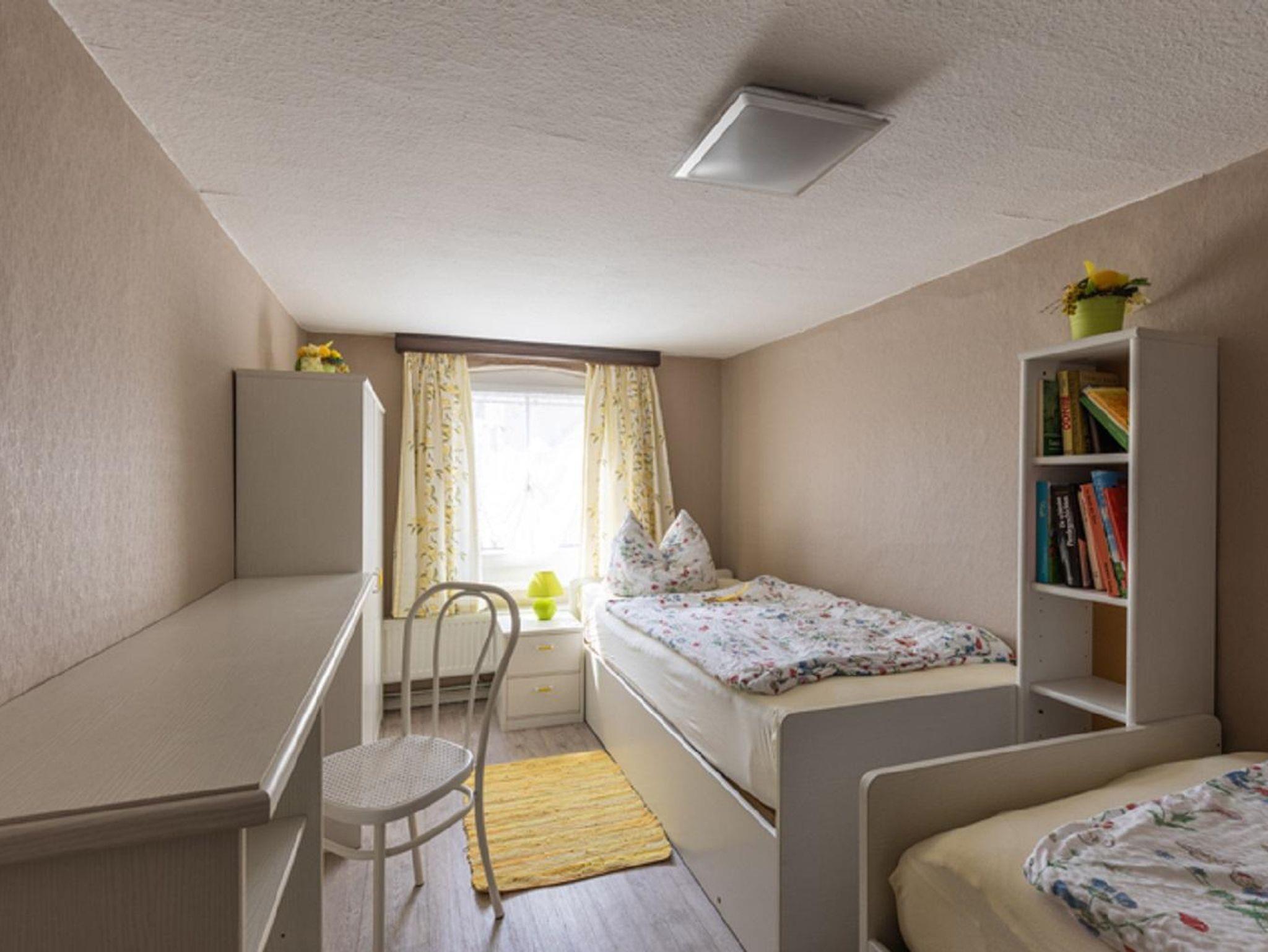Die kleine Ferienwohnung im Dachgeschoss ist ca. 28 qm groß und bietet Platz für bis zu 2 Personen. Die Wohnung verfügt über ein Schlafzimmer mit getrennten Betten, die Fußenden der Betten sind geschlossen. Die Miniküche verfügt über einen Toaster, eine Mikrowelle und einen Kühlschrank sowie einen 2-Platten-Herd, eine Kaffeemaschine sowie einen Wasserkocher. Das Bad verfügt über eine Dusche sowie ein WC und ein Waschbecken. Vor dem Haus könnt ihr im Grünen sitzen, Grillen und auch Tischtennis spielen. Auch ein Spielplatz für die Kleinen ist vorhanden.