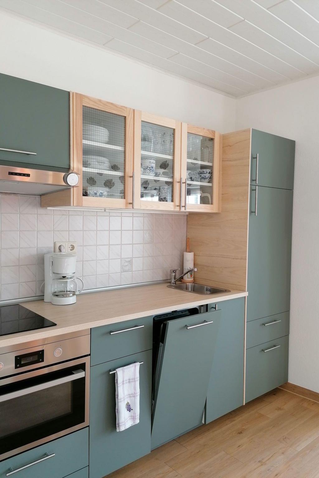 The holiday flat is 50 m² in size and is ideal for 2 people. The flat is located in a detached house and is divided into a living room area with an integrated kitchen, a shower/WC and a bedroom. It has a separate entrance and a car park on the property. SAT-TV, radio, electric cooker, fridge, dishwasher, kettle, toaster, coffee machine, espresso maker, smoothie maker, iron, bed and table linen are included. Wireless internet access is free of charge. You will receive an access code from us to use the internet with your own device.