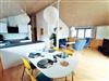 Im großzügigen Wohn-Essbereich können Sie in Ruhe Ihren Urlaubstag starten oder Ihren ereignisreichen Tag ausklingen lassen. Wenn Sie die Türen zum französischen Balkon öffnen, können Sie die Abendsonne reinlassen. Die offene Küche bietet sich an, um sich Ihr Frühstück oder kleinere Mahlzeiten zuzubereiten. Das Badezimmer ist ausgestattet mit Doppelwaschbecken, Dusche und WC.