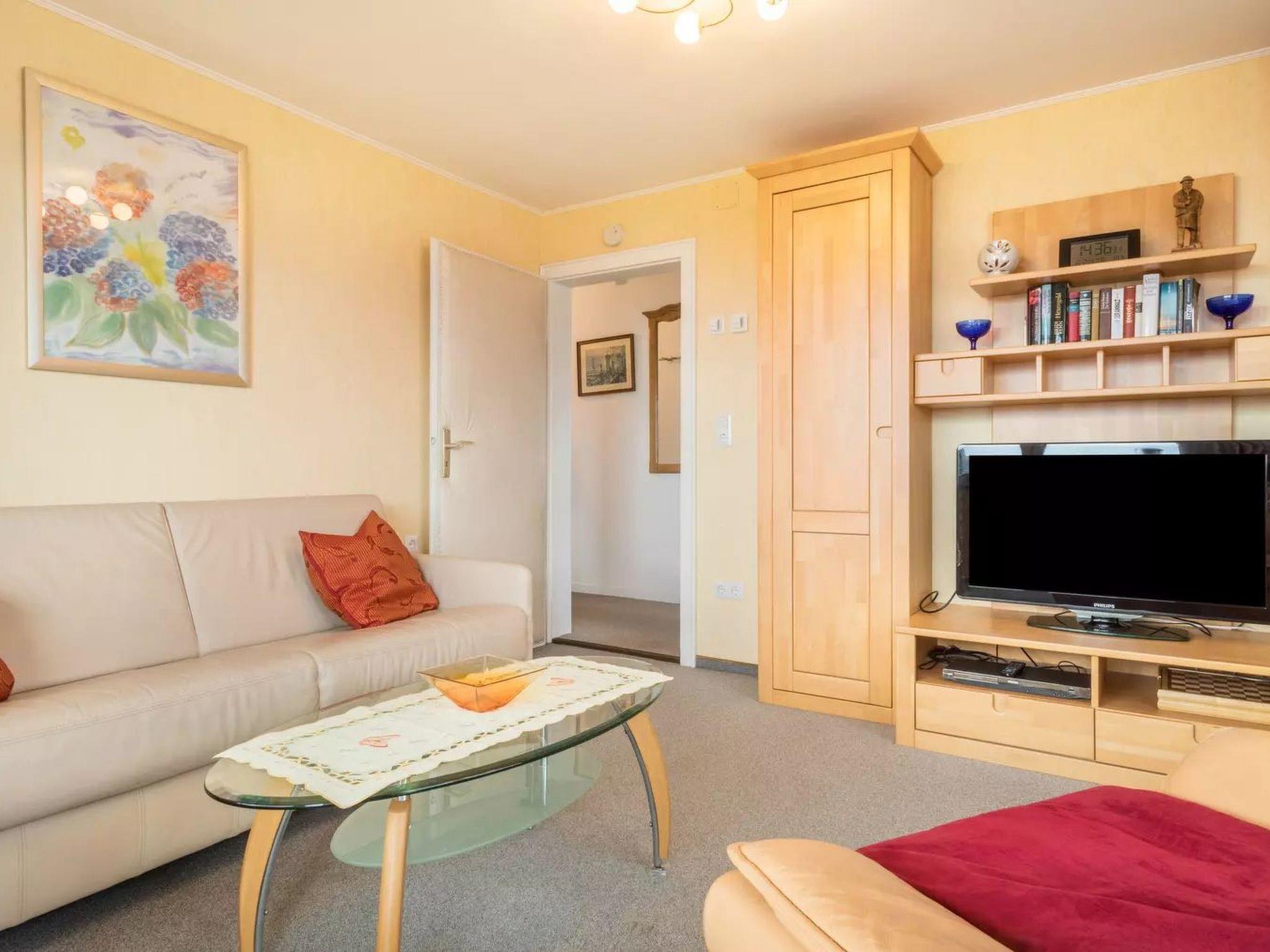 Inside, you will find a carefully and tastefully furnished holiday flat that leaves nothing to be desired in terms of comfort. You will find prepared beds with fresh bed linen, hand and bath towels. The fully equipped kitchen includes an electric cooker with ceramic hob and oven, a dishwasher, microwave, coffee machine and much more for a carefree stay. A cosy living room with cable TV and stereo system as well as balconies on the south-east and south-west sides invite you to linger and enjoy the view.