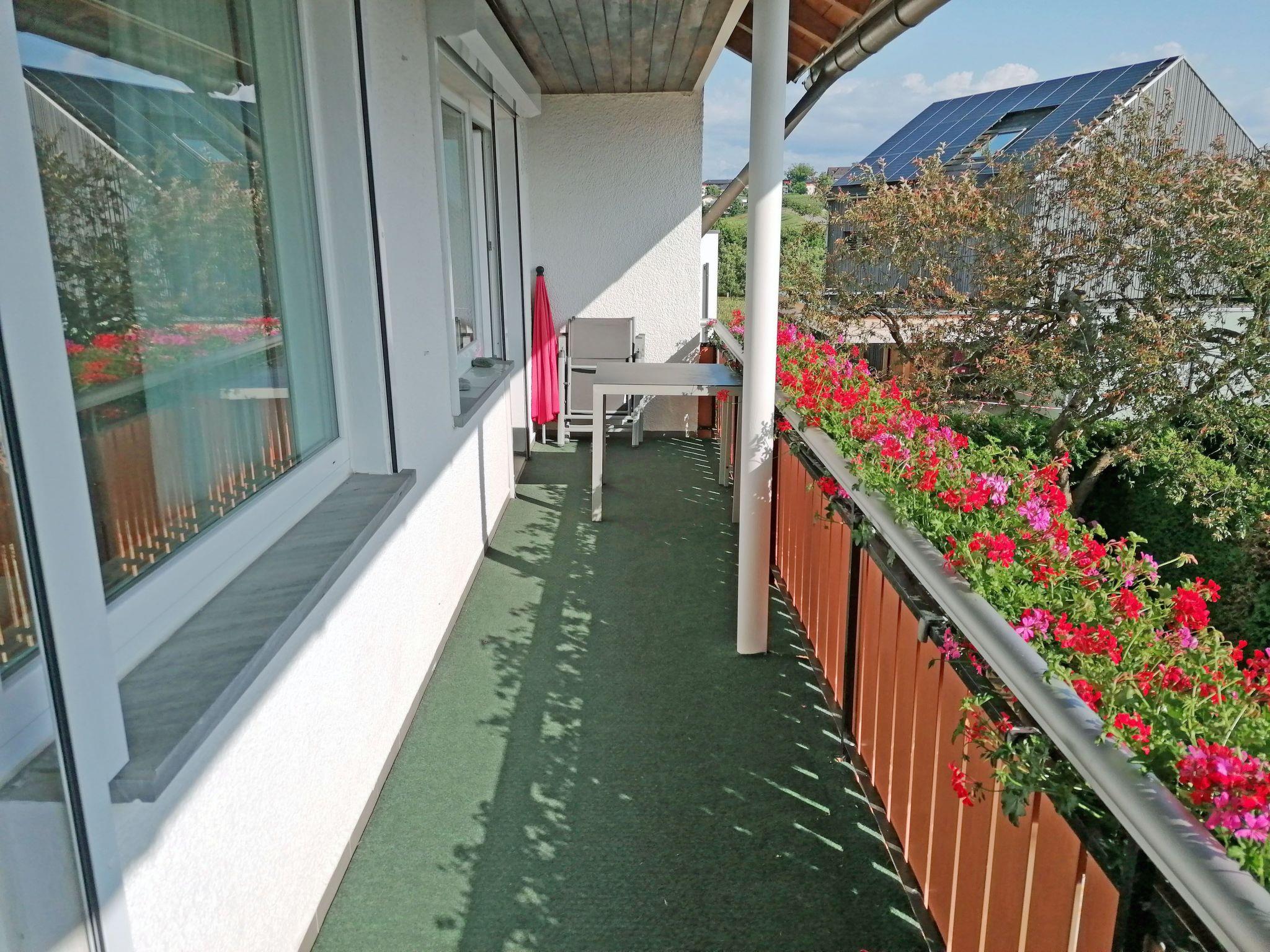 Outside, 20 square metre balconies with relaxing chairs and electric window blinds offer a fantastic view of Lake Constance and the mountains. Our garden with comfortable garden furniture and a variety of flowers promises peaceful hours outdoors. For your mobility, we offer a lockable garage as well as a private car park for your car and bicycles to make your stay as pleasant as possible.