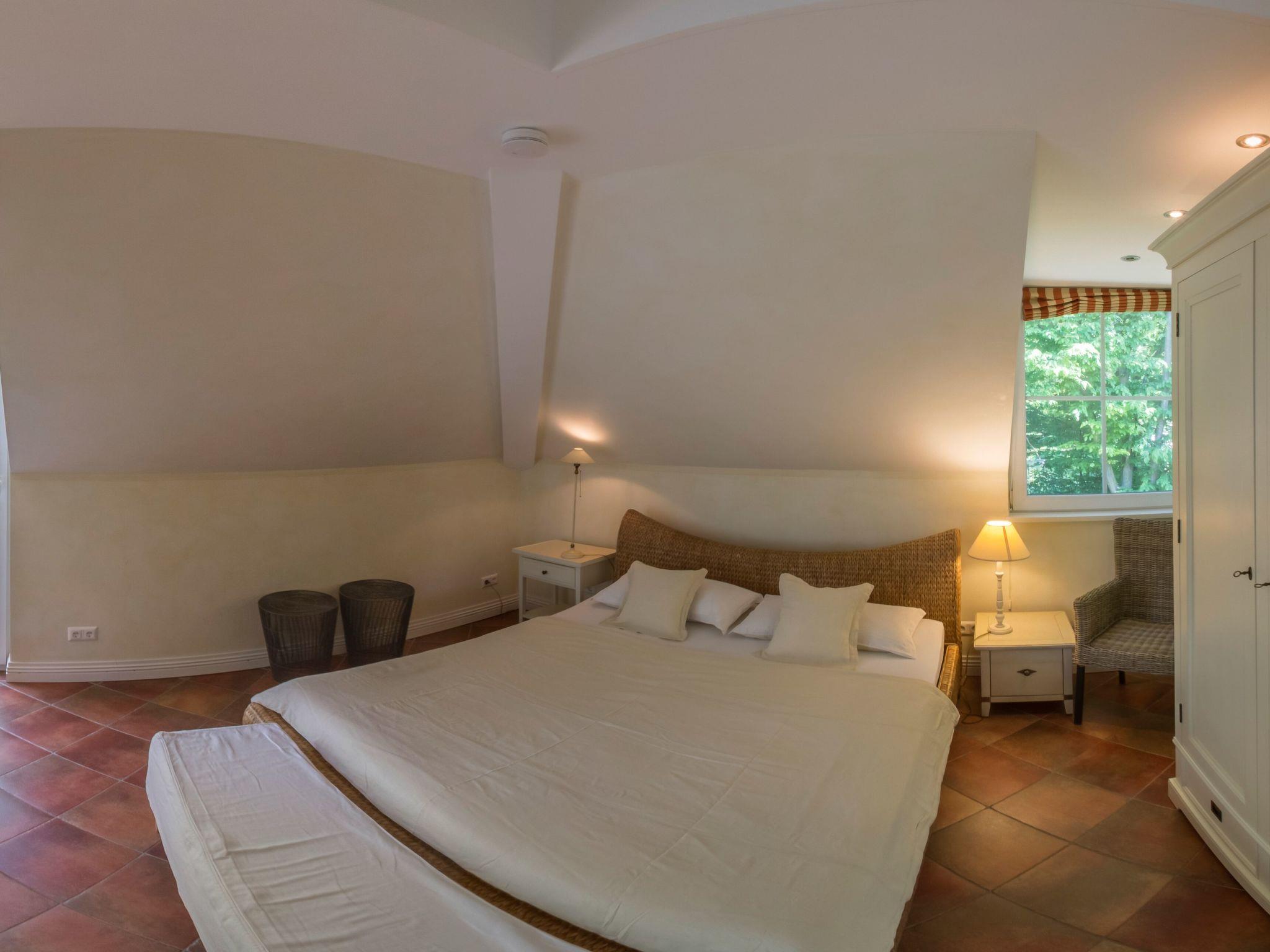 The villa benefits from a peaceful location right next to the park, with a Zen garden and Kneipp pool just a few metres away. Guests also have free bicycles at their disposal to explore the surrounding area. The proximity to the beach (approx. 250 m), the supermarket (approx. 400 m), restaurants and the boat landing stage (approx. 300 m) makes the Park Villa the ideal starting point for a wide range of activities.