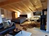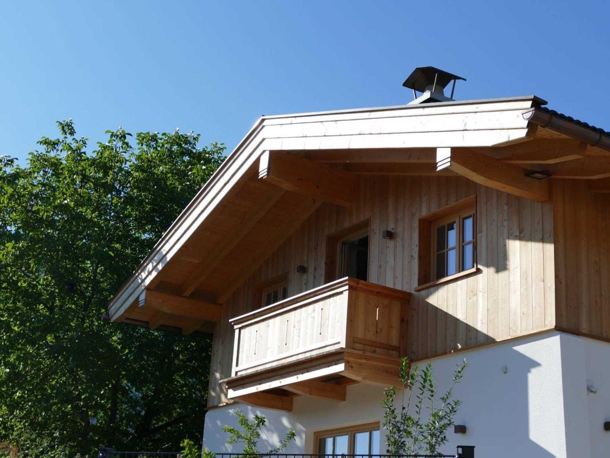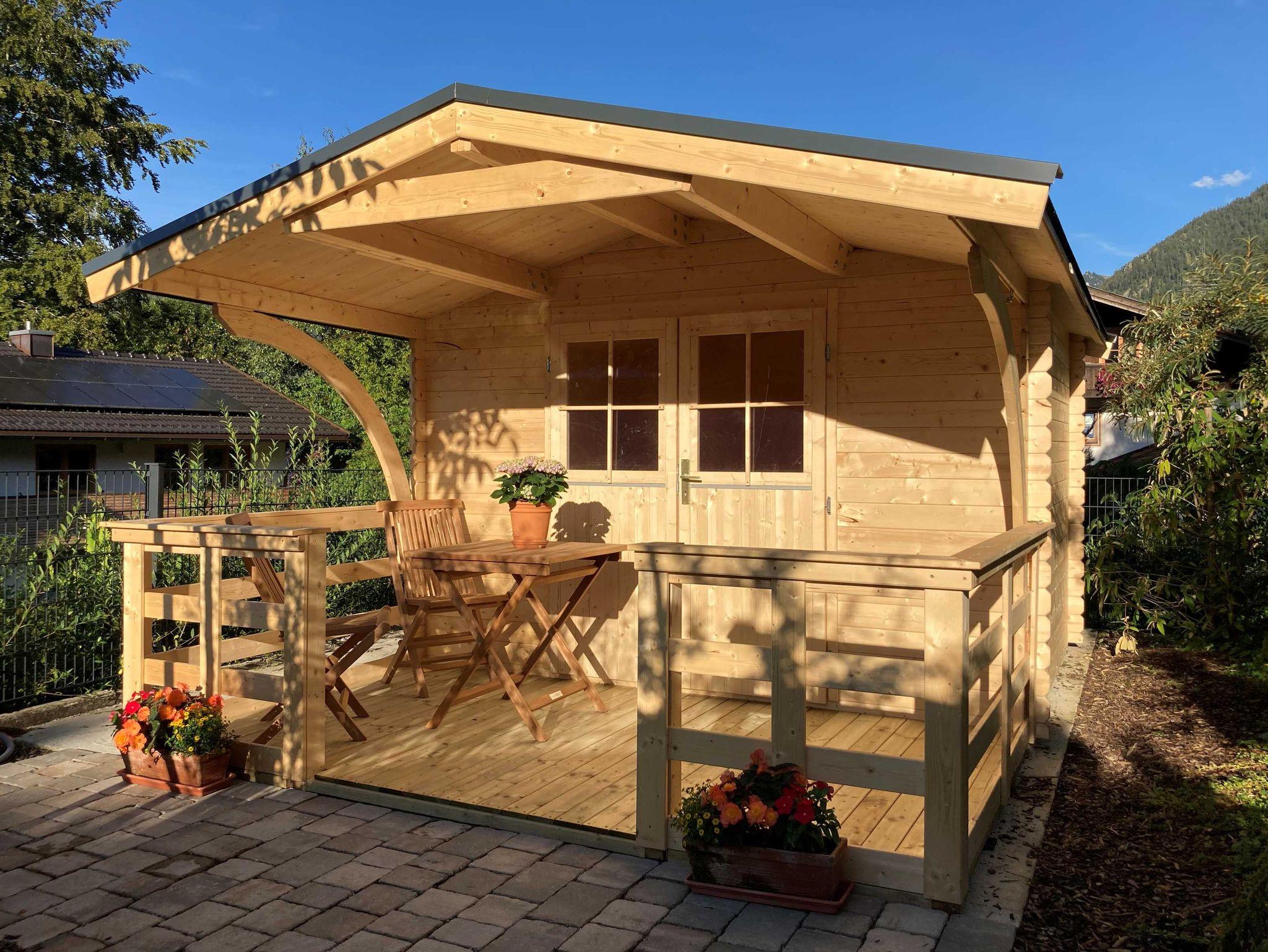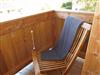 Behagliche, aber moderne Ferienwohnung mit Schwedenofen und Balkon und kleinem Sitzbereich vor dem Haus.
