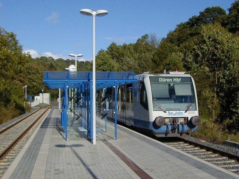 Die Rurtalbahn-Haltestelle, sowie Bushaltestelle befinden sich etwa 5-7 Minuten Fußweg entfernt.