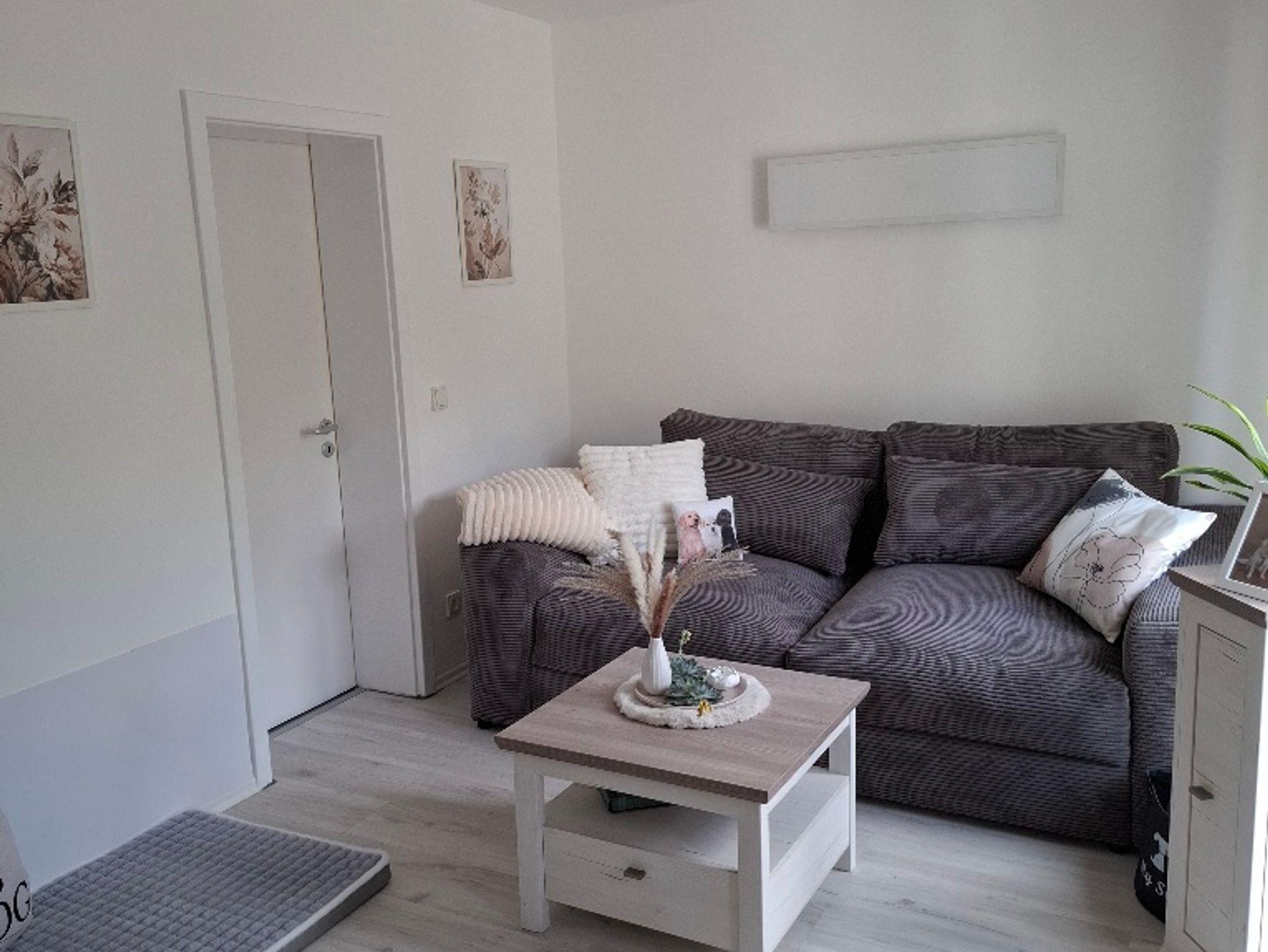 Dich/Euch erwartet eine 45 qm große Wohnung im Erdgeschoss mit großer Terrasse. 1 Wohnzimmer, 1 Schlafzimmer, Küche und ein Duschbad. Wir bieten für deinen/euren Aufenthalt Bettwäsche und Handtücher kostenlos an. Maximal 2 Hunde könnt/können ihr/Sie zusätzlich mitbringen. Auch die Vierbeiner wohnen kostenlos bei uns. Unsere Wohnung ist rauchfrei!