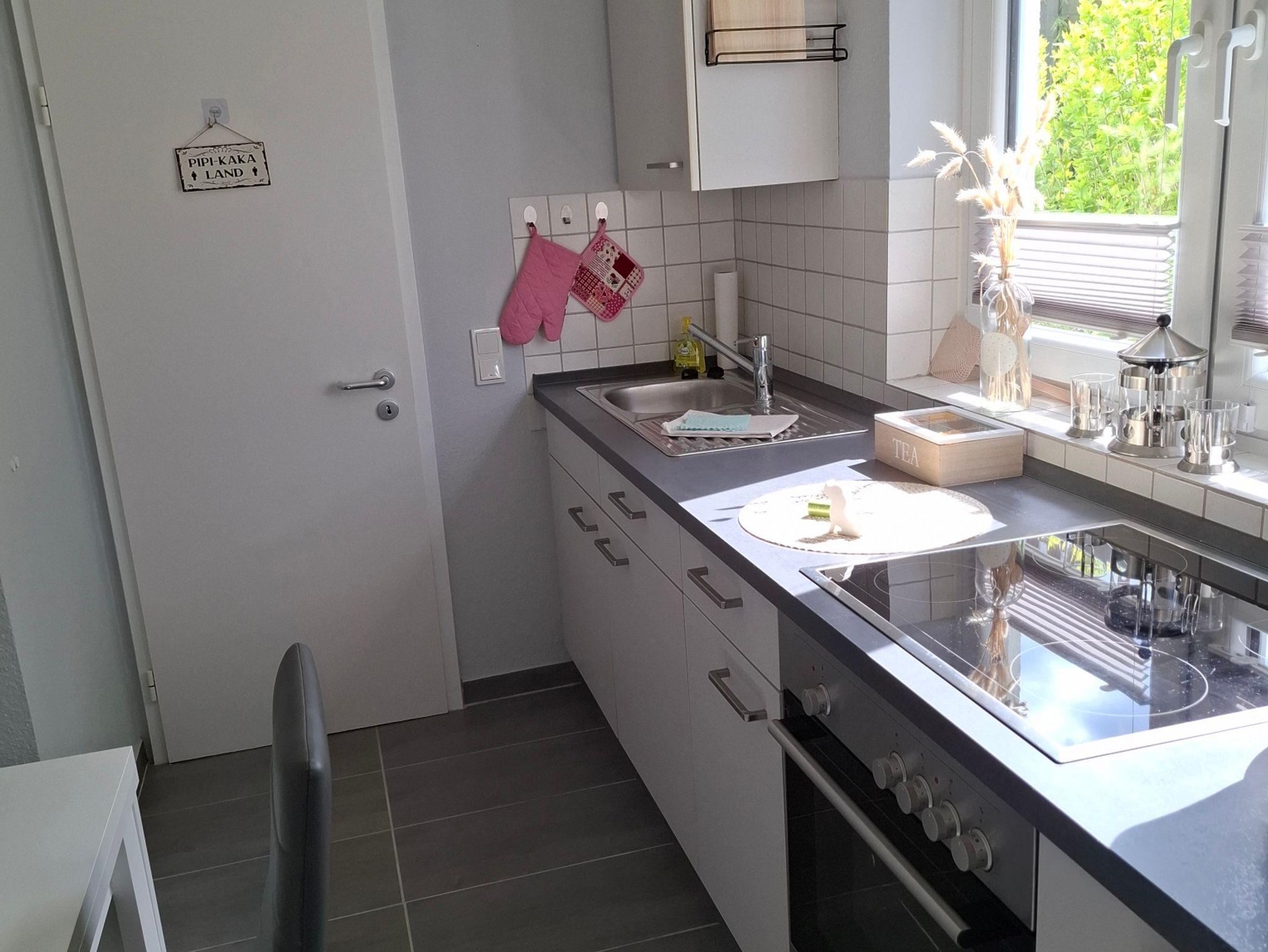 Die Küche ist mit allem was ihr zum Kochen benötigt ausgestattet, sowie ein Grundstock an Küchenbedarf (Salz, Pfeffer, Tee, Öl) sind vorhanden.