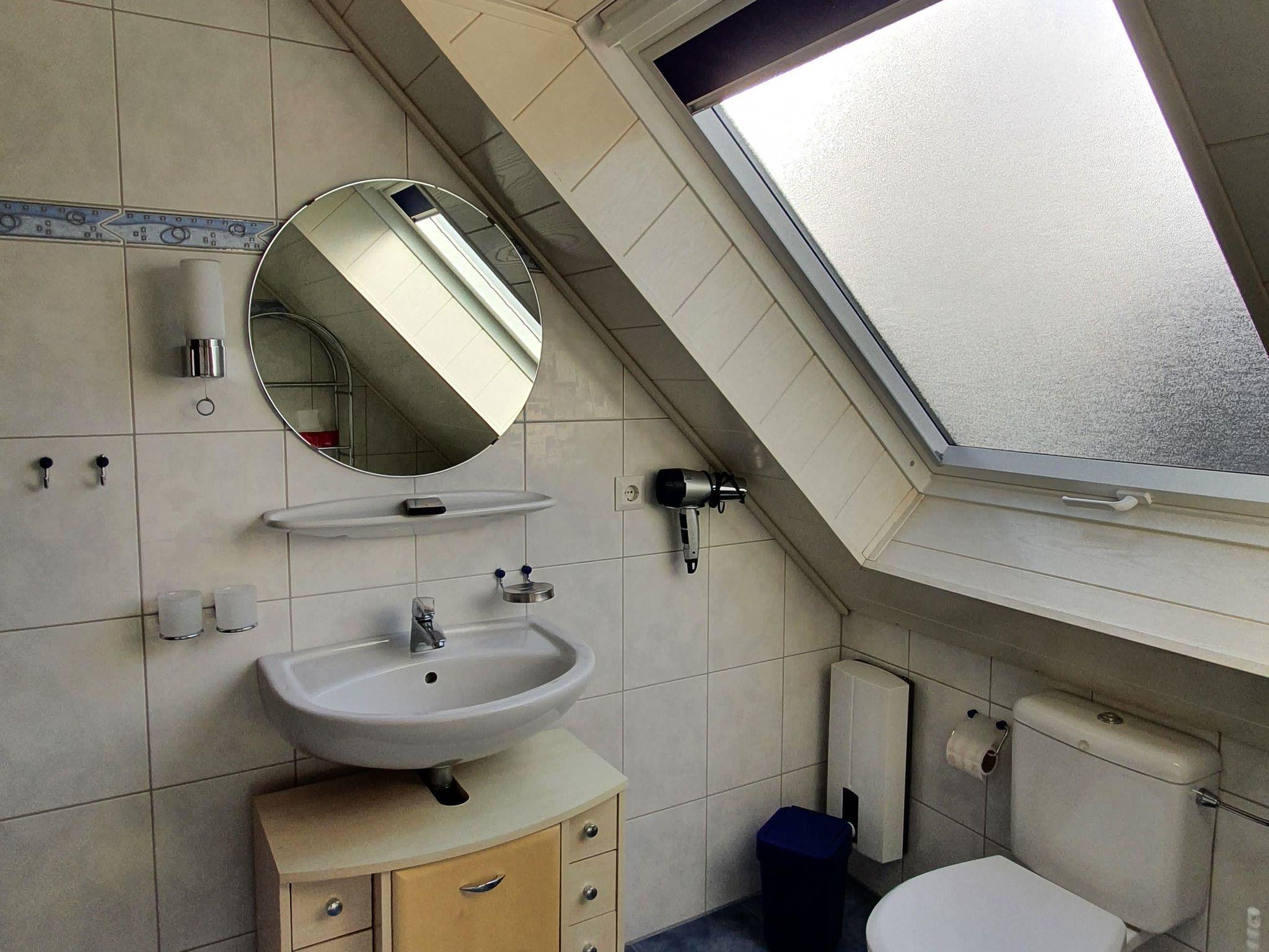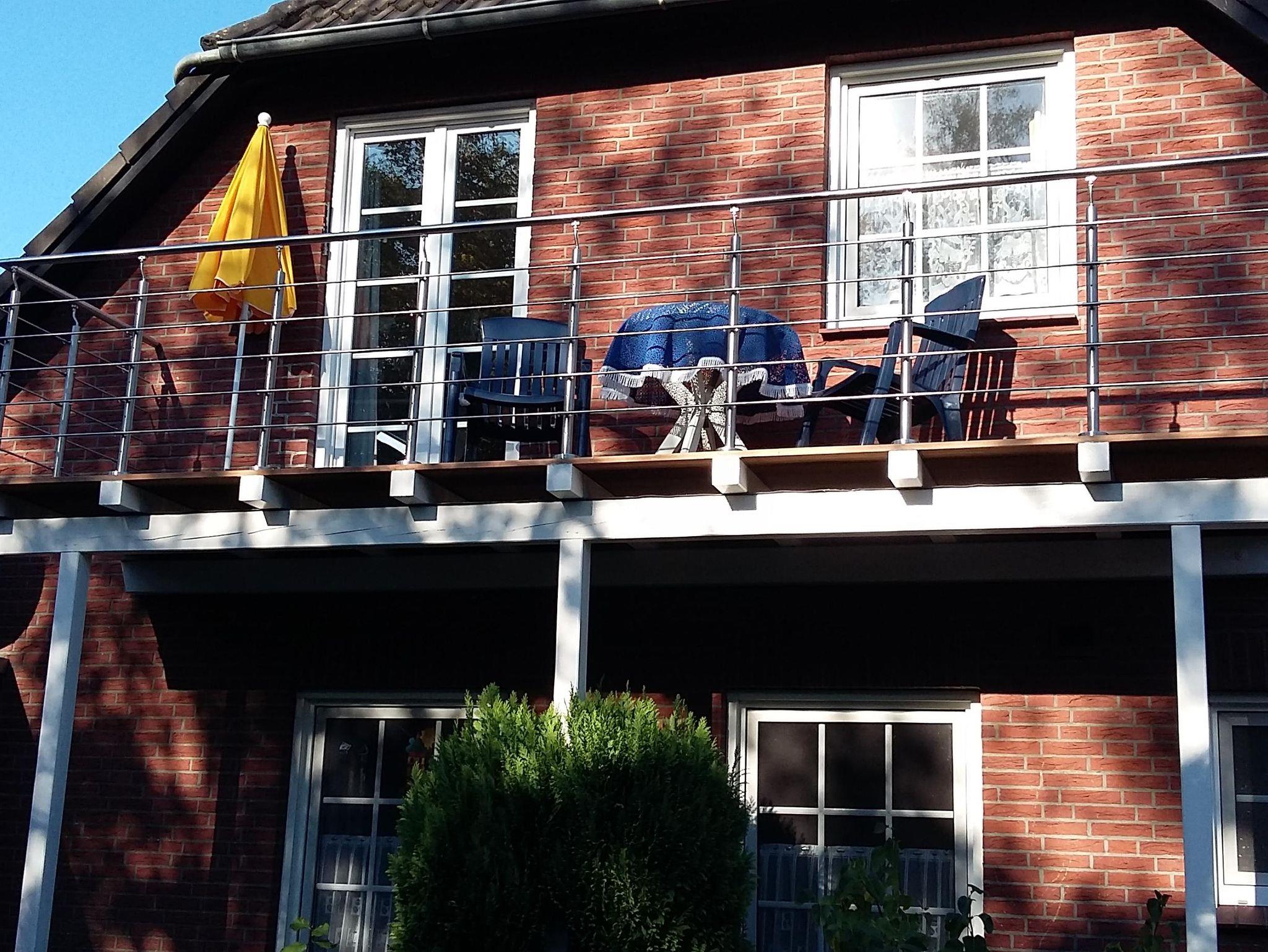 Die Wohnung im Obergeschoss (46 qm) verfügt über einen Balkon.