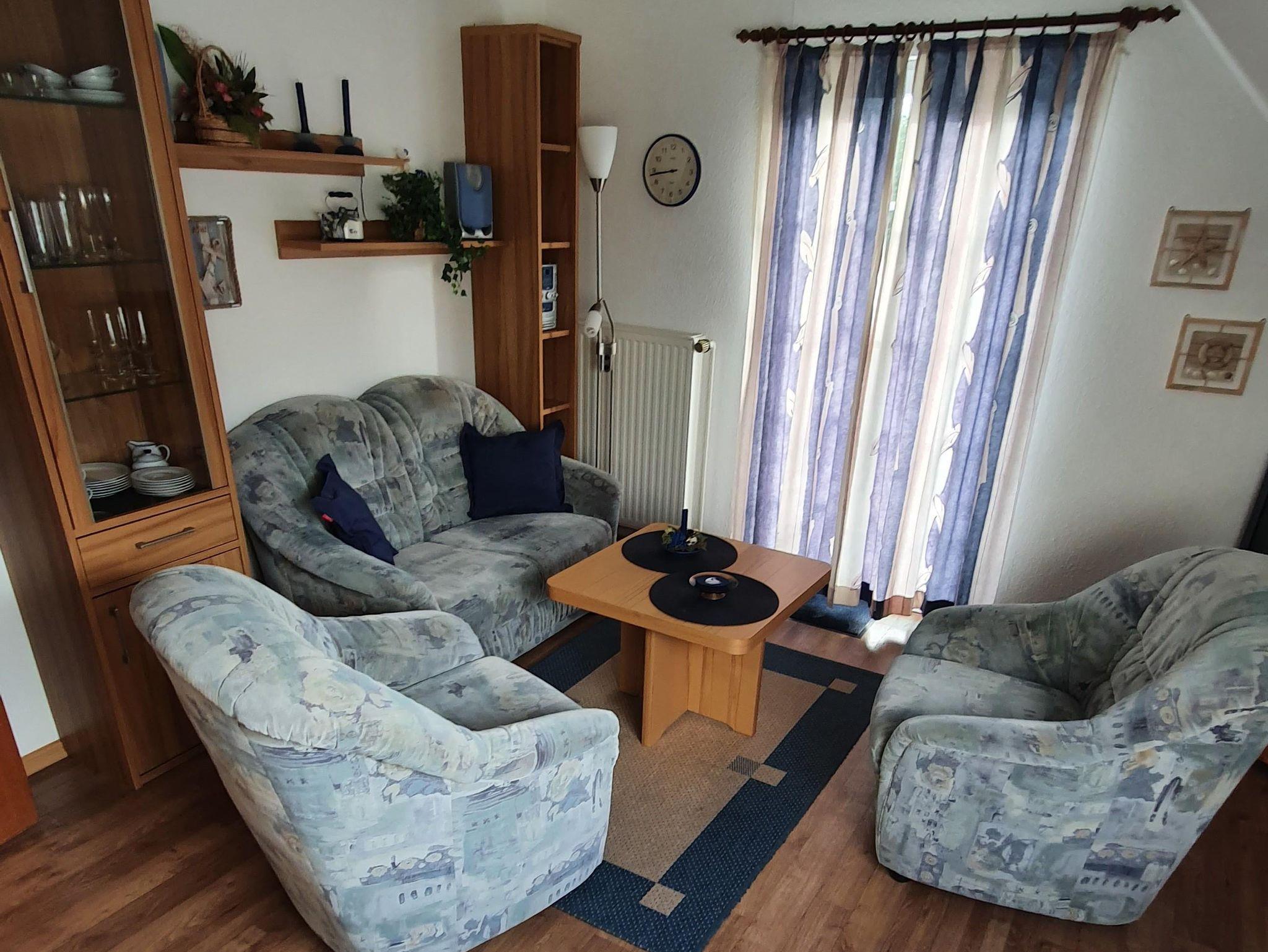 Sie verfügt über ein Wohnzimmer, ein Schlafzimmer mit Doppelbett, ein Schlafzimmer mit zwei Einzelbetten, ein Duschbad mit WC, eine komplett eingerichtete Einbauküche (Geschirrspülmaschine, 4-Plattenherd, Backofen, Mikrowelle, Kühlschrank, Kaffeemaschine, Wasserkocher, Eierkocher, Toaster, Handmixer, u. a.) mit Essplatz, Satellitenfernsehen, Radio mit CD-Spieler, Waschmaschine, Abstellraum, WLAN.