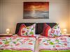 Geräumiges Ferienhaus in ruhiger Wohnlage für bis zu 8 Personen, 4 Schlafzimmer (zwei davon im Erdgeschoss mit Ehebett, zwei andere im Obergeschoss mit je zwei Einzelbetten), 2 Wohnzimmer, 1 Küchen, 2 x Du/WC, 1x Gäste WC, Sat-TV, 110 qm Wohnfläche, Garten, Terrasse, Parkplatz am Haus. Haustiere auf Anfrage - es wird eine extra Gebühr für Haustiere erhoben.