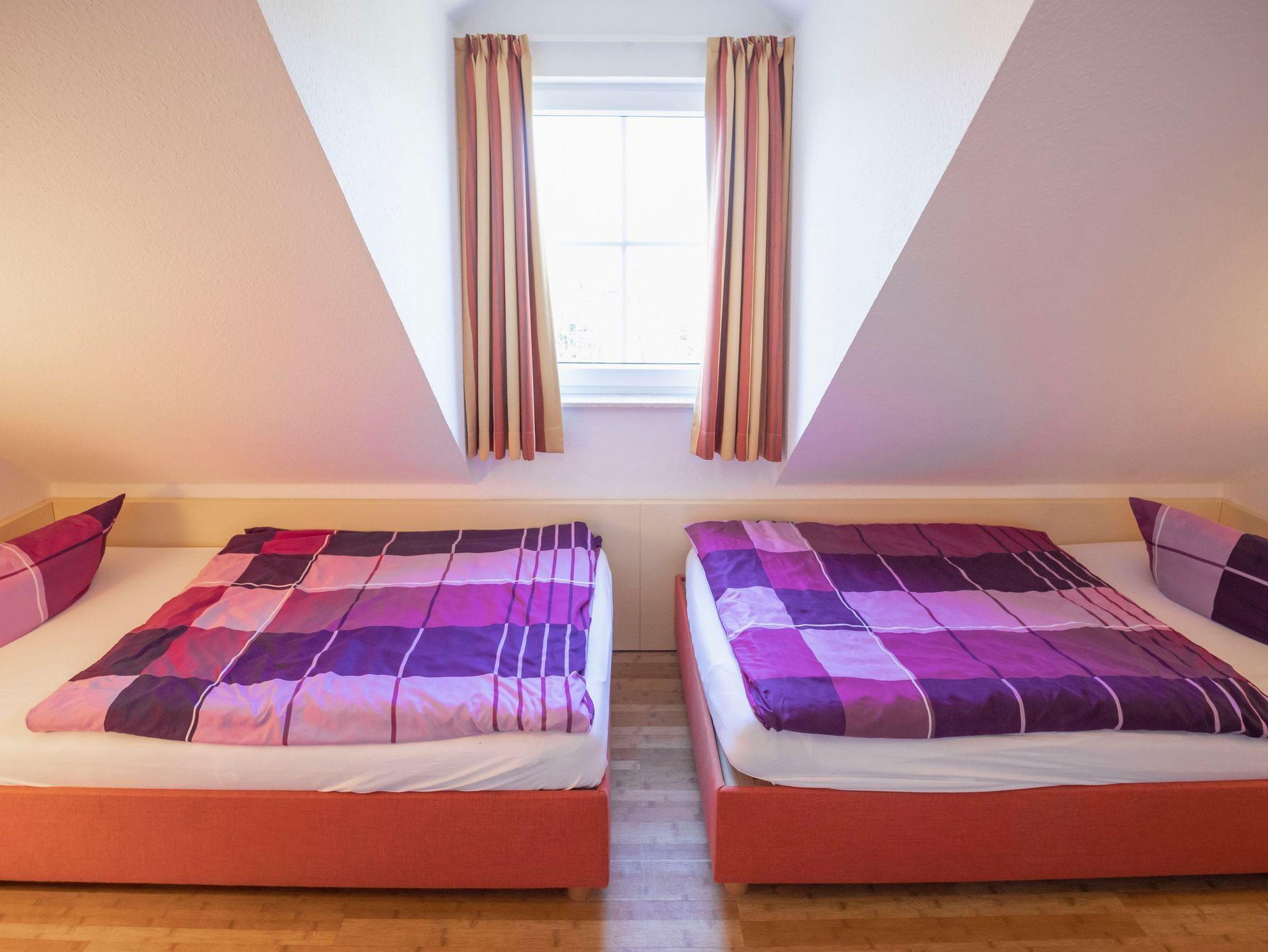 Drei gemütliche Schlafzimmer sorgen für erholsamen Schlaf: ein Schlafzimmer mit komfortablem Doppelbett, eines mit zwei getrennten Betten sowie ein weiteres Schlafzimmer mit zwei getrennten Betten im ausgebauten Dachgeschoss ? ein besonderes Highlight für kleine und große Gäste.