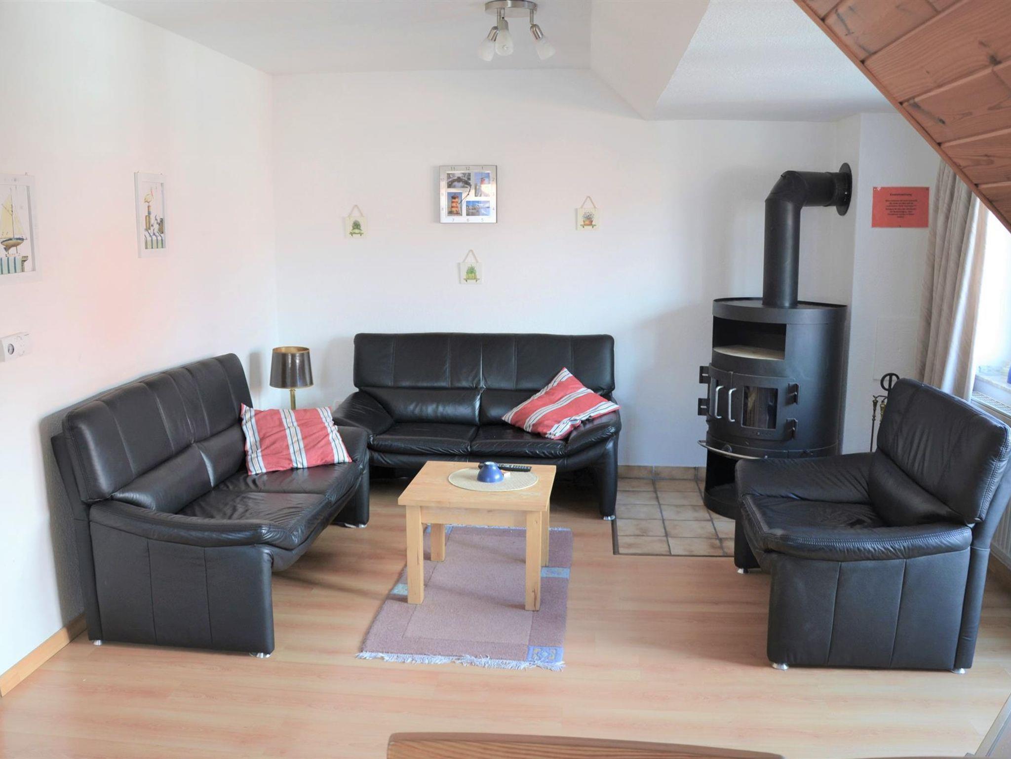 Wohnraum mit integrierter Küchenzeile und Essecke, 2 Schlafzimmer, Du / WC, Balkon und Garten, Sat-TV, Stereoanlage, Kaminofen(nur noch als Notfallheizung nutzbar), Bettwäsche auf Anfrage.