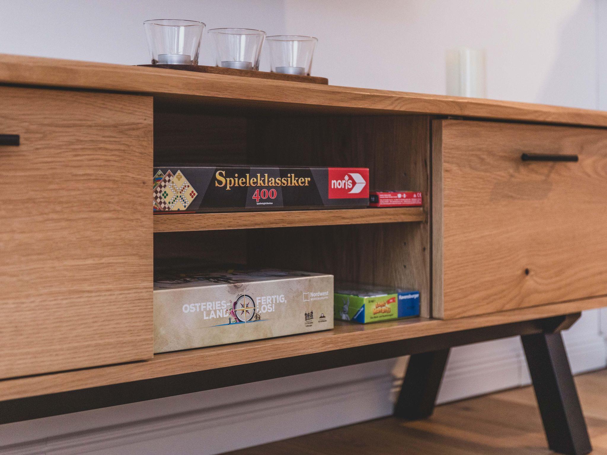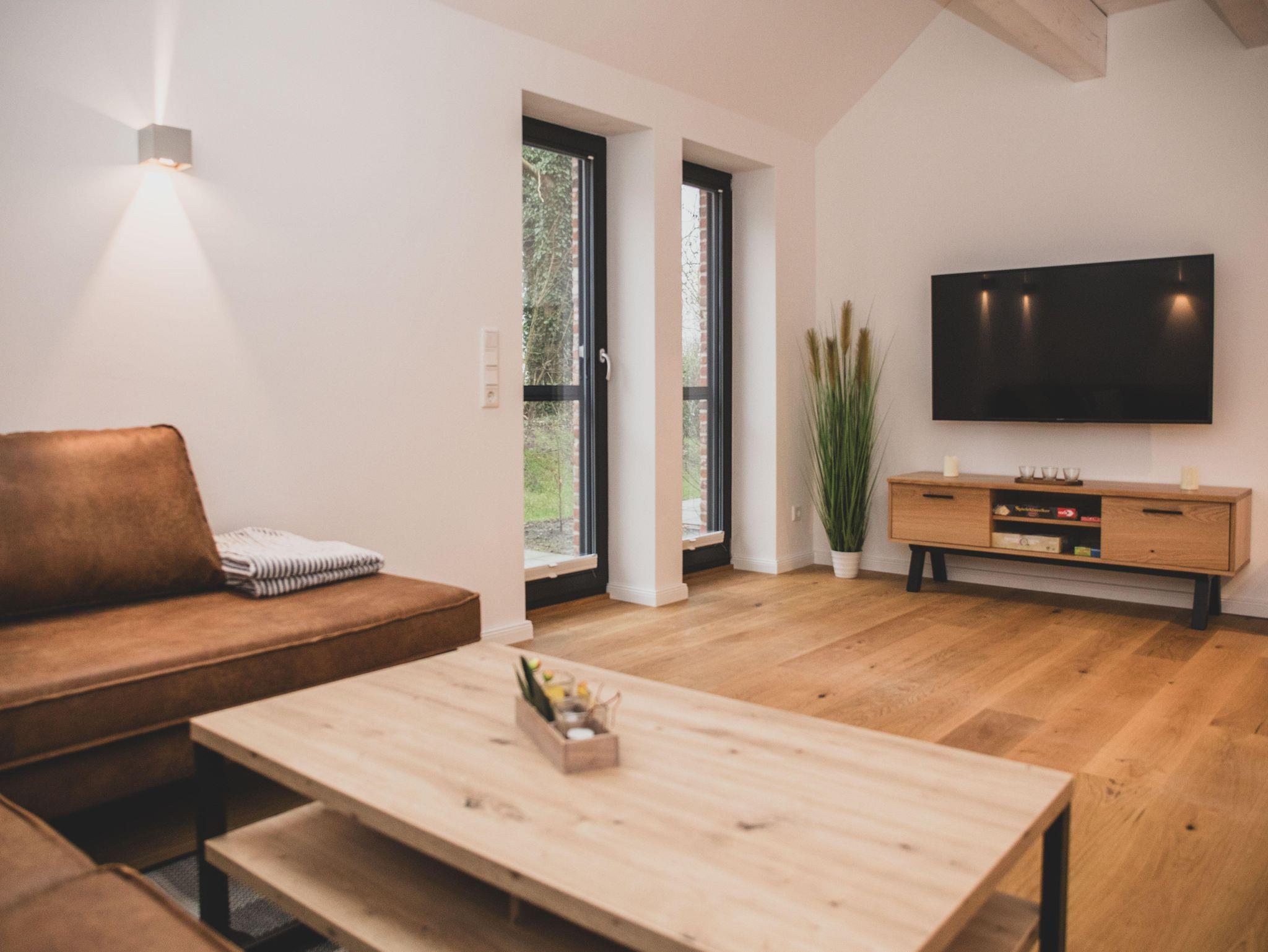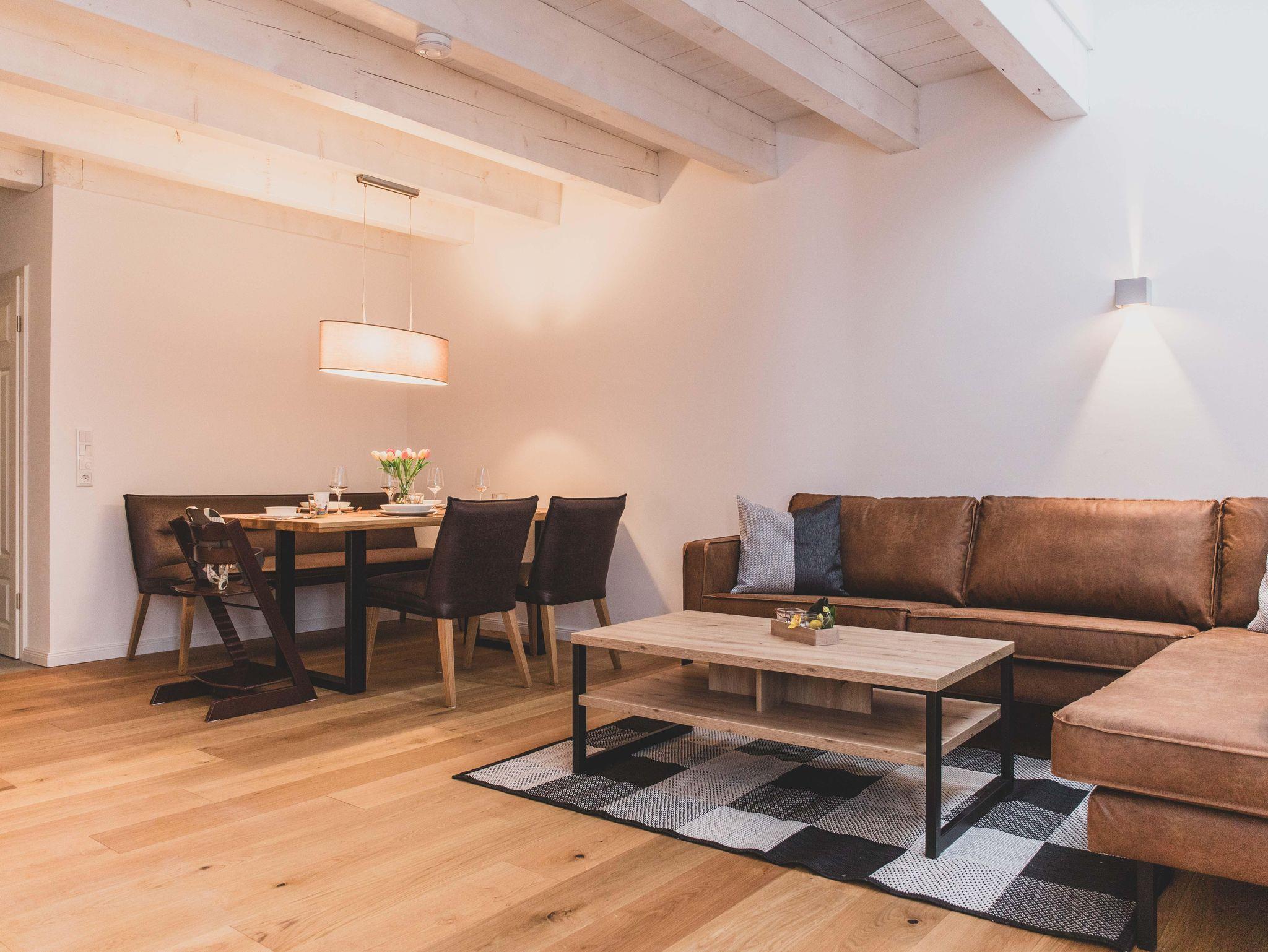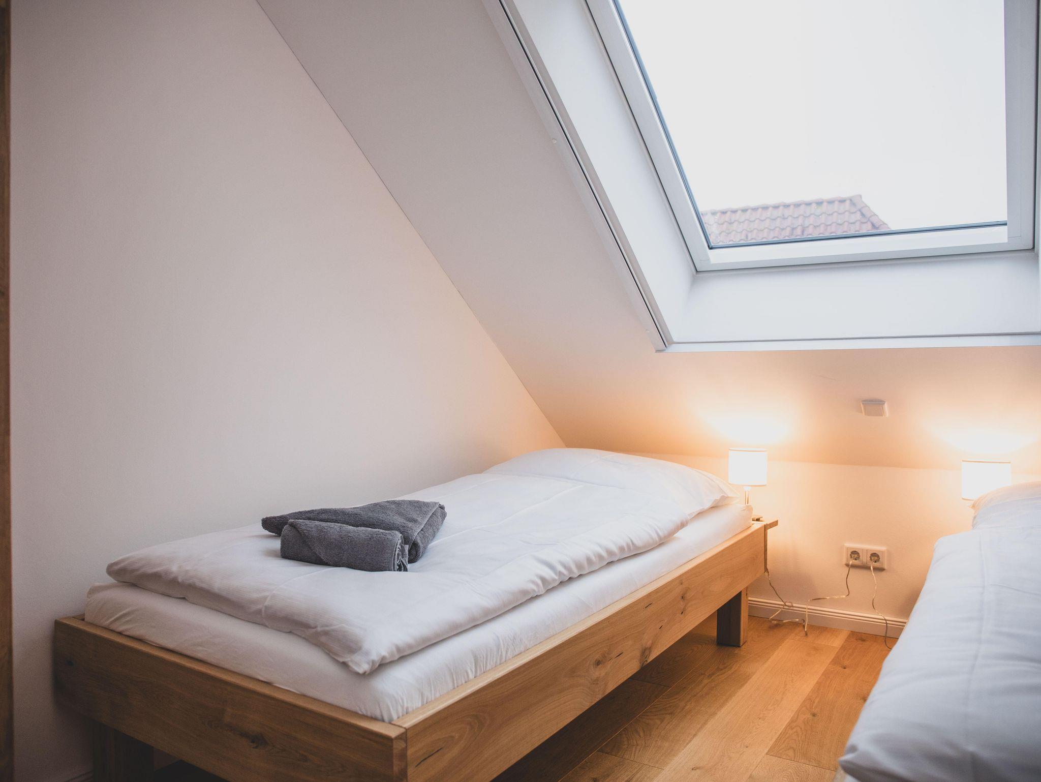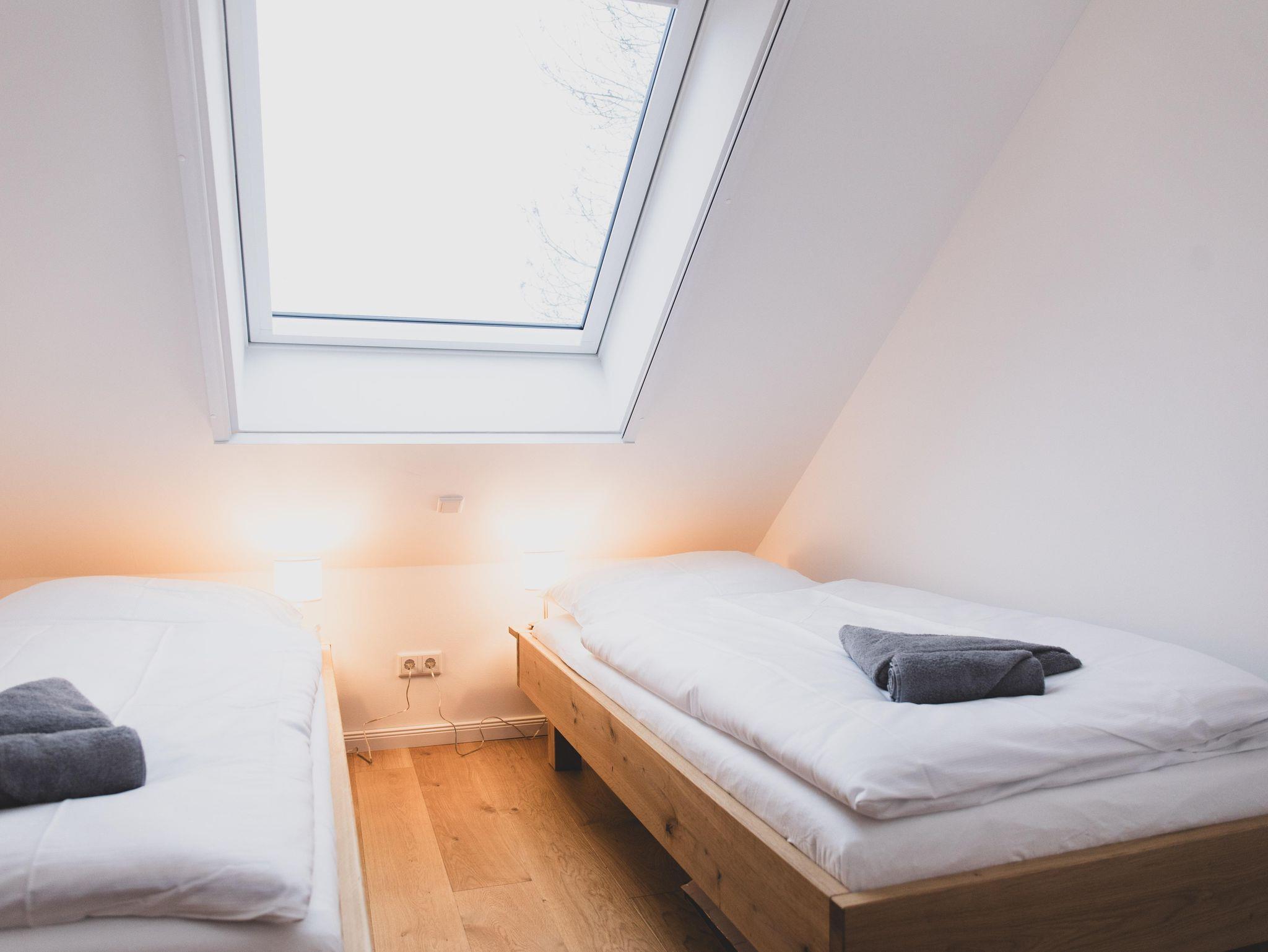 Die Ferienwohnung ist liebevoll gestaltet und überzeugt im Erdgeschoss mit einem offenen Wohnkonzept, welches das Wohnzimmer und die Küche miteinander verbindet. Kochen Sie Ihre Lieblingsgerichte in der voll ausgestatteten Küche – mit Geschirrspüler, Induktionsherd, Kühlschrank und zahlreichen Küchengeräten wie einer Nespresso-Maschine, einem Mixer und einer Mikrowelle. Für jüngere Gäste gibt es einen Stokke Tripp-Trapp Hochstuhl mit Baby-Set und Gurt, sowie Kindergeschirr- und besteck. Der stilvolle Esstisch lädt zu geselligen Essen mit Freunden oder der Familie ein und die Sofaecke bietet einen tollen Platz für entspannte Abende beim Fernsehen oder Spielen. Im Obergeschoss befindet sich das voll ausgestattete Bad mit WC und bodengleicher Dusche sowie zwei Schlafzimmer, beide mit Verdunkelungsmöglichkeit und Fliegengitter, zusätzlich sind Nachtlichter und ein Türgitter vorhanden.