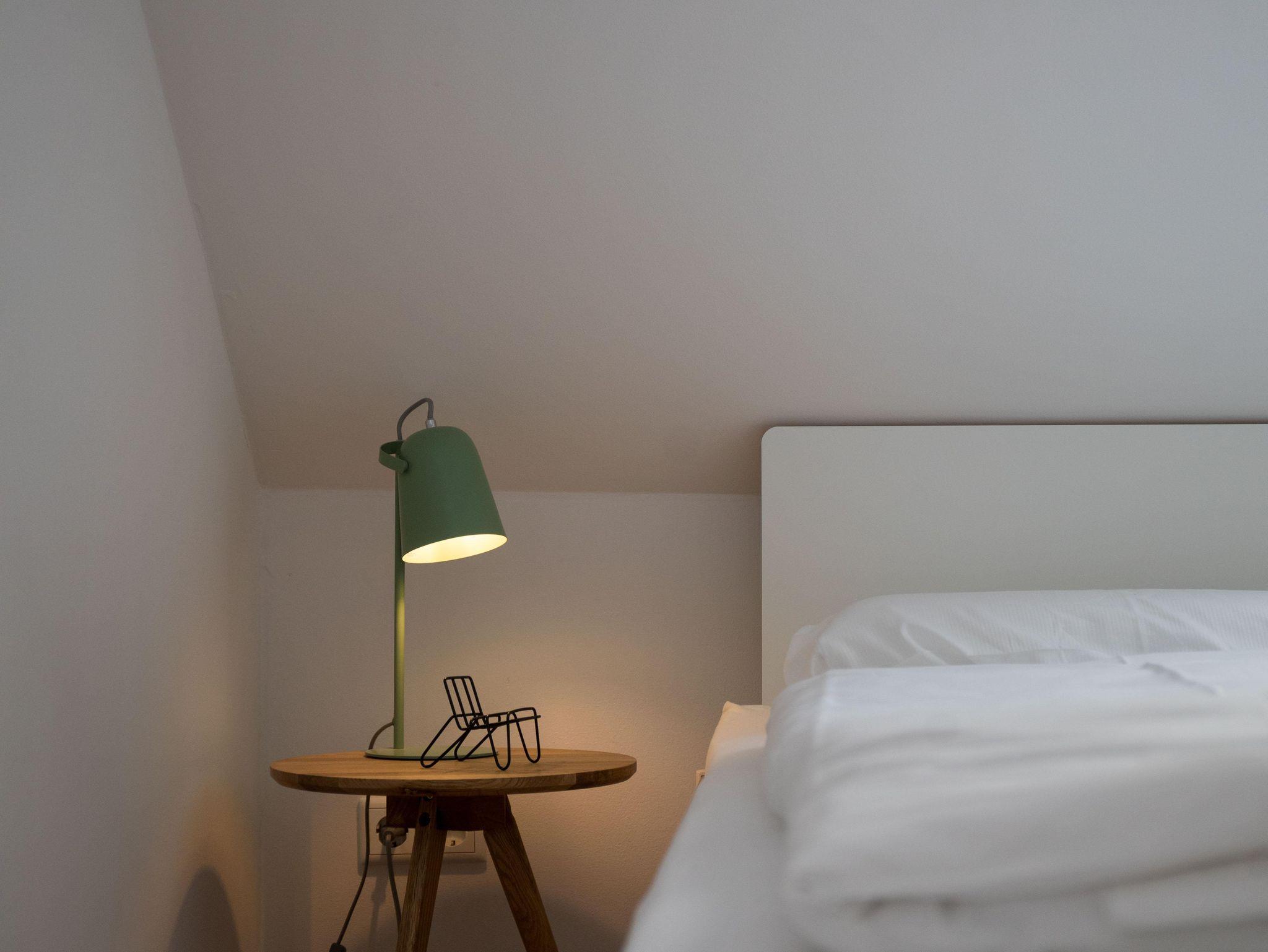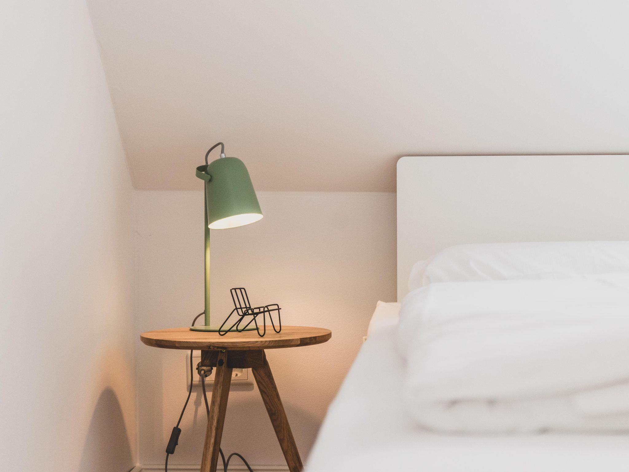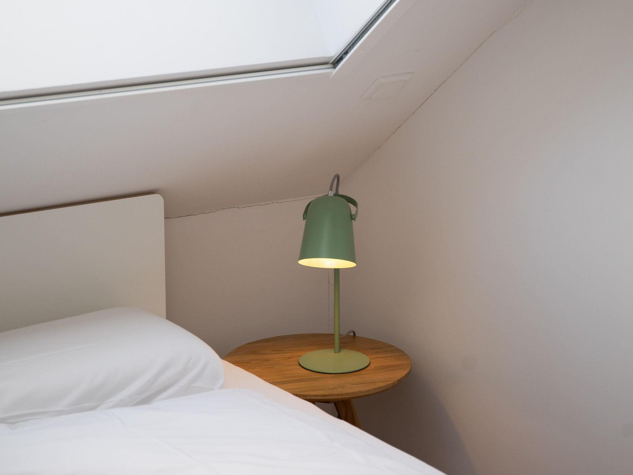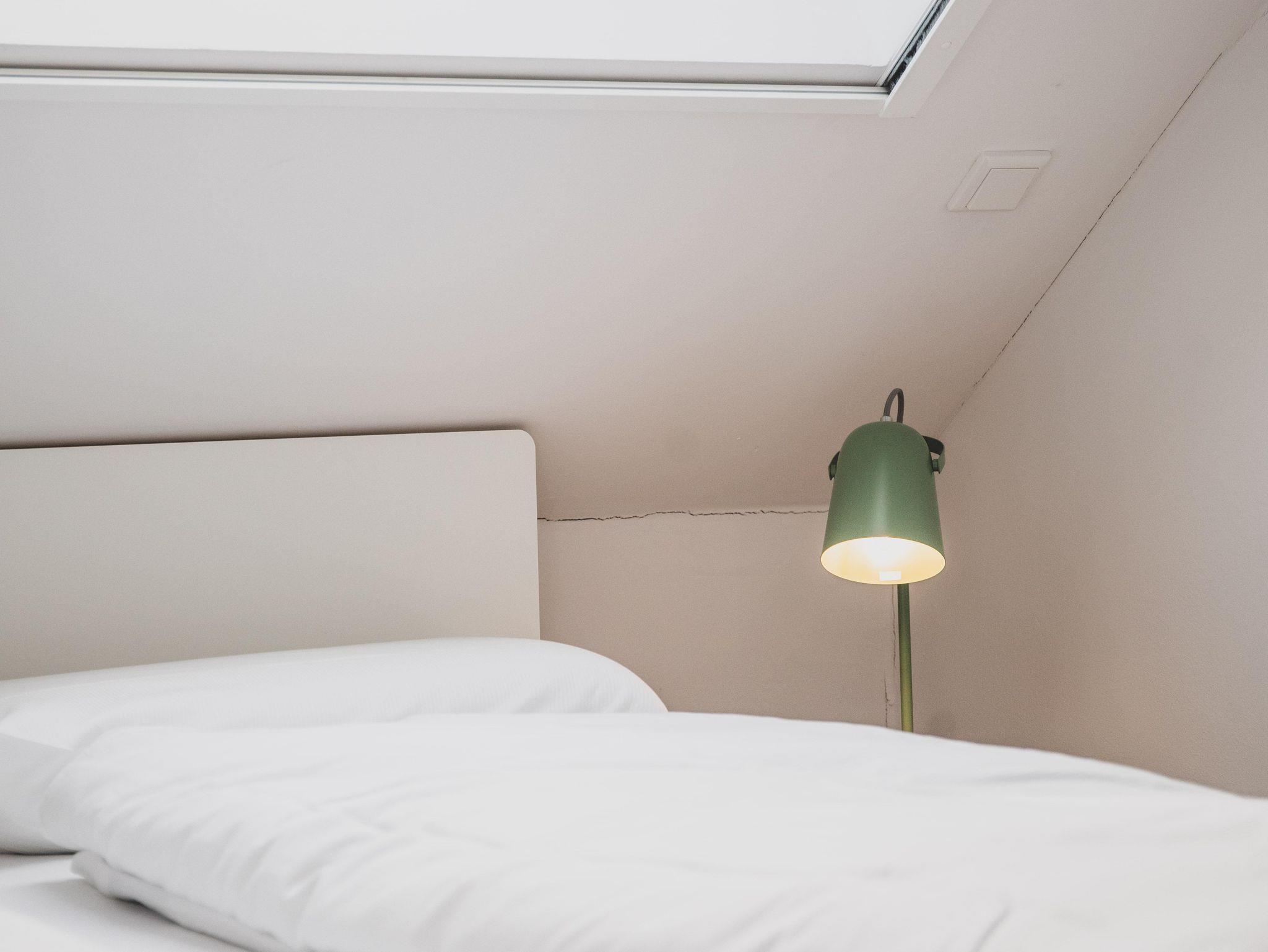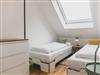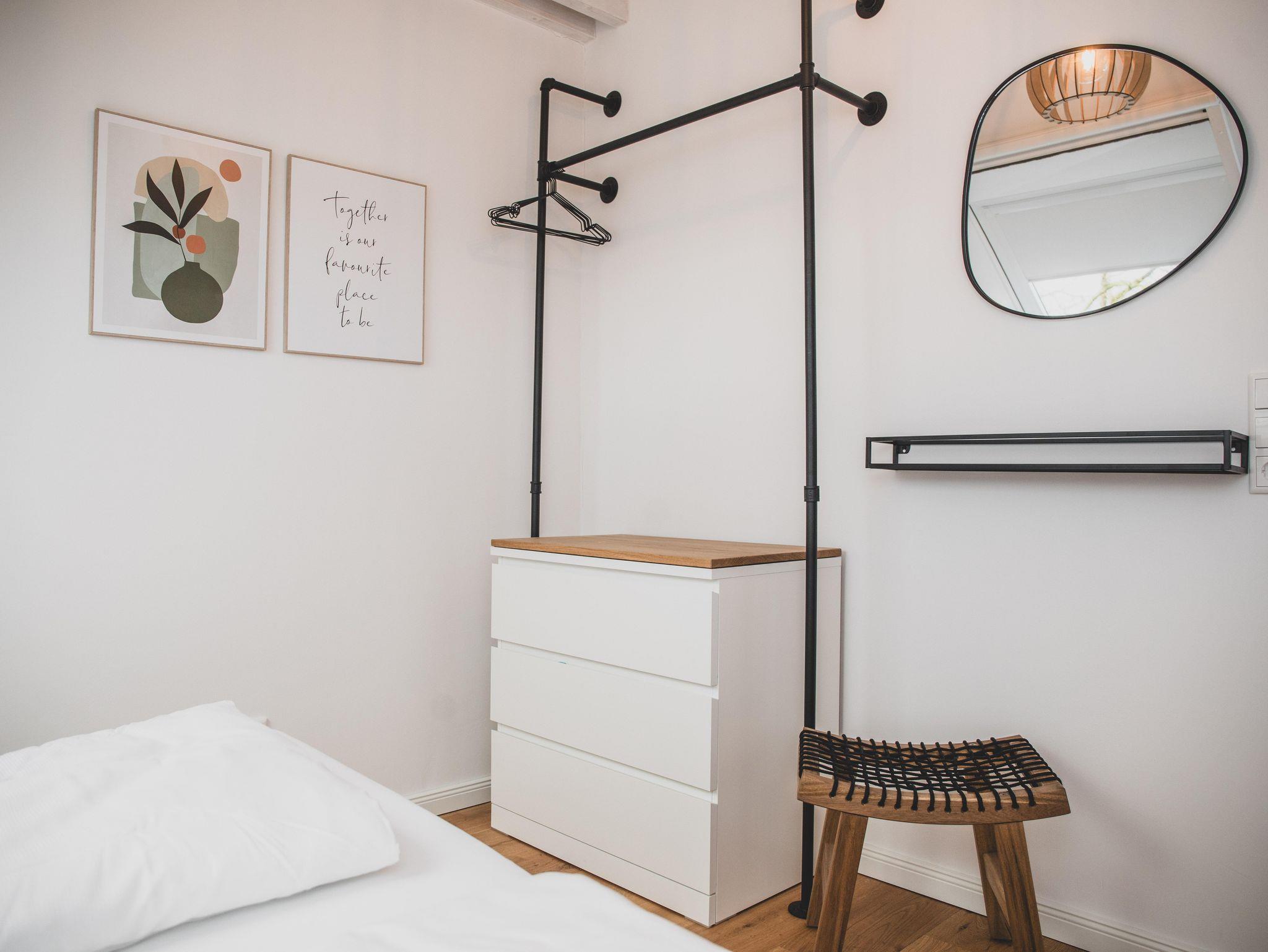 Im Obergeschoß verfügt die Wohnung über zwei gemütliche Schlafzimmer – einmal mit Doppelbett und einmal mit zwei separaten Betten. Je nach Bedarf können diese aber nebeneinandergestellt werden. Beide Schlafzimmer bieten selbstverständlich genug Platz für die Garderobe. Unter den gemütlichen Schrägen kann man entspannt träumen und Kraft für den nächsten Tag tanken. Damit man dabei nicht gestört wird, verfügen die Dachfenster über einen Insektenschutz und Verdunklungsmöglichkeiten.