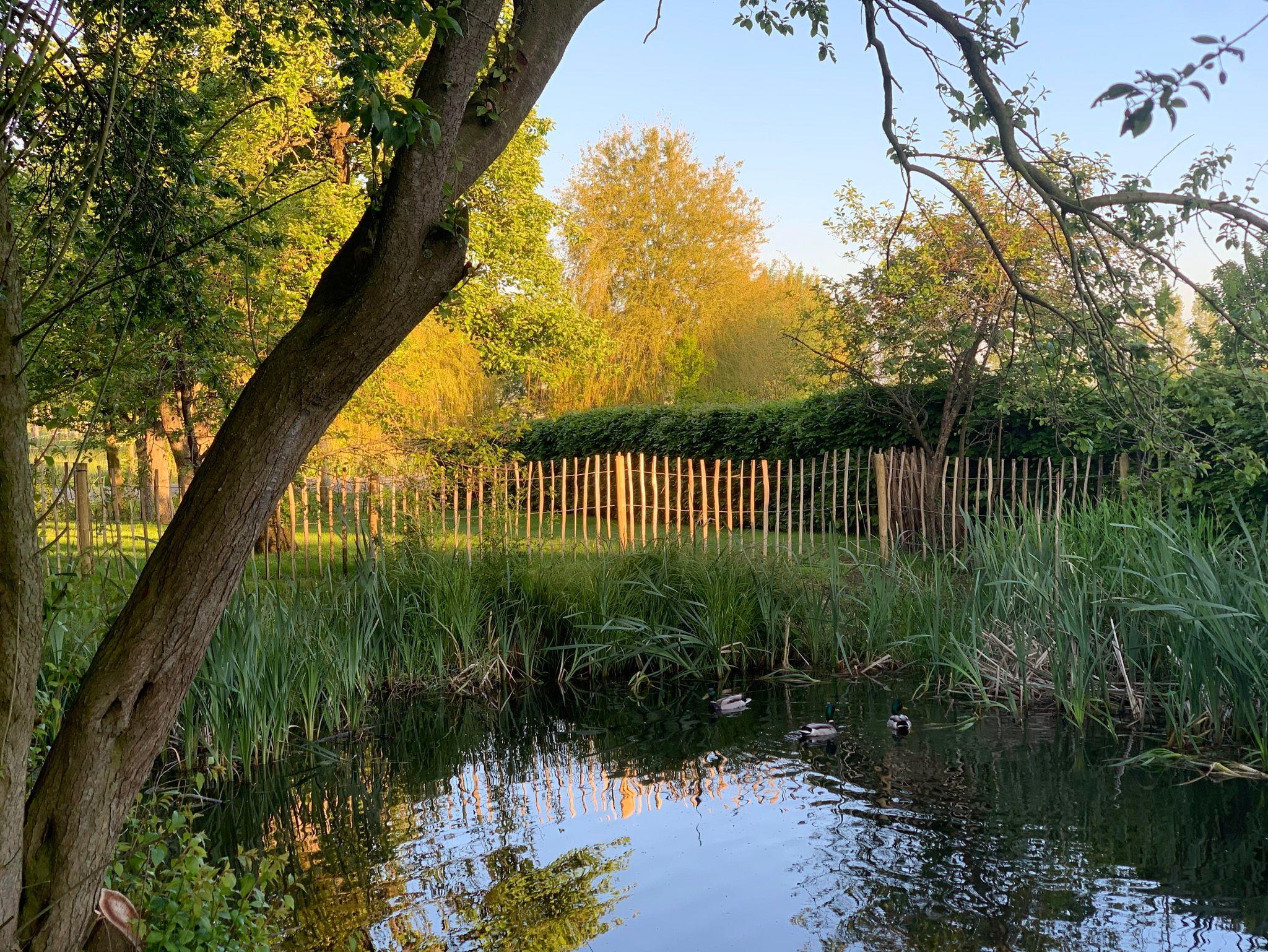 Die Terrasse mit Deichblick, ausgestattet mit Kettler-Gartenmöbeln für 6 Personen, Sonnenschirm und Weber Kugelgrill, ist nach Südwesten ausgerichtet und ermöglicht ganztägiges Sonnenbaden. An die Terrasse grenzt der alte Obstgarten und ein schöner Teich, der natürlich eingezäunt ist.