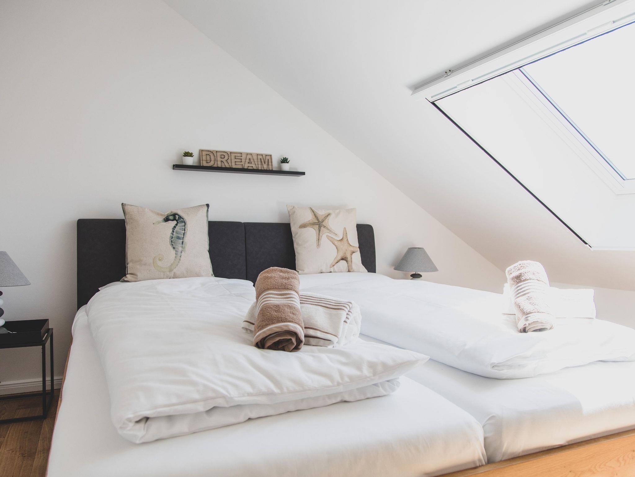 Sie ist ca. 84 qm groß und bietet mit drei Schlafzimmern Platz für 5-6 Personen.