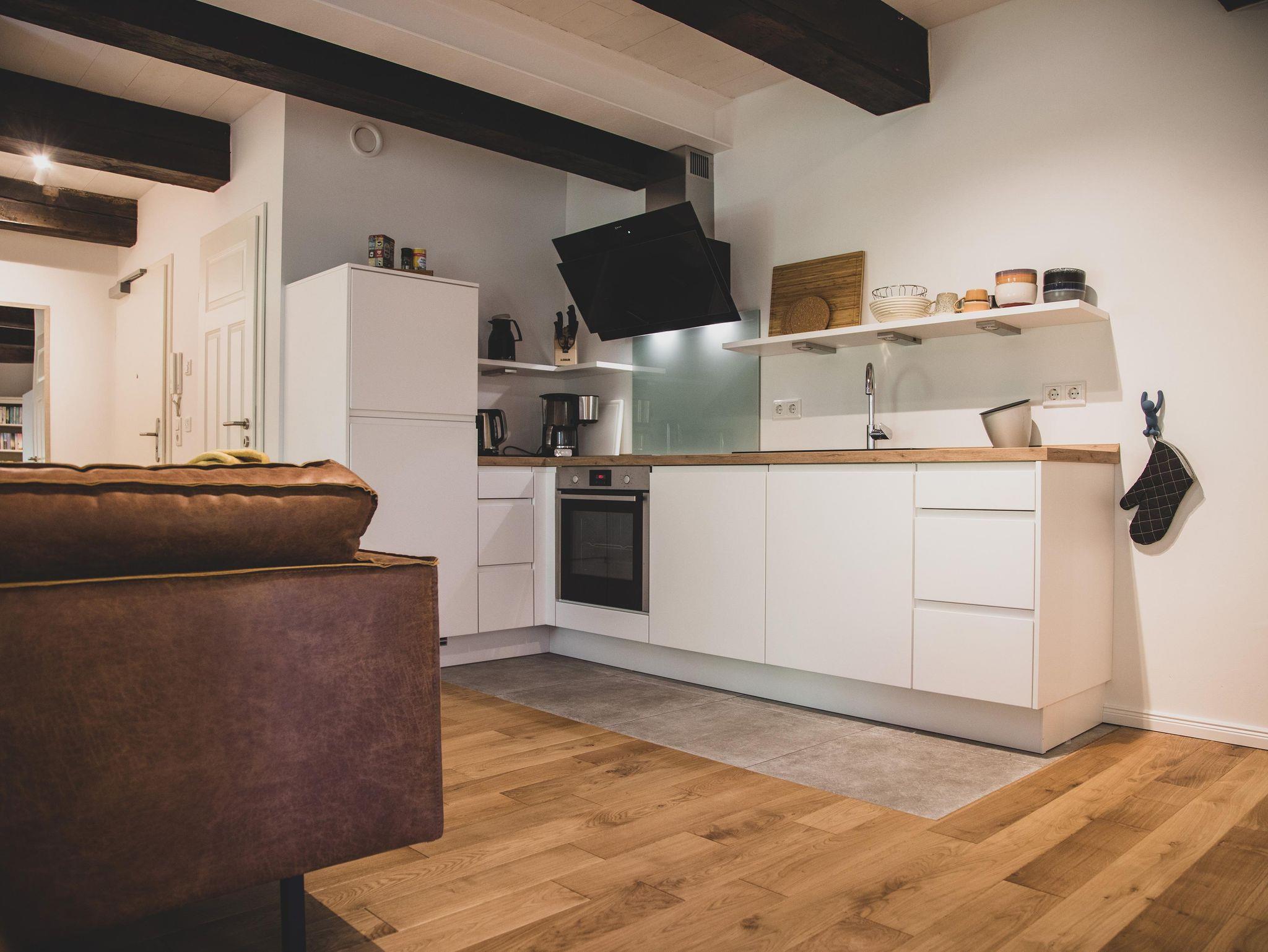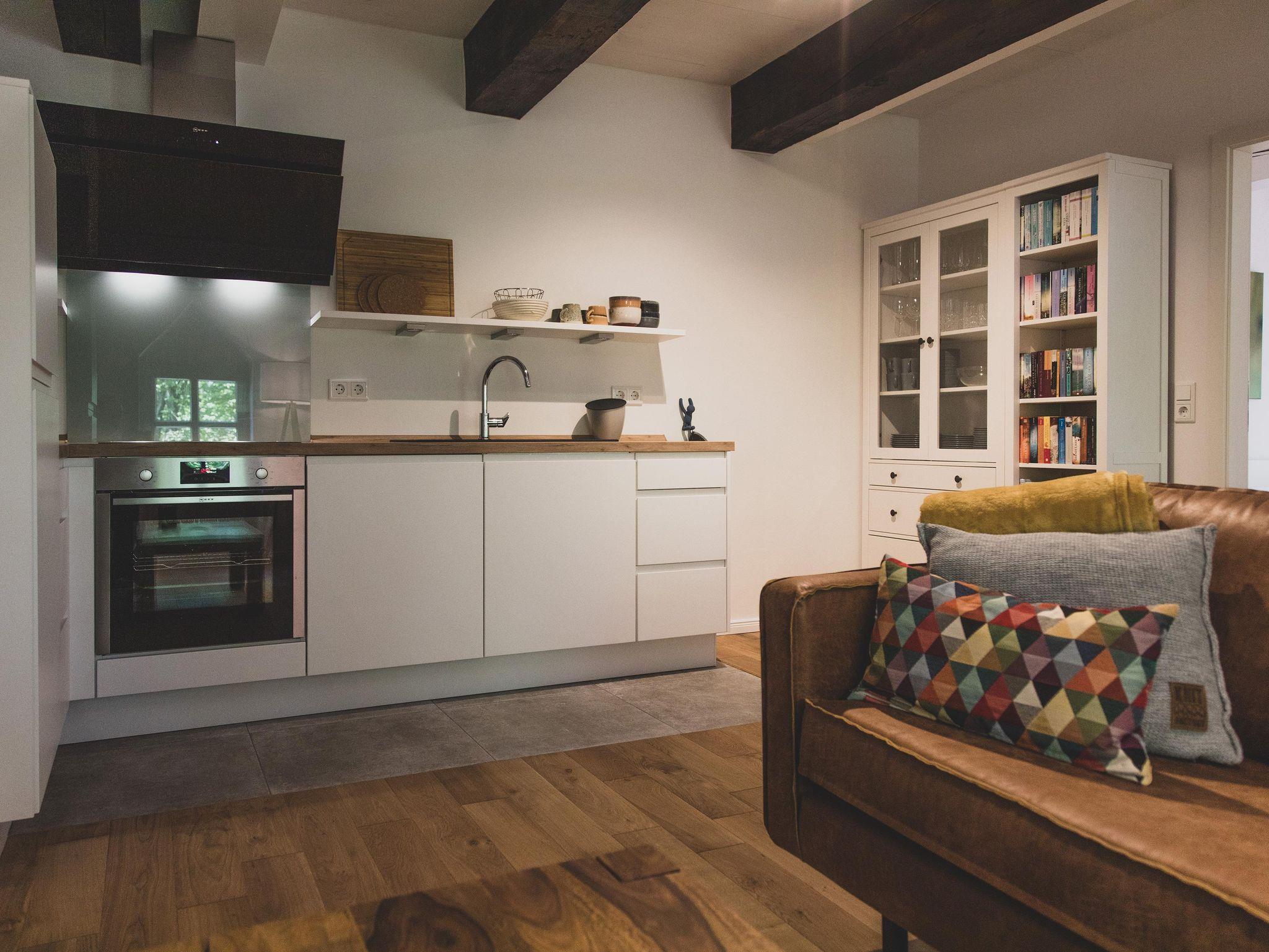 Kochliebhaber werden sich über die voll ausgestattete, hochwertige Küche inklusive Mikrowelle, Induktionsherd und Geschirrspüler freuen.