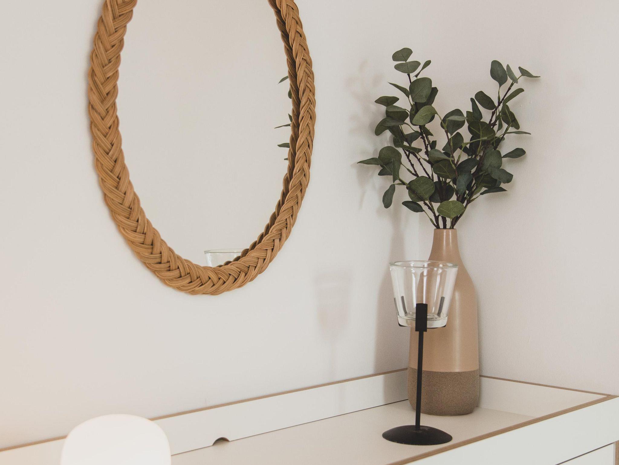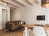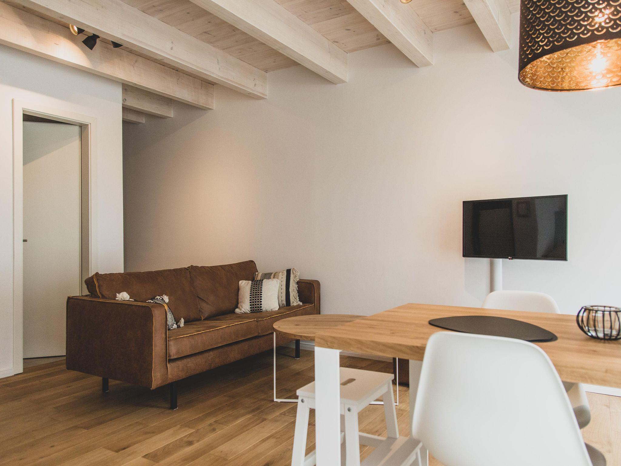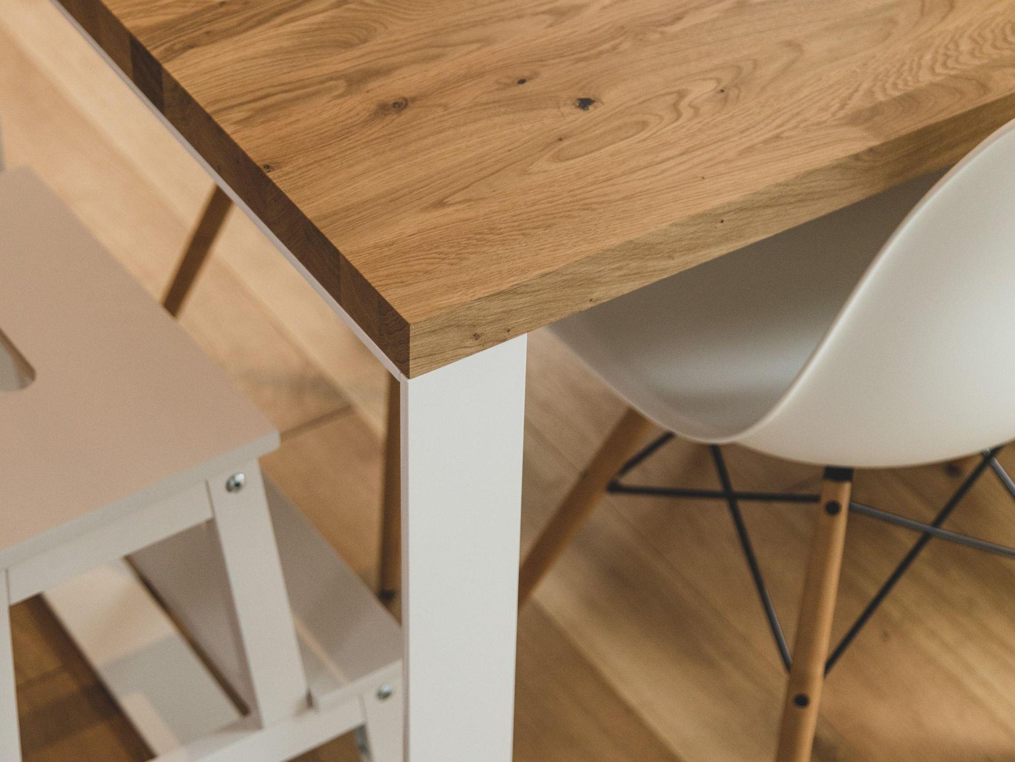 Ein denkmalgeschützter Träger des Ständerfachwerks, der auf beiden Wohnebenen sichtbar ist, verleiht der Wohnung besonderen Flair.