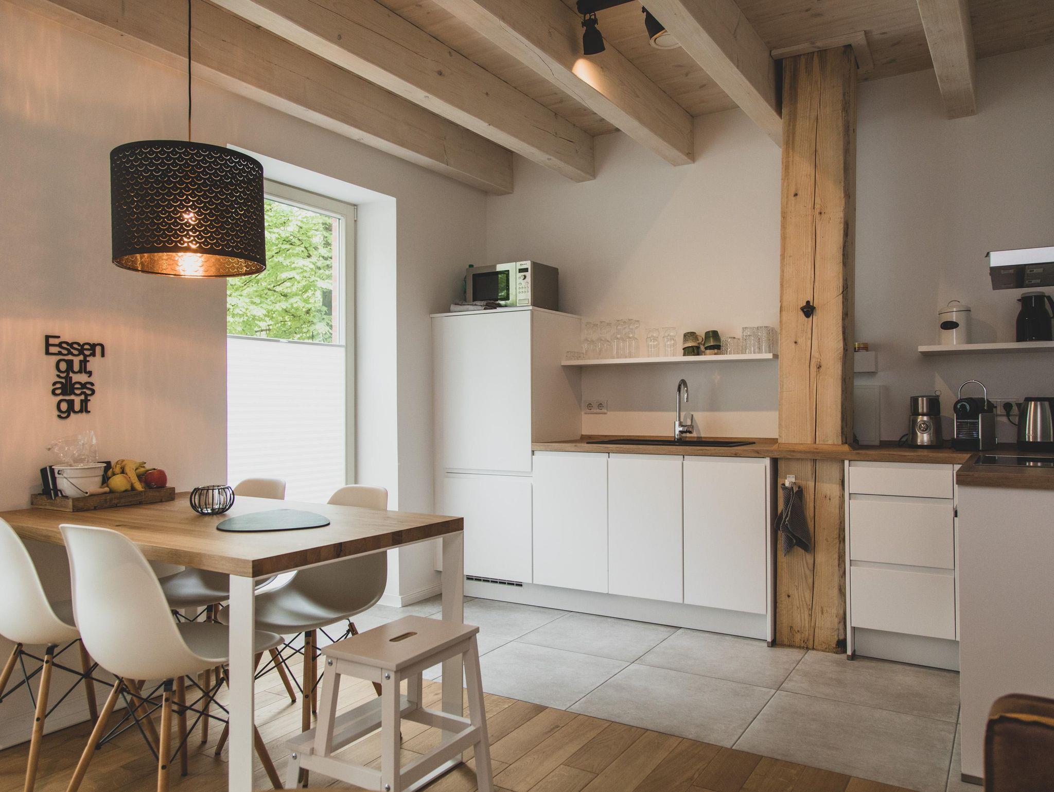 Über die ehemalige Scheune des Gulfhofes erfolgt der Zugang zu diesem gemütlichen Rückzugsort. Die Wohnung erstreckt sich über 2 Ebene und bietet mit zwei Schlafzimmern Platz für 4 Personen.