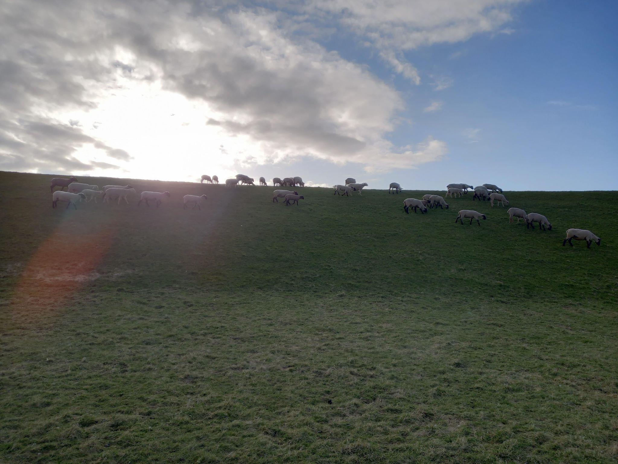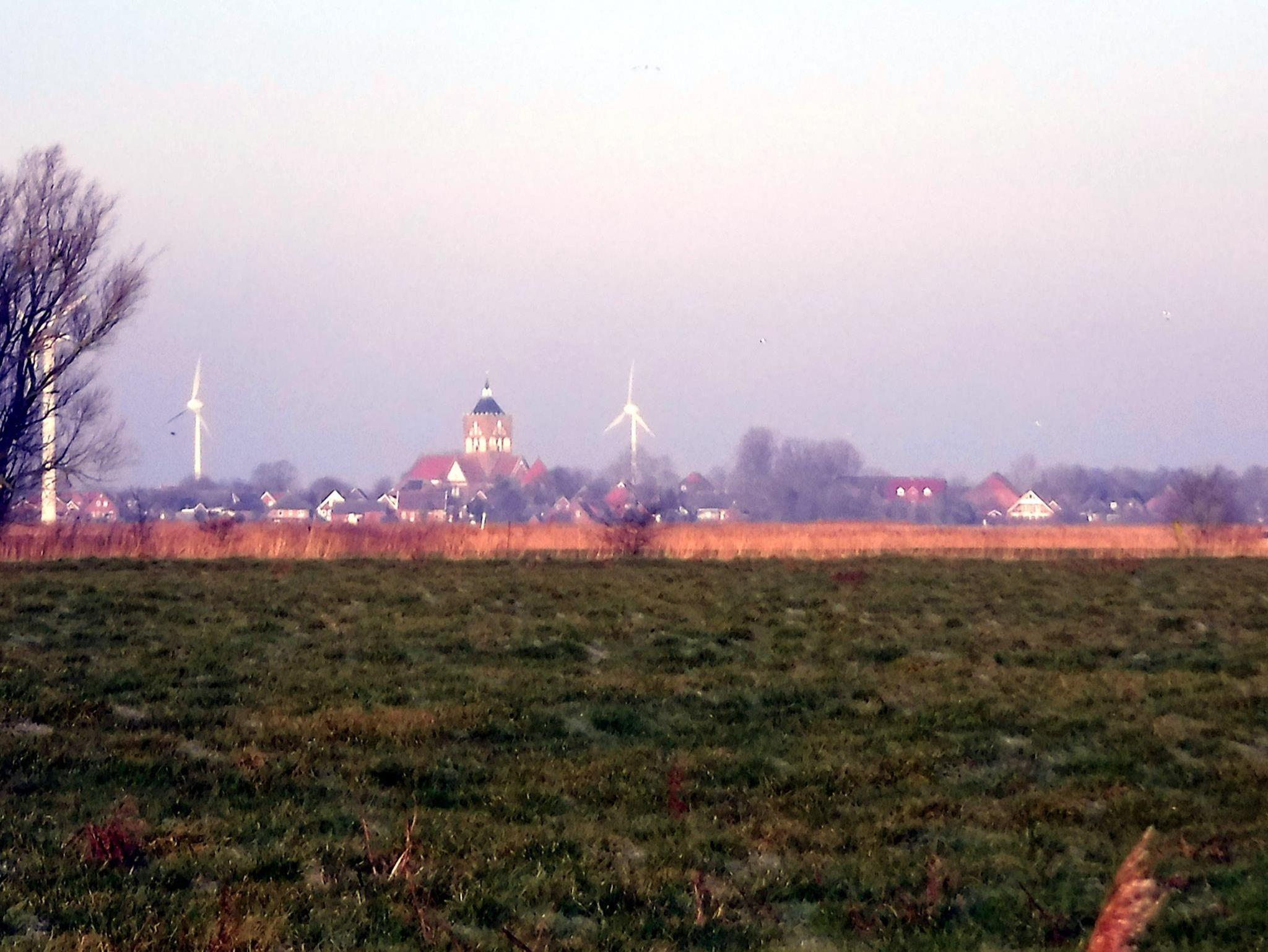 Der Blick reicht über die Meede bis zur Kreuzkirche von Pilsum, zur Deichkrone am Horizont und zu den Zwillingsmühlen von Greetsiel. Als Ausgangspunkt für Fahrradtouren sind die FEWO´s ideal geeignet. Die nähere Umgebung kann aber auch mit kleineren oder größeren Spaziergängen erkundet werden.