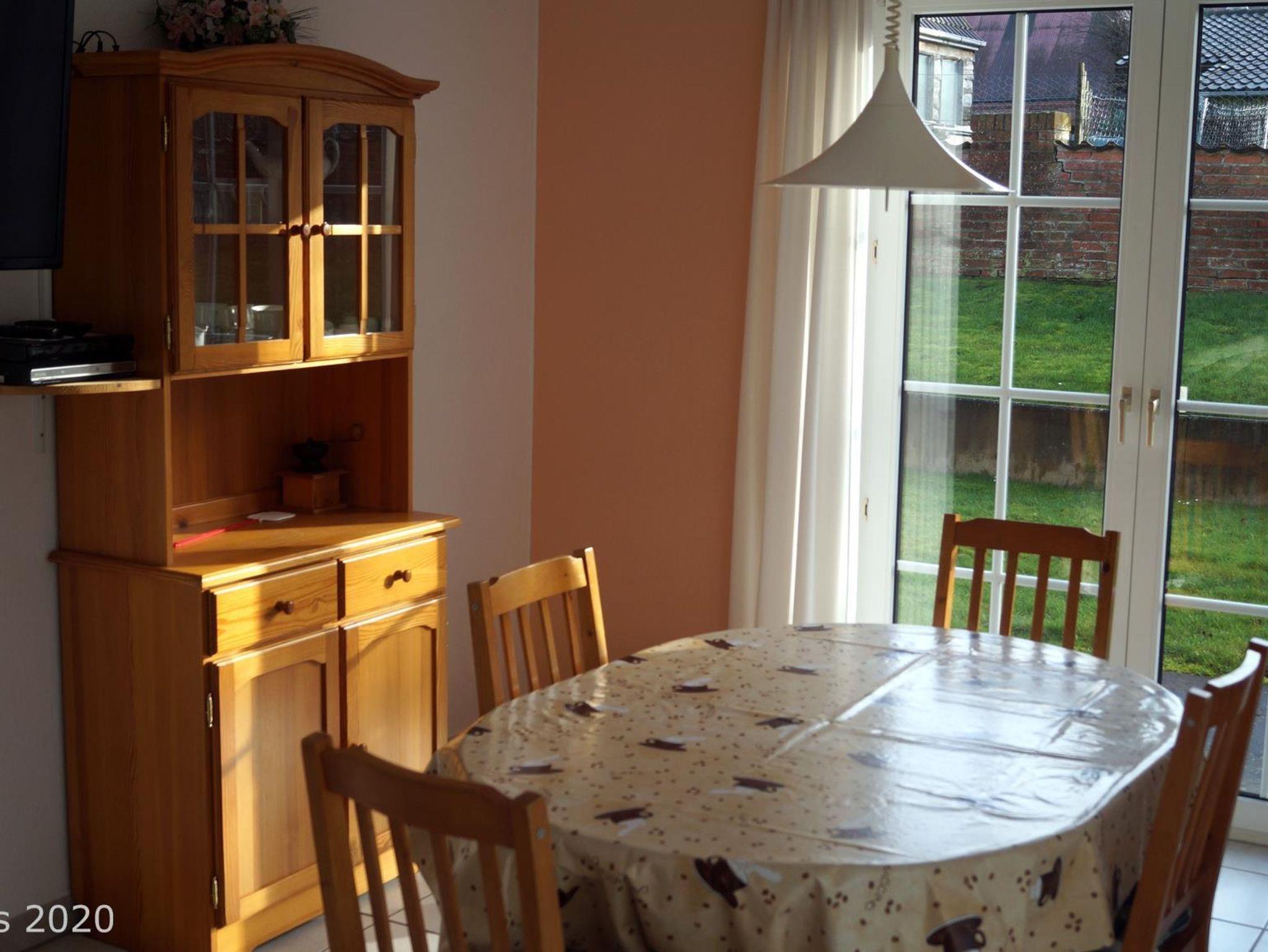 Die Wohnung ist ca. 60 qm groß; sehr hell und ruhig gelegen mit einem großen Wohn-/Essbereich und einer Küchenzeile. Die gut ausgestattete Küche verfügt über Backofen, Kaffeemaschine, Wasserkocher, kleiner Microwelle, Kühlschrank und Geschirrspülmaschine. Die 2 Schlafzimmer sind mit einem Doppelbett bzw. mit 2 Einzelbetten ausgestattet. Die Fenster sind mit Fliegenschutzgittern versehen. Im Wohn-/Essbereich ist ein 40 Zoll Sony Flachbildschirm (an der Wand hängend) mit Sat-TV & RADIO und DVD-Player sowie eine Sony Mikrostereoanlage vorhanden. Die Wohnung hat eine ca. 30 qm große Terrasse, diese ist überwiegend windgeschützt . An die Terrasse grenzt der Garten mit Blick in die Meede, Fernsicht bis nach Emshaven bei gutem Wetter. Gartenmöbel sind im Abstellhaus im Garten vorhanden. Im Abstellhäuschen können auch mitgebrachte Fahrräder untergestellt werden. Die Wohnung ist ideal für Familien mit 2 Kindern oder für max. 4 Erwachsene.