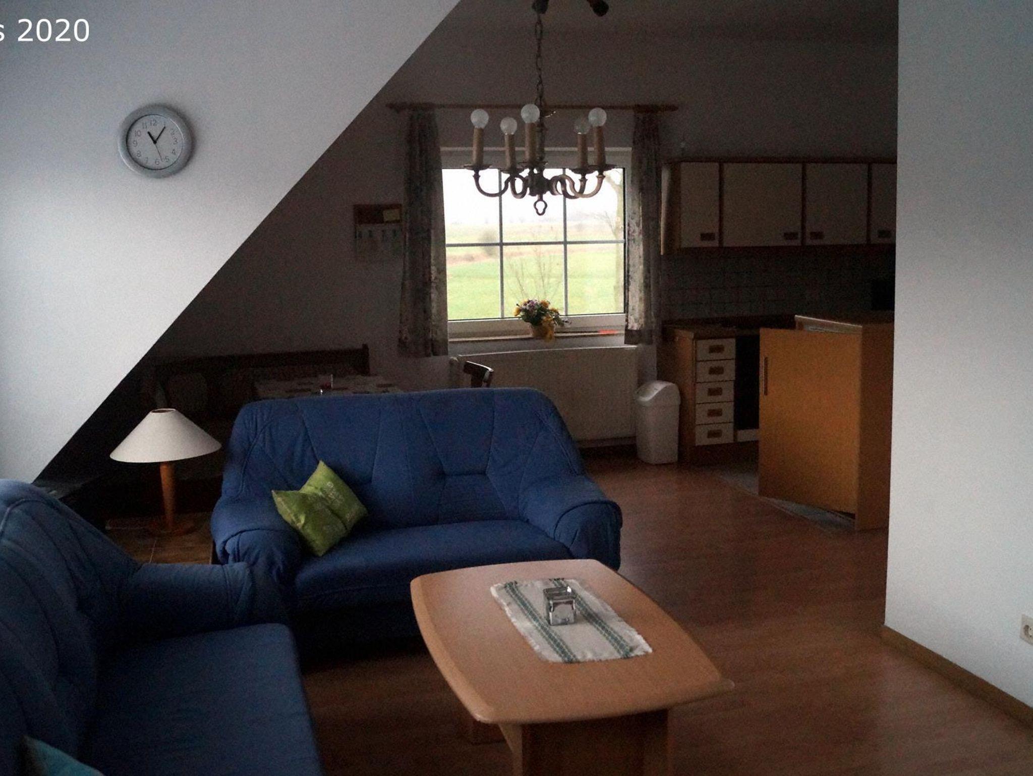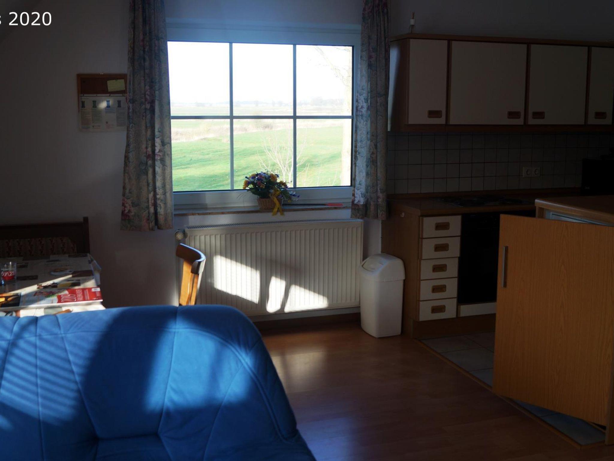 Die Wohnung ist ca. 65qm groß, sehr hell und ruhig gelegen mit großer Wohn-/Essecke und Küchenzeile. Die gut ausgestattete Küche verfügt über Backofen, Mikrowelle, Kaffeemaschine, Wasserkocher, Kühlschrank und Geschirrspülmaschine. Die beiden ca. 9qm großen Schlafzimmer sind mit Doppelbett bzw. mit 2 Einzelbetten ausgestattet. Die Fenster sind teilweise mit Fliegenschutzgittern versehen. Ein 40 Zoll Sony Flachbildschirm mit Sat- TV, Radio und DVD-Player sowie eine Mikrostereoanlage sind im Wohnbereich vorhanden. Die Wohnung hat einen ca. 8 qm großen Balkon mit Blick über die Meede bis zum Deich. Von der Essecke hat man ebenfalls einen schönen Blick über die Meede, zeitweilig bis Pilsum und/oder Greetsiel möglich. Fernsicht bis nach Emshaven bei gutem Wetter möglich. Balkonmöbel sind im Abstellraum der Wohnung vorhanden. In einem Abstellhäuschen können mitgebrachte Fahrräder untergestellt werden. Die Wohnung ist ideal für Familien mit 2 Kindern oder für max. 4 Erwachsene.