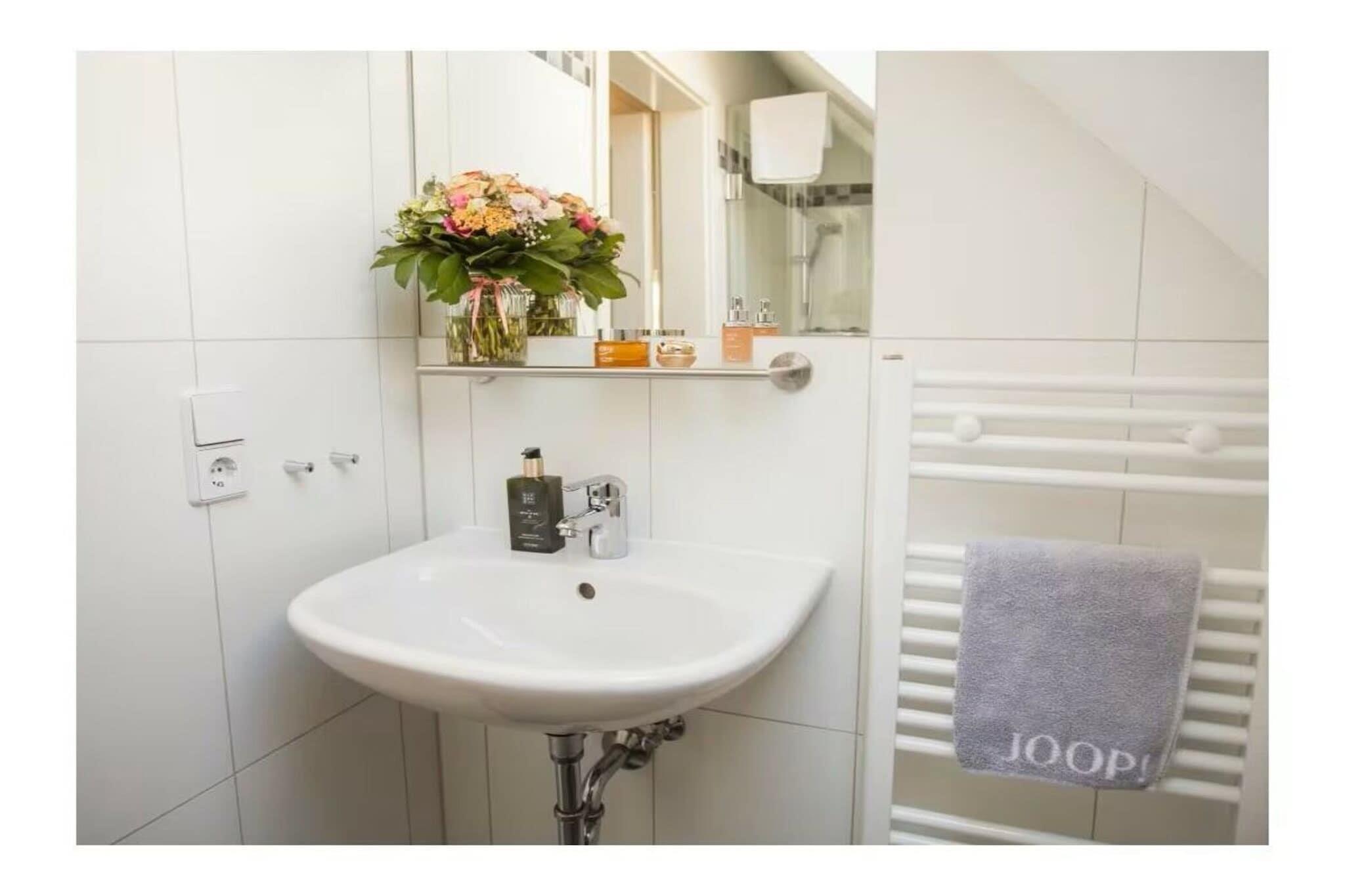 Plads til op til 6 personer! Stueetage: Fuldt udstyret køkken med opvaskemaskine, kaffemaskine, mikrobølgeovn, brødrister og elkedel. Stue med brændeovn og rummelig spiseplads, stort fladskærms-tv, dvd-afspiller, radio og stereoanlæg. Et soveværelse med dobbeltseng og tv, spabadeværelse med sauna, spabad, bruser og toilet. Øverste etage: et soveværelse med dobbeltseng, et soveværelse med to enkeltsenge, brusebadeværelse, toilet og hems med en komfortabel sofa. En rejseseng, højstol og fodskammel er gratis til vores yngre gæster. Myggenet i vinduerne holder uønskede insekter ude. Gratis Wi-Fi er tilgængelig. En gratis parkeringsplads er inkluderet i lejligheden. Dine cykler kan opbevares i bygningens aflåselige cykelskur.