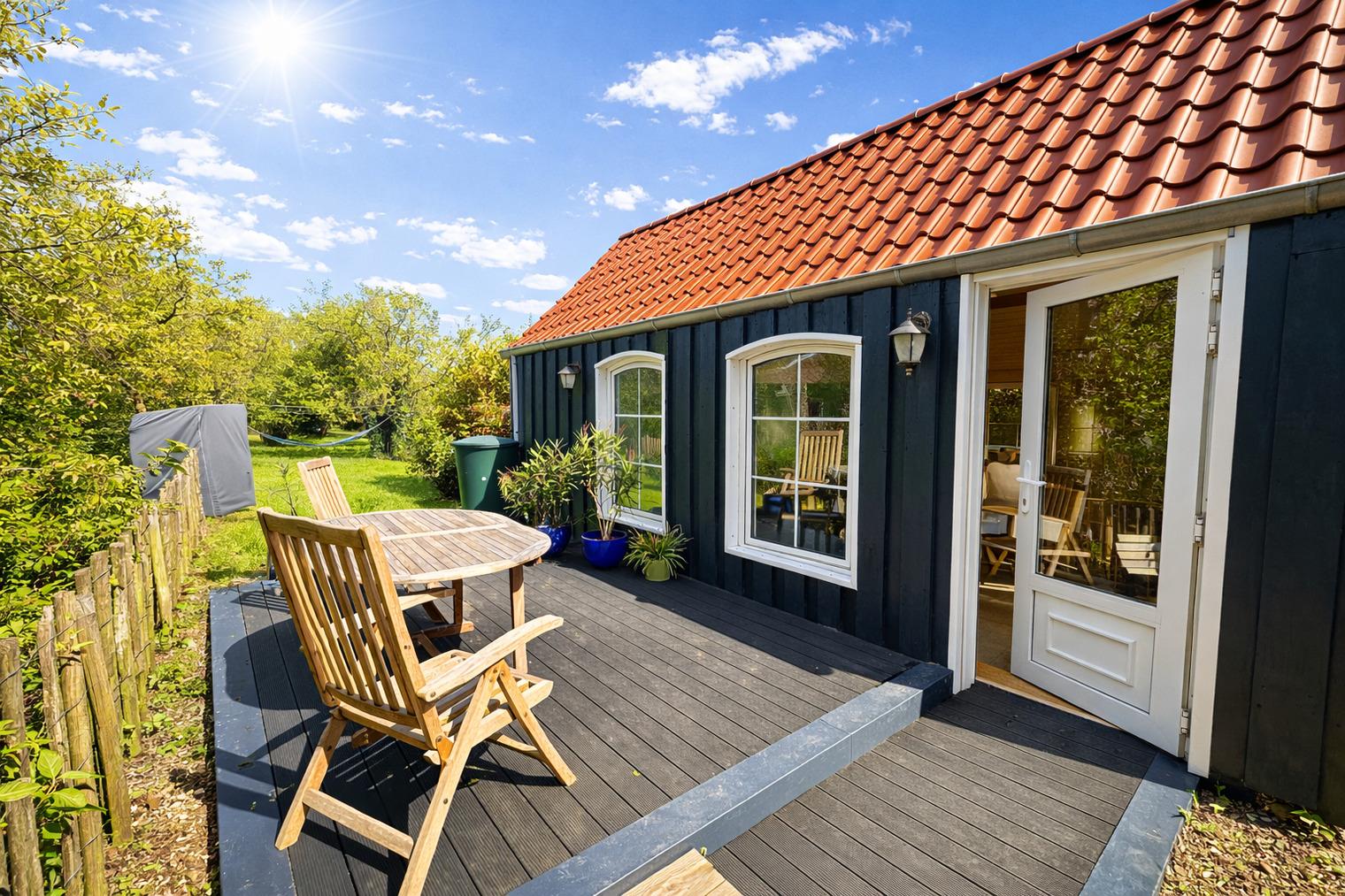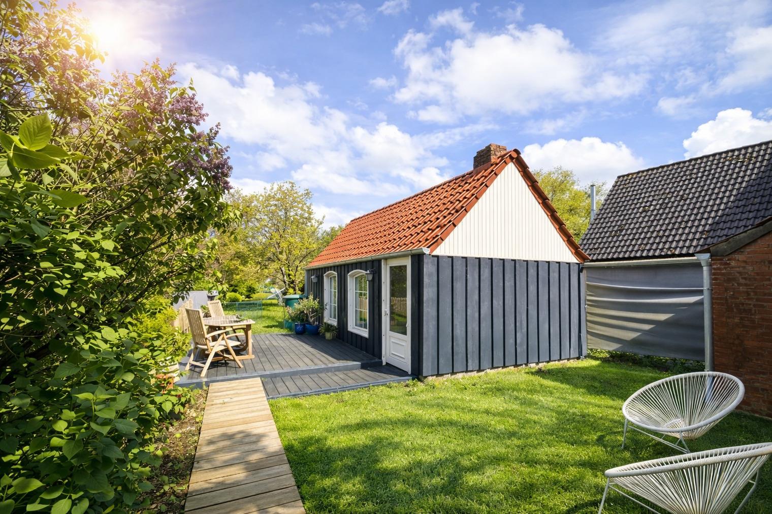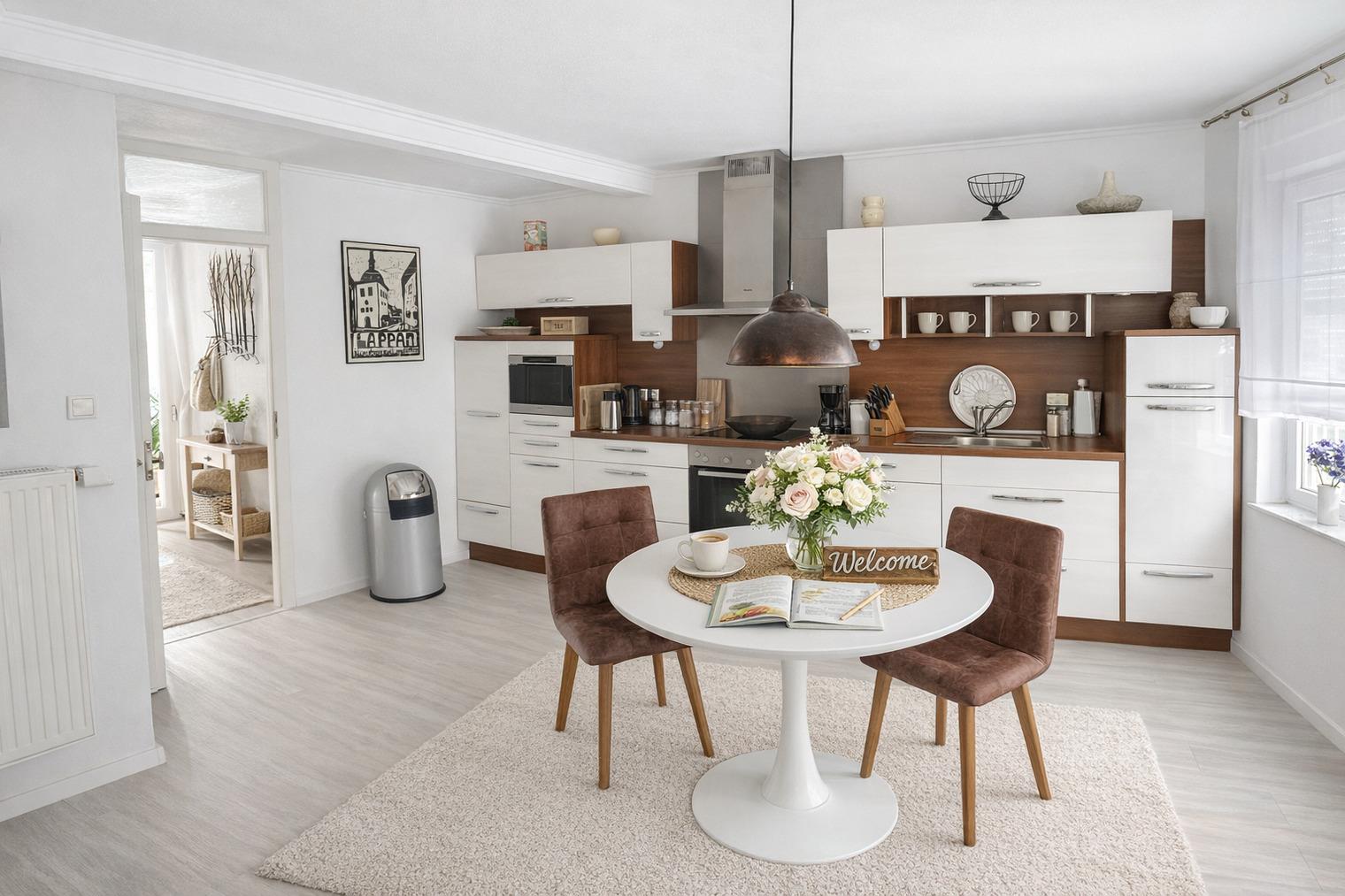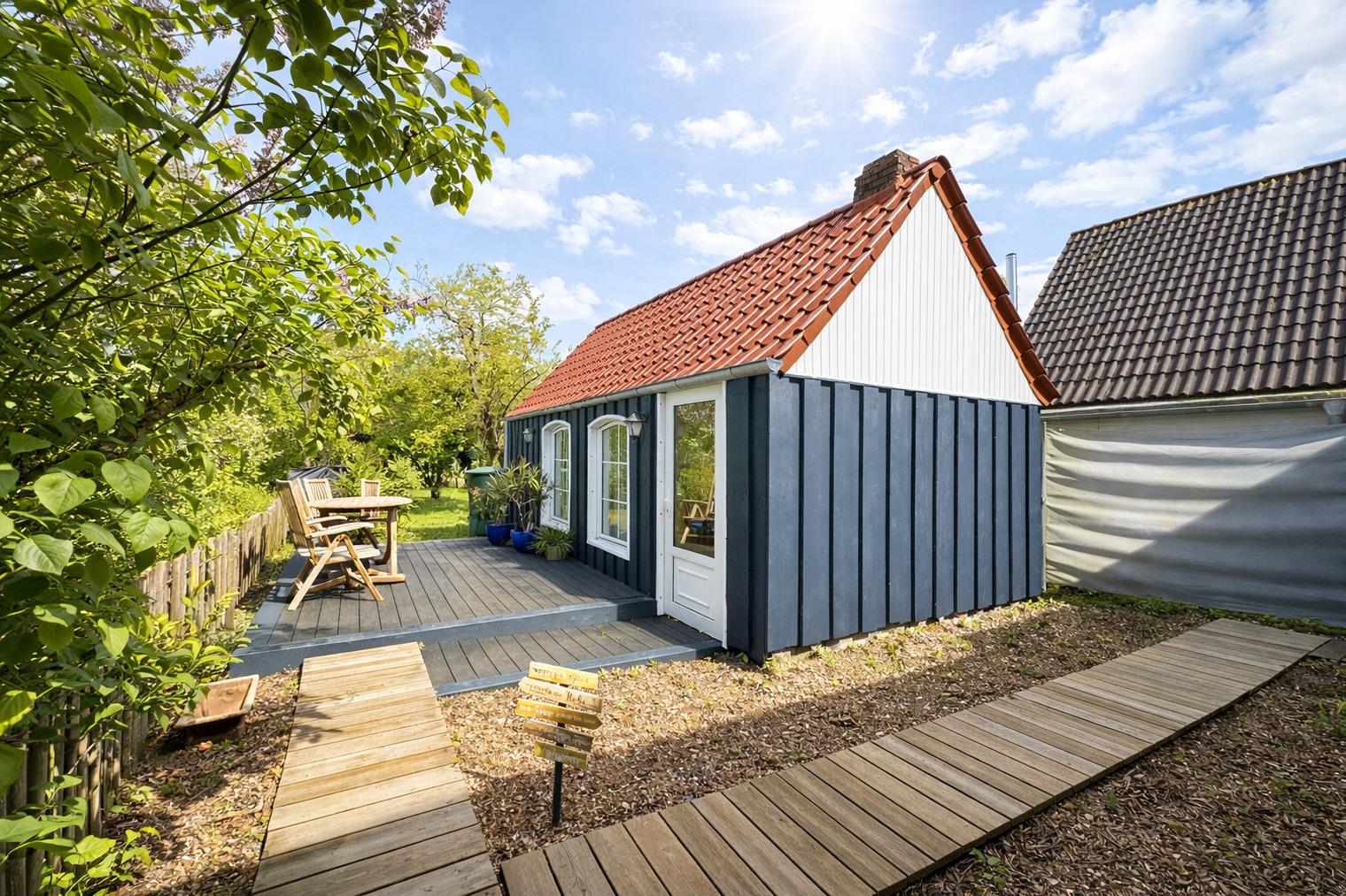?? Ein Zuhause auf Zeit – mit Herz eingerichtet Die liebevoll renovierte Doppelhaushälfte bietet Raum für zwei Menschen, die das Einfache und Echte lieben. Jeder Raum wurde mit Sorgfalt gestaltet — warm, klar und hochwertig. Drinnen erwartet Sie: ein helles, gemütliches Wohnzimmer mit großer Eckcouch und Smart-TV ein Schlafzimmer mit einem großzügigen Doppelbett (180×200 cm) und TV eine große Wohnküche, ausgestattet mit modernen Miele-Geräten ein modernes Bad mit bodentiefer Regendusche & Doppelwaschbecken Waschmaschine, Handtücher & Bettwäsche sind selbstverständlich vorhanden Elektrische Jalousien sorgen für Geborgenheit, Insektenschutz für ruhige Sommernächte. Und über allem liegt dieses Gefühl: Hier ist alles leicht. ?? Ein Garten wie aus einem Sommertraum Der weitläufige Naturgarten ist ein kleines Paradies — wildromantisch, grün, lebendig. Zwischen Pflaumen-, Mirabellen- und Apfelbäumen findet jeder seinen Lieblingsplatz. Vielleicht ist es… die Hängematte, sanft schaukelnd im Schatten der Bäume der Strandkorb auf der Holzterrasse, mit Blick ins Grün oder das Gartenhaus mit Kaminofen — der perfekte Ort für gemütliche Stunden am Abend Und wenn im Spätsommer die Früchte reif sind, dürfen Sie sich gerne bedienen. Hier gehört die Natur einfach dazu.