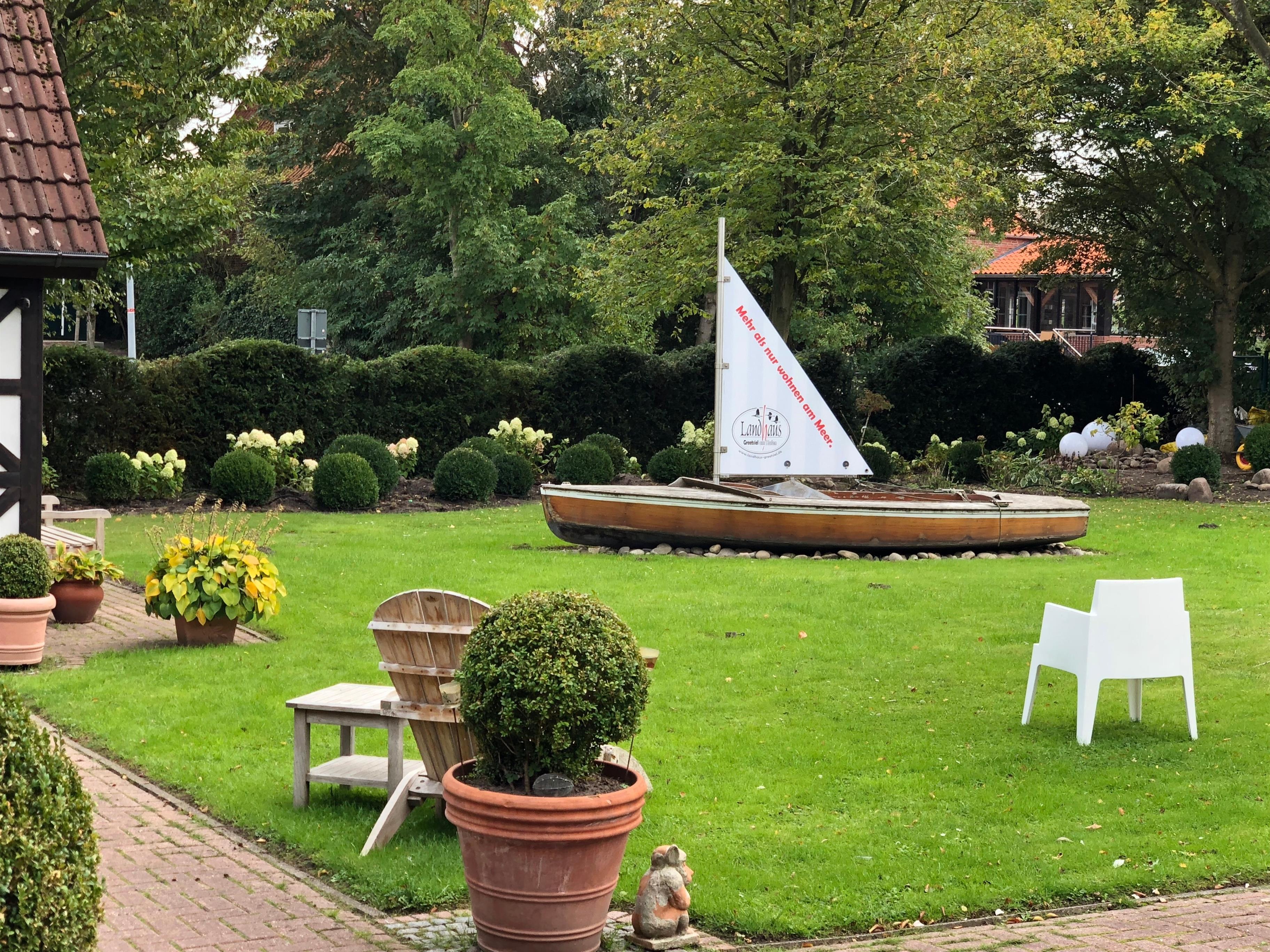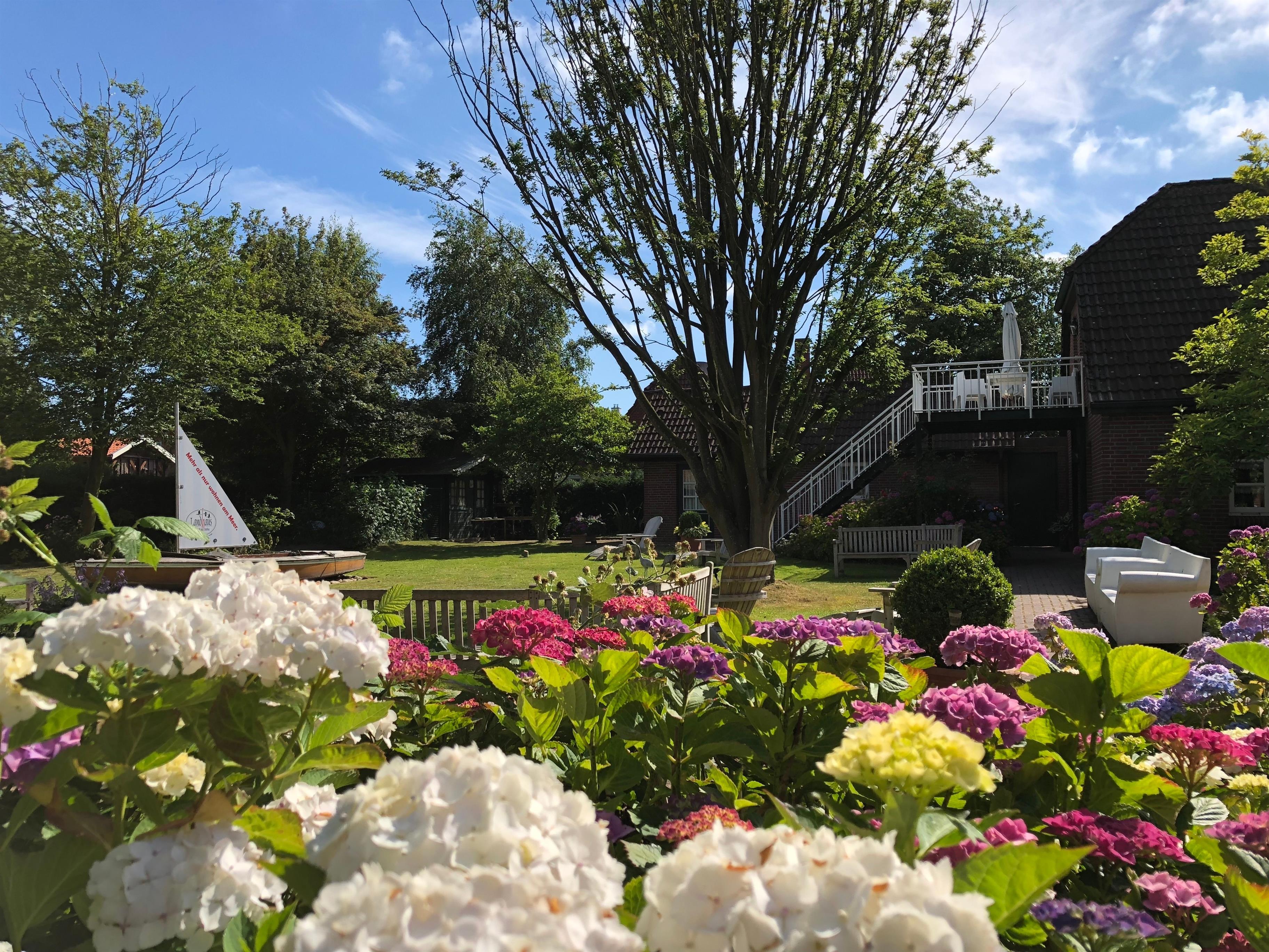 Darüber hinaus steht Gästen der riesige Landhaus-Garten (2000 qm) zur Verfügung: mit Sonnenliegen und Sonnenschirmen - aber auch Schattenplätzen, wenn die Sonne mal zu heiß scheint.