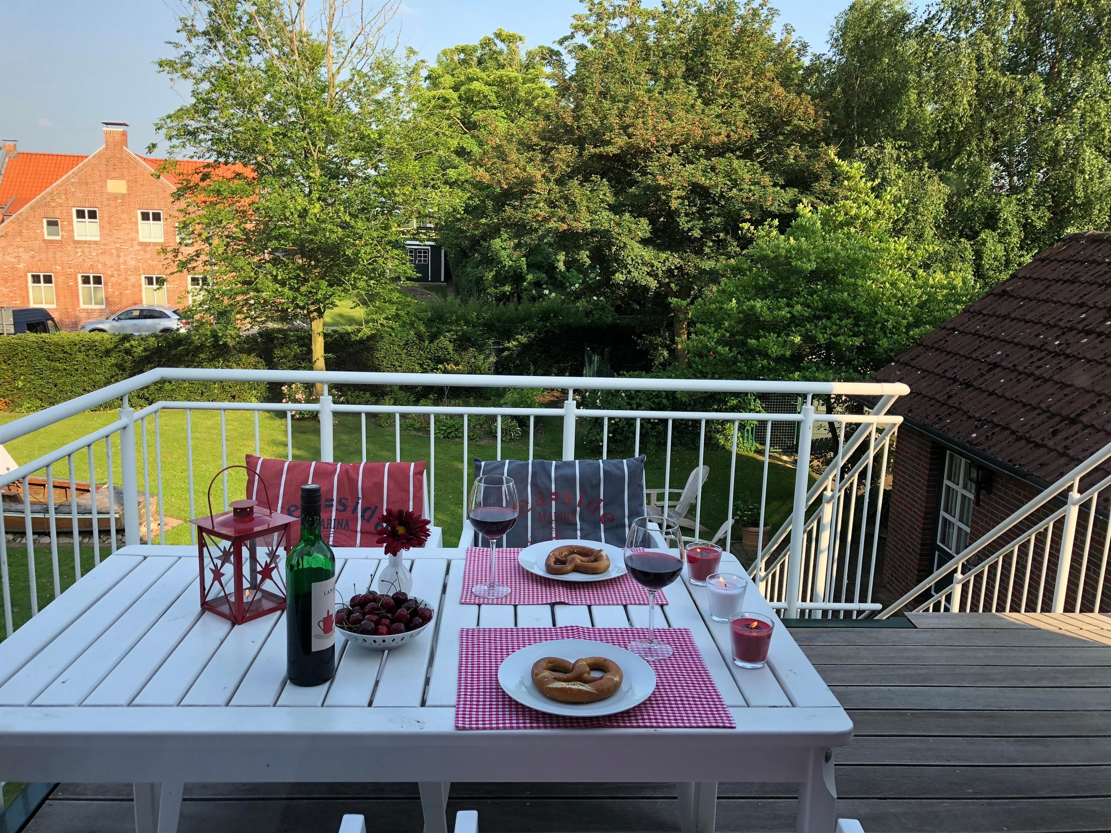 Der "Deichkieker" ist eine 67 qm große Ferienwohnung im Obergeschoss mit großer Dachterrasse im Landhaus Greetsiel am Hafen - für bis zu 3 Personen.