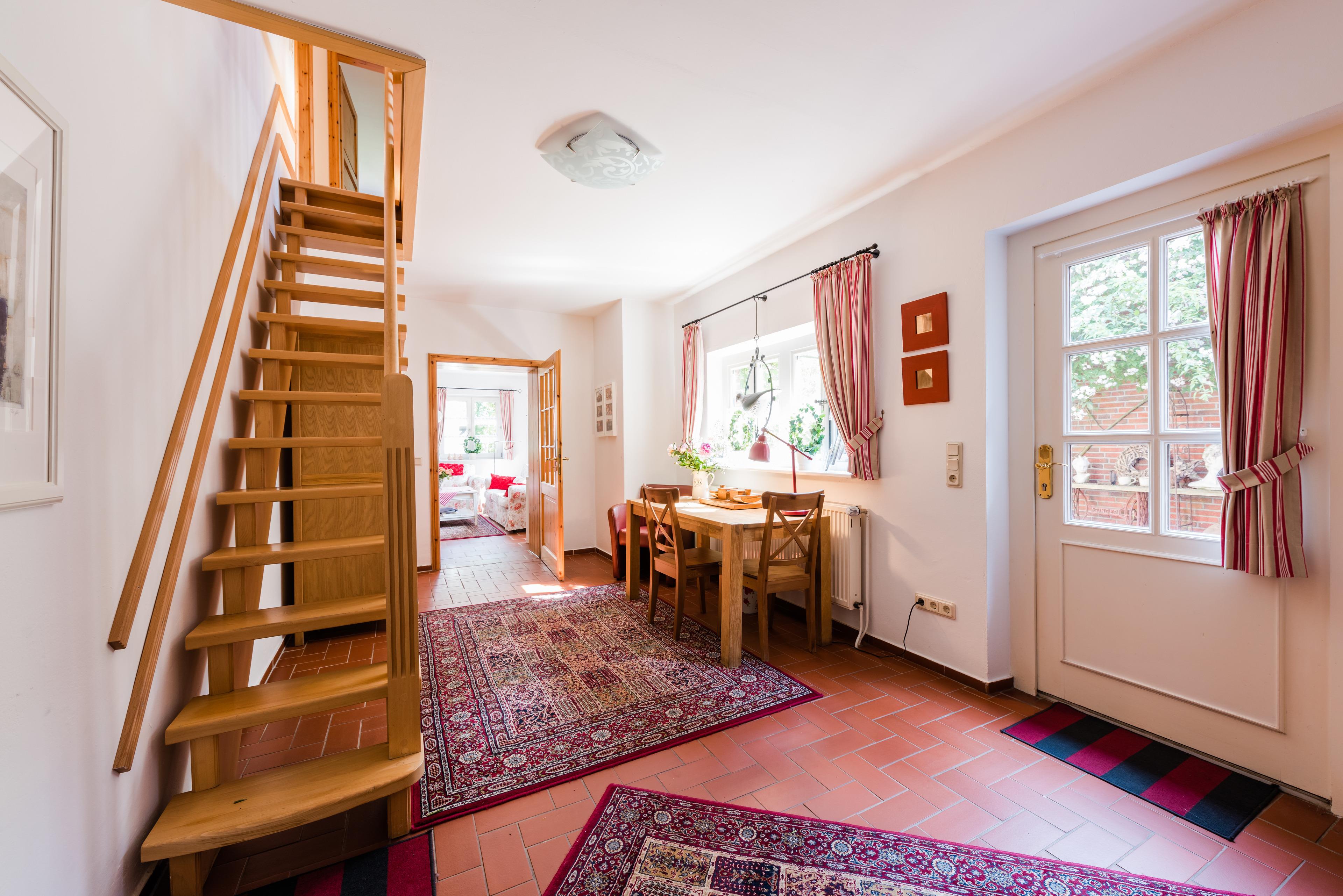 Weil viele Menschen im Urlaub nicht ausschließlich Urlaub machen können, bieten wir in der Diele zum Wohnzimmer einen kleinen Büroraum. Mit Internetanschluss natürlich.