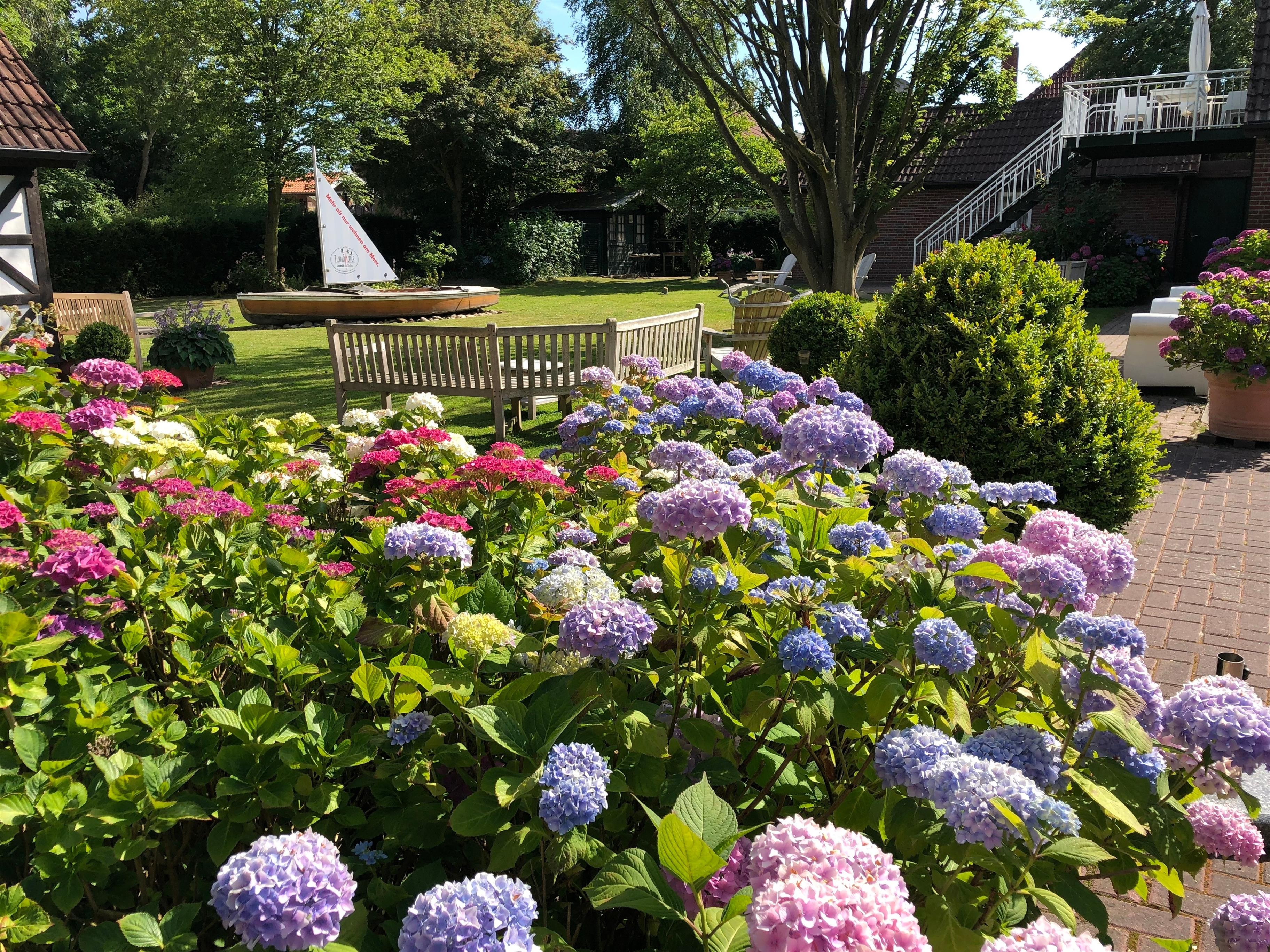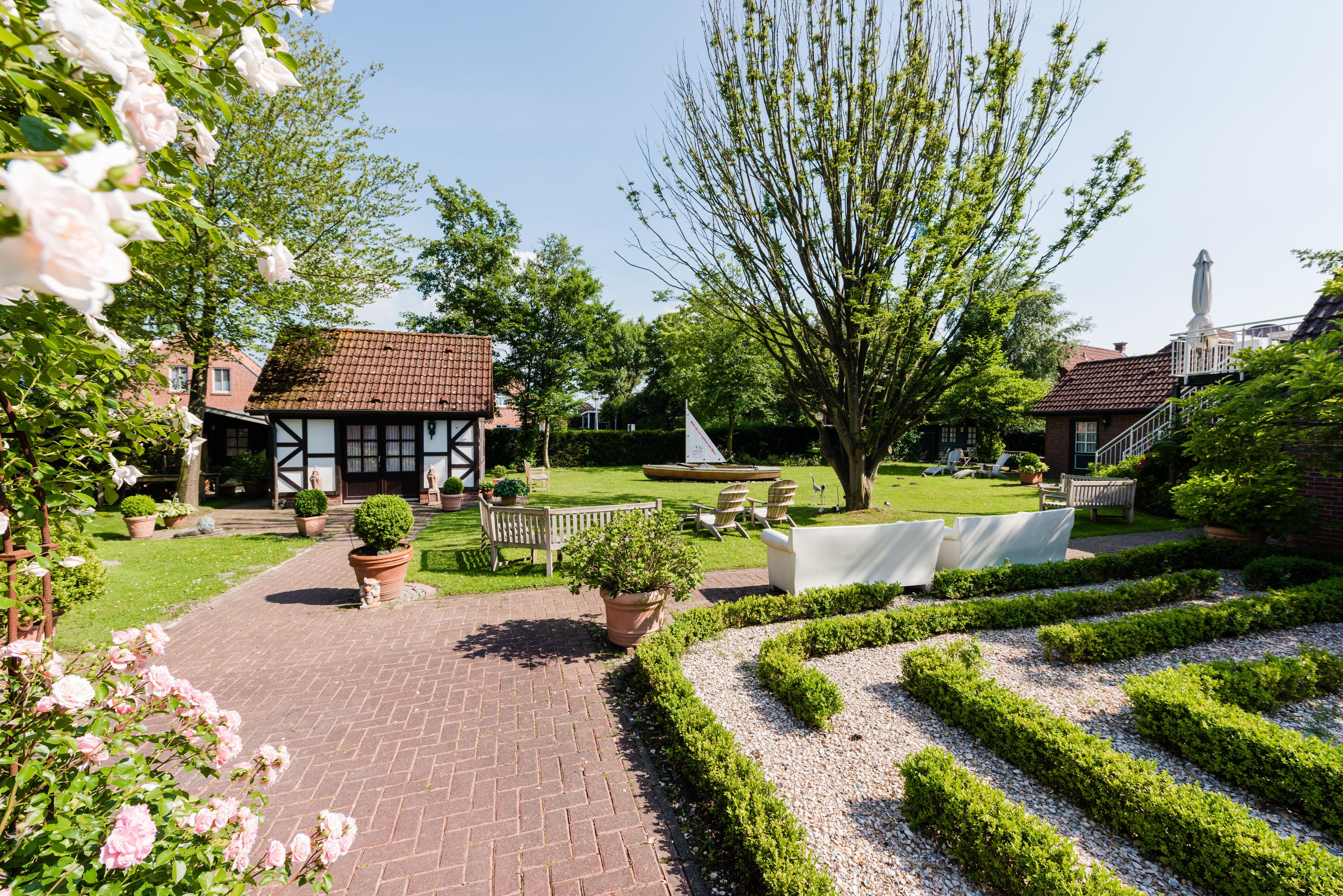 Das "Landhaus Greetsiel am Hafen" bietet 7 Ferienwohnungen von 35 bis 157 qm. Es steht auf einem über 2000 qm großen Grundstück: eine Oase der Erholung. Sitz- und Liegemöbeln laden im parkähnlichen Außenbereich ein, die Nordseeluft zu genießen.