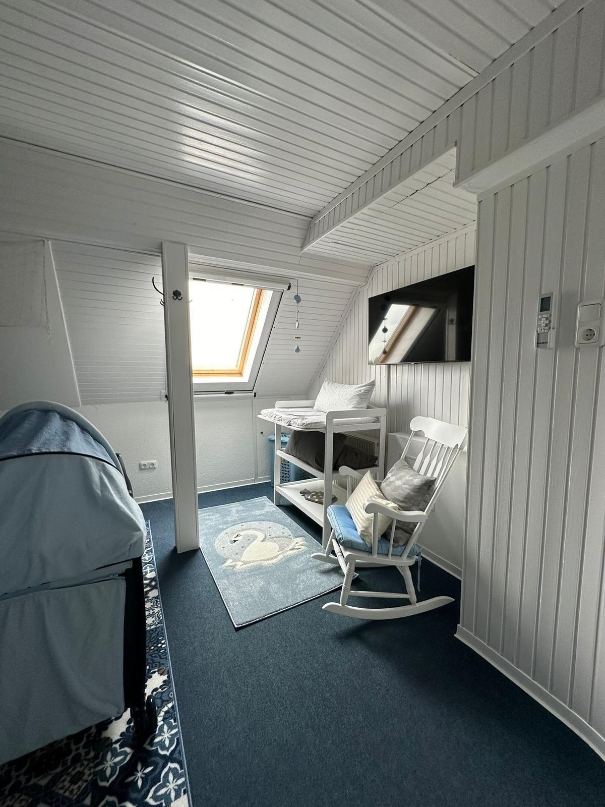 Im Obergeschoss befinden sich 3 liebevoll eingerichtete Schlafzimmer. Es gibt ein Schlafzimmer mit Doppelbett, Kinderreisebett, Wickelkommode und Smart-TV, ein Schlafzimmer mit zwei Einzelbetten und ein Schlafzimmer mit einem Doppeletagenbett und Rutsche. Das "Elternschlafzimmer" sowie das Wohnzimmer ist zudem mit einer Klimaanlage ausgerüstet.
