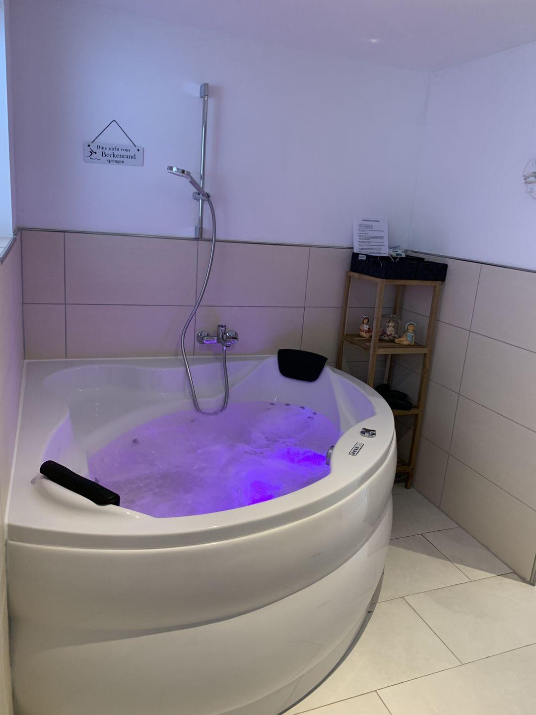Über einen überdachten Anbau des Hauses gelangen Sie in den "Wohlfühl-Bereich" des Hauses: Eine moderne Sauna für bis zu zwei Personen, ein Whirlpool mit LED-Beleuchtung sowie gemütliche Relaxliegen bringen Ihrem Urlaub die nötige Entspannung und Erholung!