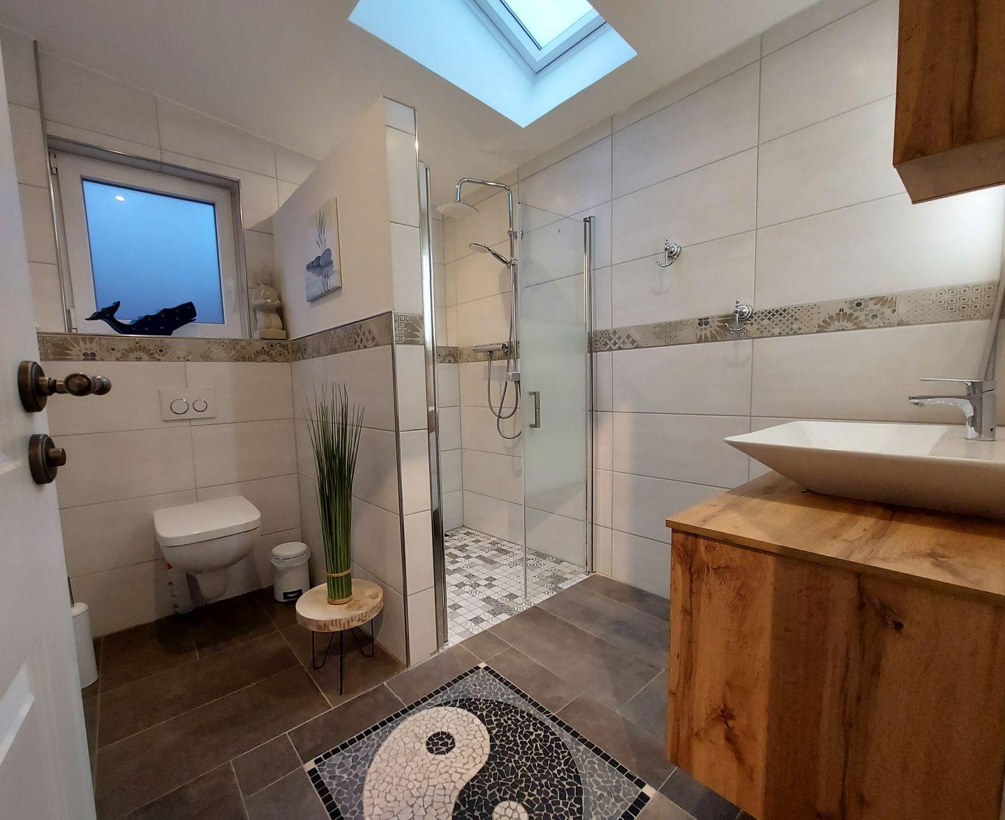 Das Ferienhaus "Carpe diem" im beschaulichen, wunderschönen Warftendorf Rysum/Krummhörn ist ein Highlight für die ganze Familie! Auf 108m² Wohnfläche und mehr als 60m² überdachter Nutzfläche können Sie im Kreise Ihrer Familie und Freunde einen unvergesslichen Urlaub mit hauseigener Sauna und Whirlpool genießen. Das liebevoll eingerichtete Ferienhaus im Landhausstil besitzt sechs Schlafmöglichkeiten in Form von zwei Doppelbetten (je 180cm Liegefläche) und zwei Einzelbetten (je 90cm Liegefläche). Ein Schlafzimmer mit Doppelbett und ein hochmodernes Badezimmer mit ebenerdigem Duschbereich und Rainshower-Duschkopf befinden sich im Erdgeschoss. Die anderen beiden Schlafzimmer und das zweite Bad, welches zusätzlich über eine Fußbodenheizung verfügt, sind im Obergeschoss zu finden. Die Einbauküche ist technisch auf dem neuesten Stand, beinhaltet alle gängigen Geräte und fügt sich vom Stil her elegant in das Gesamtbild ein. Im angrenzenden Esszimmer können Sie vor dem Kaminofen tolle Spieleabende genießen.