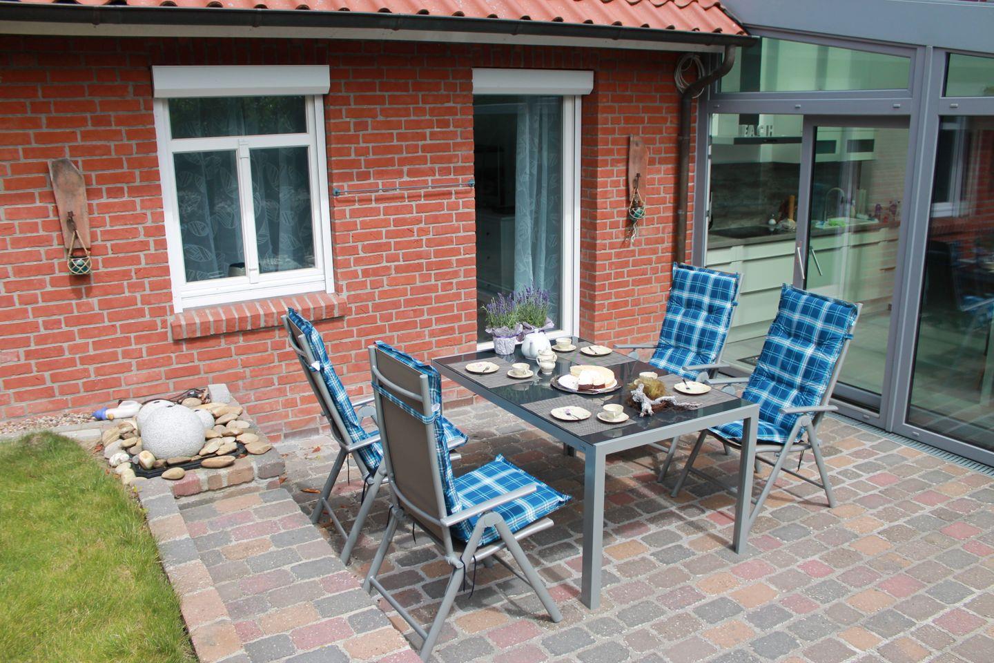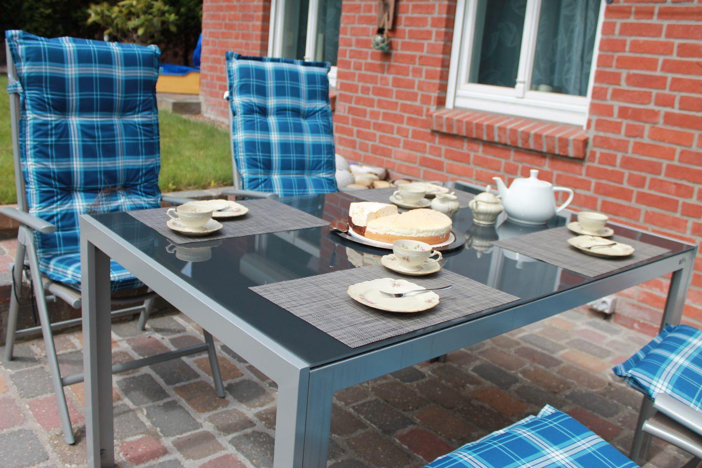 Auf der Terrasse laden gemütliche Gartenmöbel zum Entspannen und Genießen ein. Im Garten ist für unsere kleinen Gäste viel Platz zum Spielen.