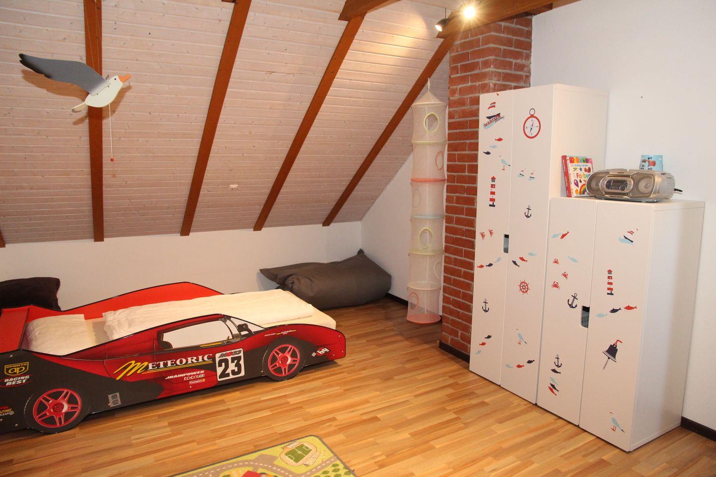 Das Ostfriesenhuus ist besonders kinderfreundlich eingerichtet - eigenes Spielzimmer im Obergeschoss, Spielzeug/Bücher sind vorhanden. Für Ausflüge steht auch ein Buggy bereit. Hamswehrum hat einen Spielplatz, der in zwei Minuten fußläufig zu erreichen ist. Die ruhige Lage in Hamswehrum macht den Ort besonders attraktiv - dabei sind alle Ausflugsziele schnell erreichbar.