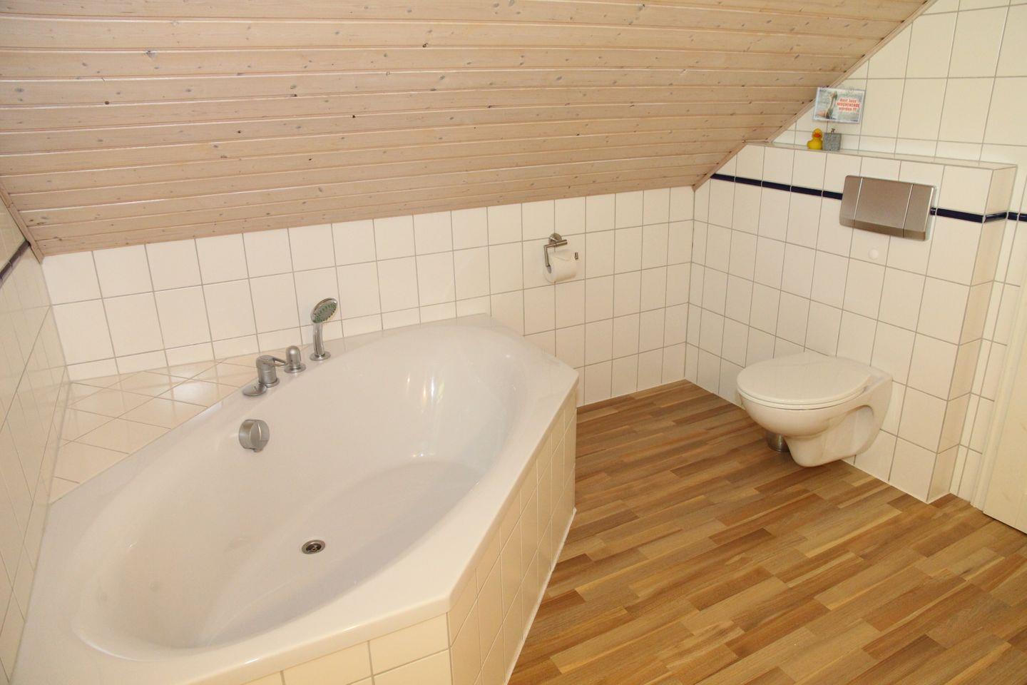 Im Masterbad erwarten Sie eine ebenerdige Regenwalddusche mit Fußbodenheizung und eine Infrarot-Wärmekabine. Das zweite Bad im Obergeschoss verfügt über Dusche und Eckbadewanne. Ein Waschtrockner ist im Hauswirtschaftsraum ebenfalls vorhanden.