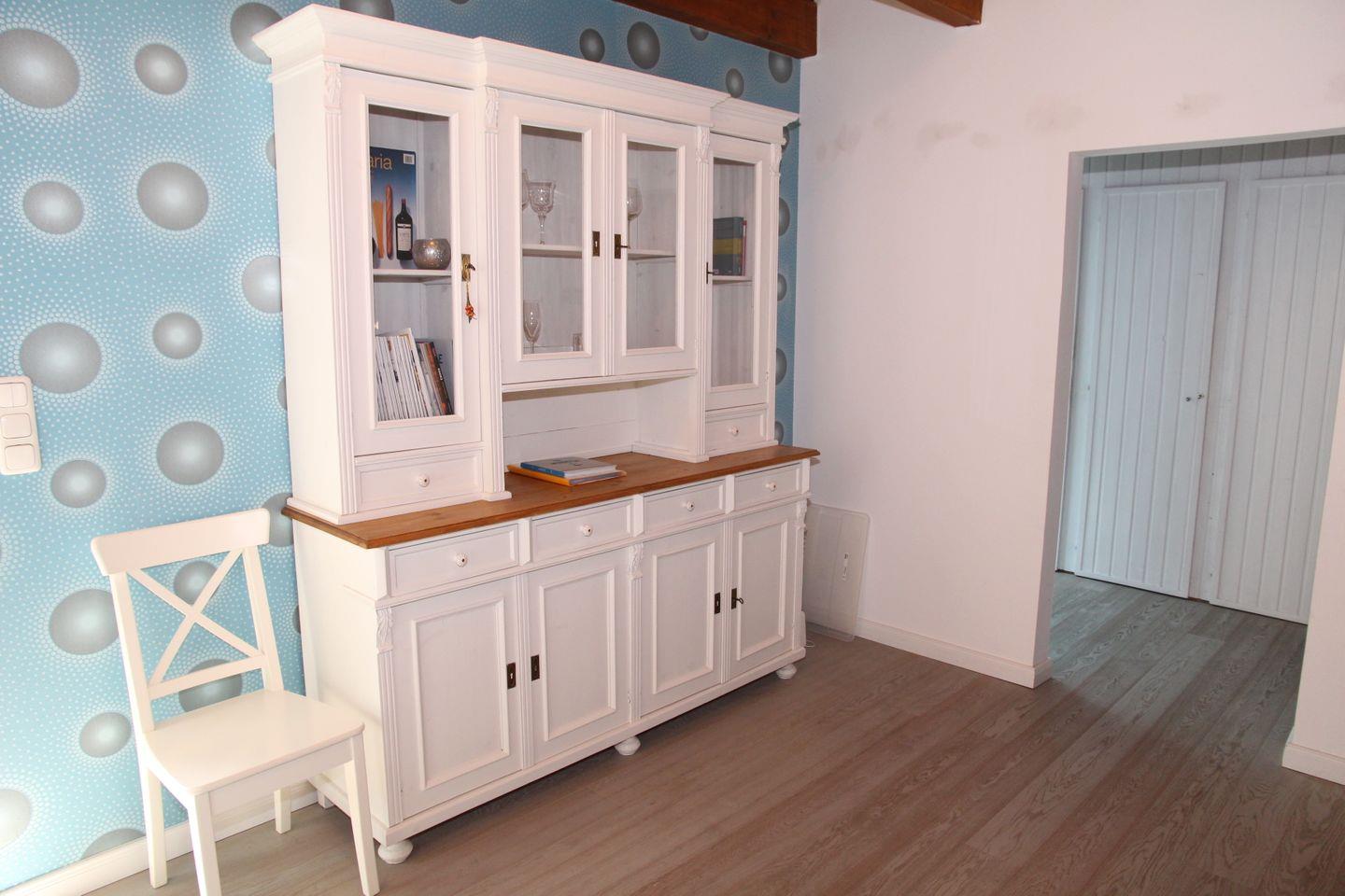 Das im modernen Landhausstil eingerichtete Haus verfügt über ein Elternschlafzimmer, ein Kinderzimmer mit einem 1.40 Meter breiten Bett und einem Rennauto-Bett für kleine Autofans. Im großzügigen, offenen Wohnbereich finden Sie einen Holzpellet-Kaminofen, eine komfortable Sofalandschaft, Großbildfernseher, Blu-ray-Player und kostenloses WLAN (Für uneingeschränkte Verfügbarkeit und ausreichende Geschwindigkeit übernehmen wir keine Gewähr). Die große Wohnküche im außergewöhnlichen Wintergarten mit Zugang zur Terrasse ist komplett ausgestattet mit Induktions-Kochfeld, Geschirrspüler, Umluftherd auf Stehhöhe und allen wichtigen Haushaltsgeräten.