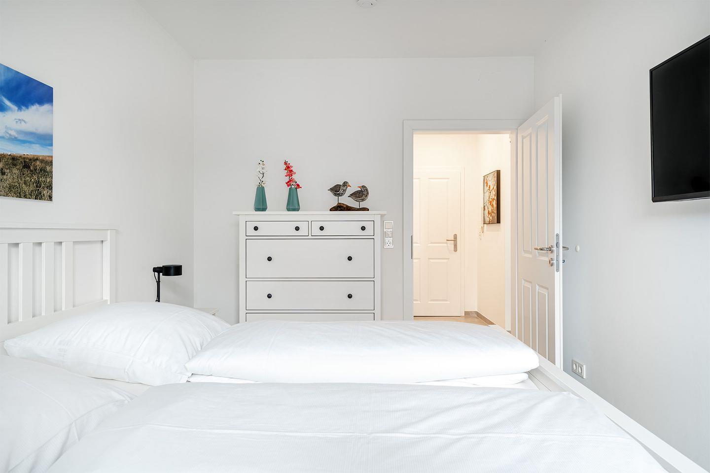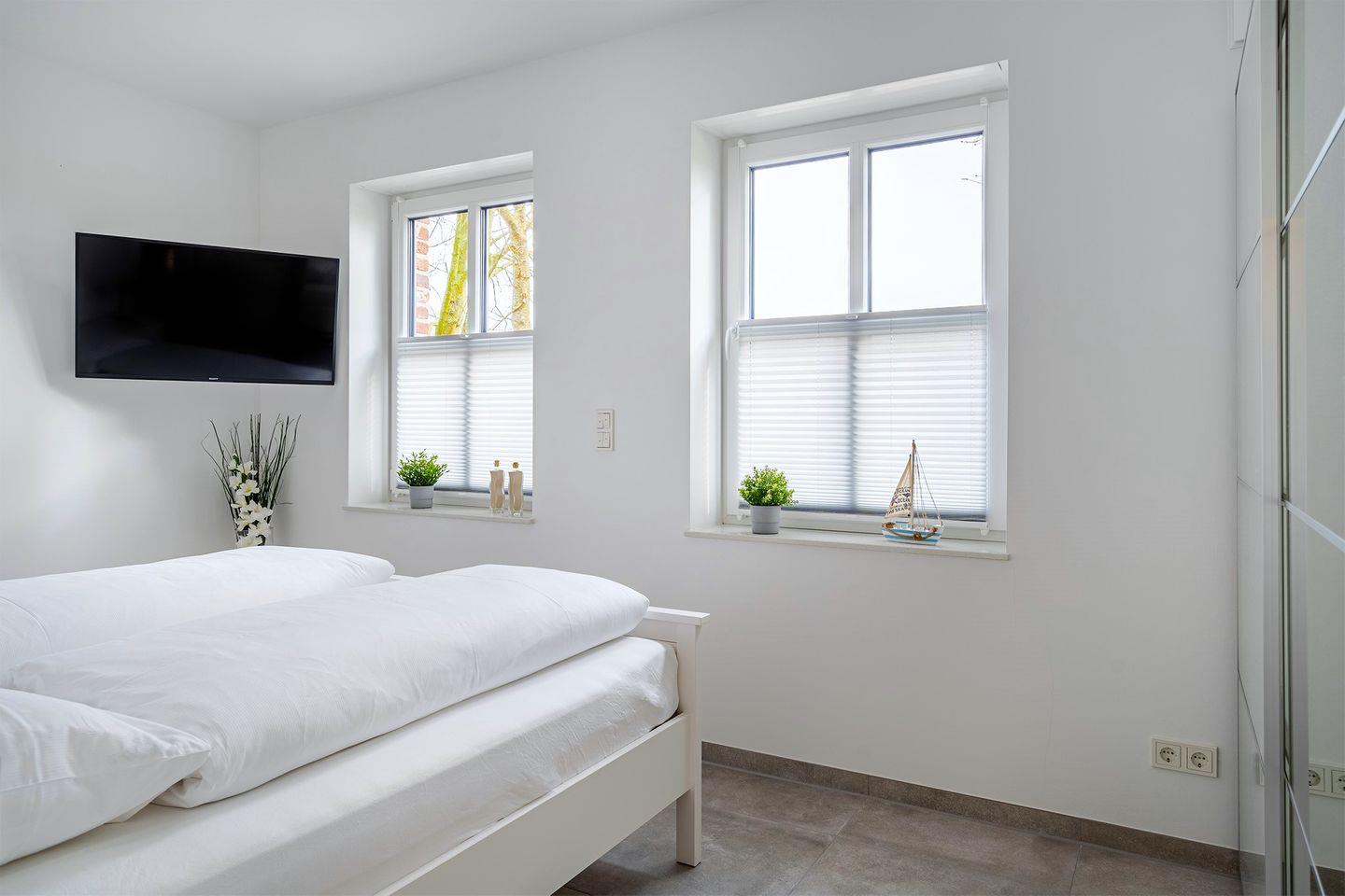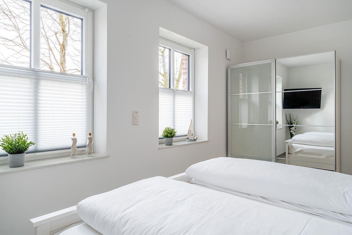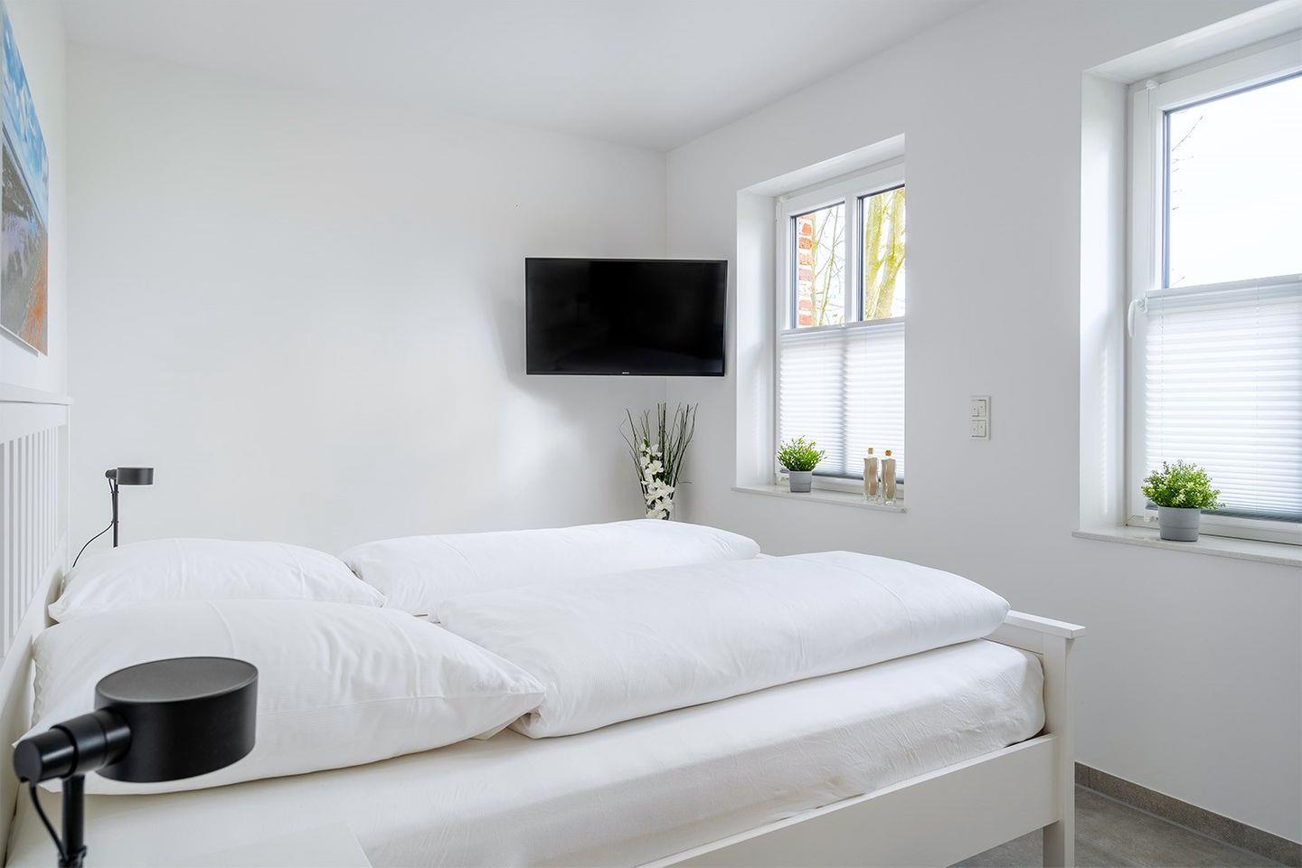 Zwei komfortable Schlafzimmer, die jeweils mit einem Fernseher ausgestattet sind