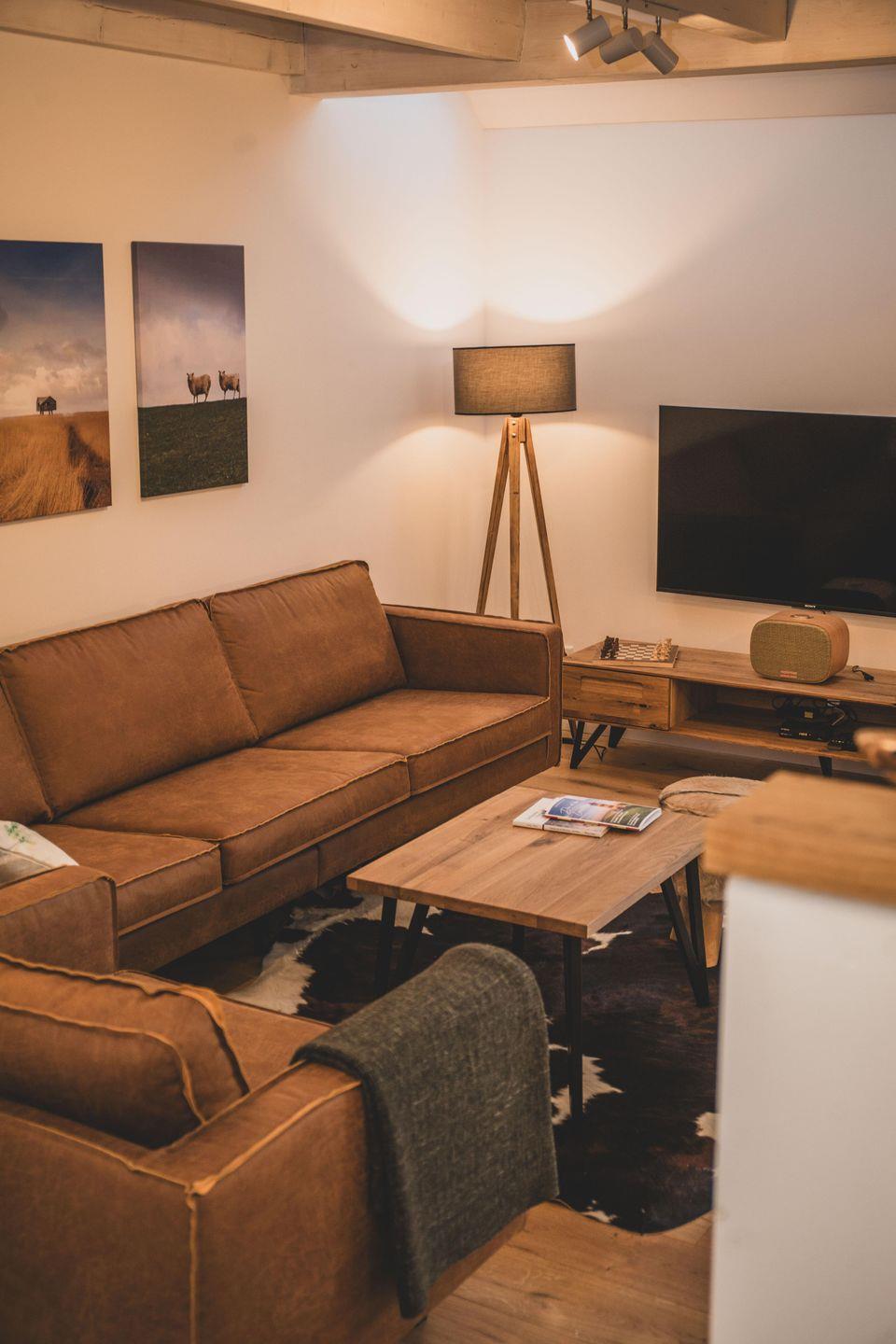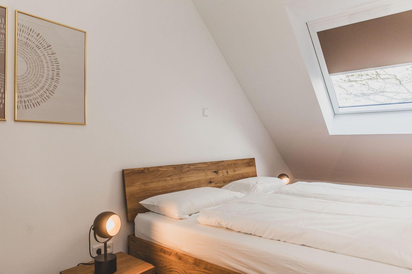 Sie betreten die zweigeschossige Unterkunft durch einen separaten Eingang auf einem abgeschlossenen, großzügigen Grundstück von 3.500 m². Während Ihres Aufenthaltes steht Ihnen ein eigener Privatparkplatz direkt vor Ort zur Verfügung. Die familienfreundliche Ausstattung richtet sich sowohl an Familien mit Kindern als auch an Paare und kleine Reisegruppen: Zwei Schlafzimmer mit Parkettboden und ein großzügiges Wohnzimmer mit gemütlicher Sofaecke bilden das Zentrum dieser Unterkunft. Die hochwertige Zentralheizung inklusive Fußbodenheizung und Sichtschutz an allen Fenstern sorgen zu jeder Jahreszeit für angenehmes Raumklima und Privatsphäre.