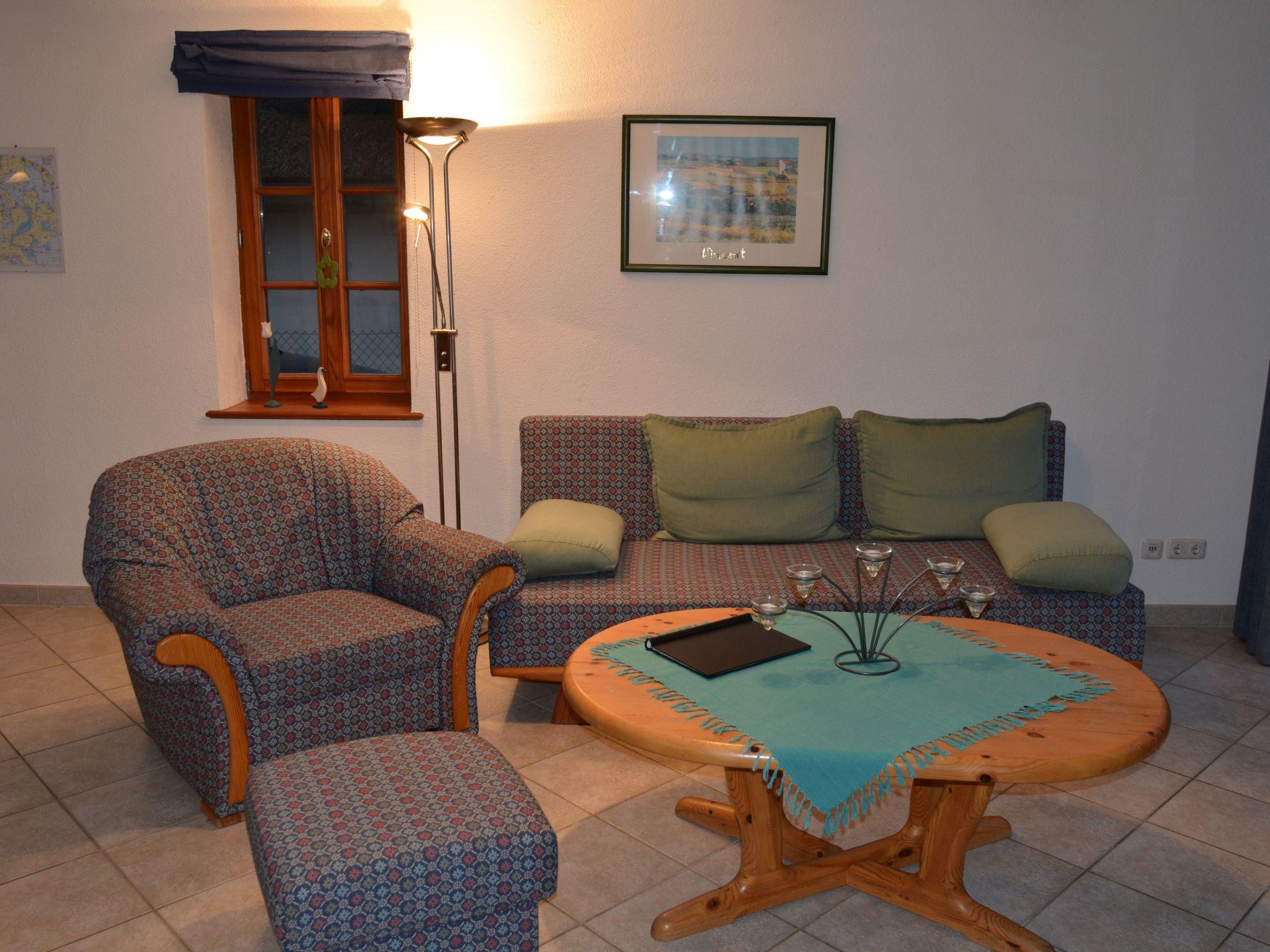 Inside the house, you will find a cosy living room on the ground floor with access to the terrace and a view of the garden. The living room is equipped with a fireplace, satellite TV, DVD and CD player and a small collection of books. The transition to the fully equipped kitchen is enriched by an oak dining table for six people. The kitchen has brand-name appliances and everything you need for cooking and baking. A bathroom with bathtub, shower and underfloor heating as well as a utility room with washing machine complete the ground floor. A small spiral staircase leads to the first floor with two spacious bedrooms, each equipped with double beds, bedside tables and ample storage space.