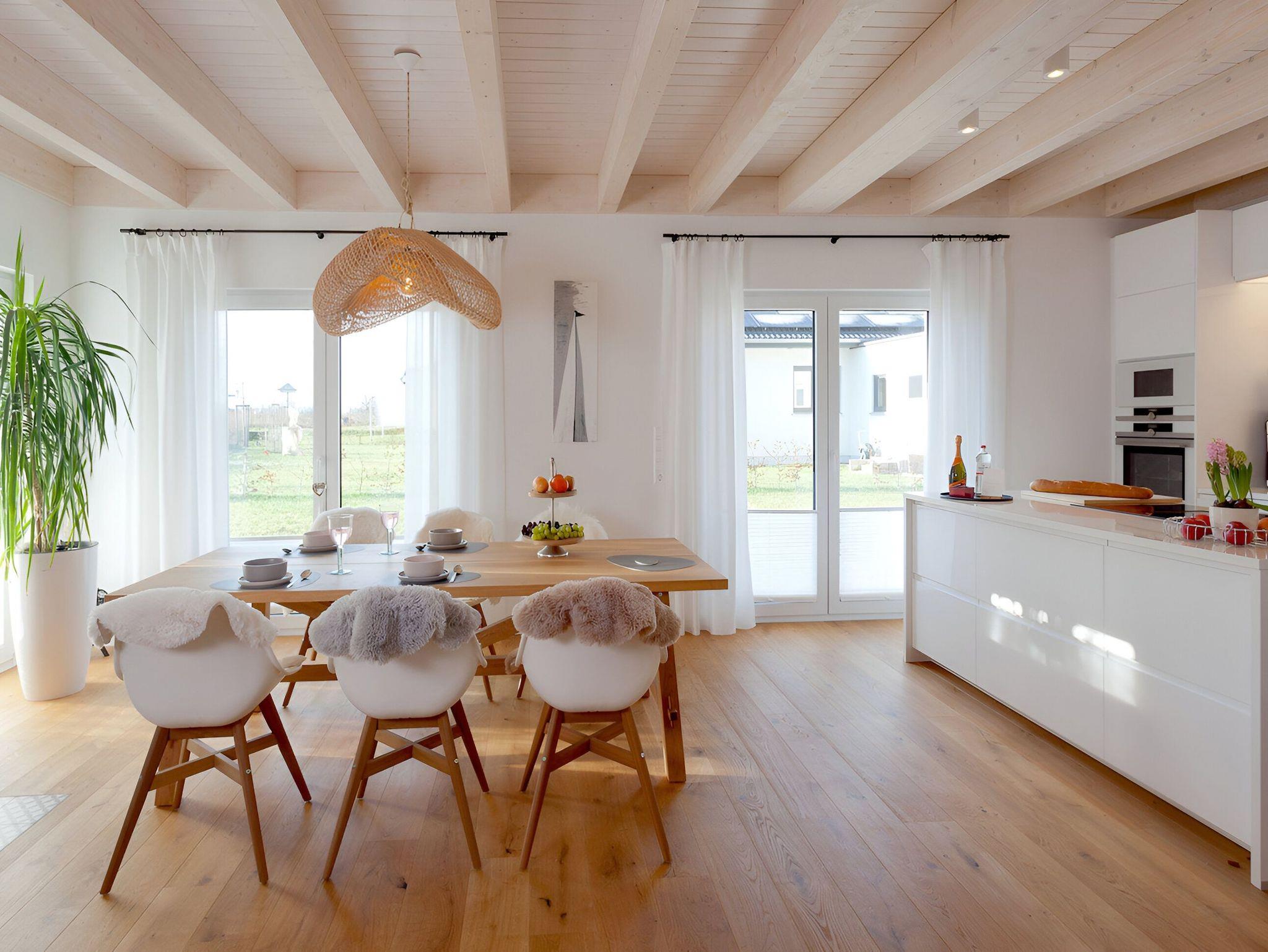 Ferienhaus No. 2: ca. 140 m², 3 Schlafzimmer, offener Wohn/Essbereich mit Kamin, Küche, Bad mit Sauna, Terrasse & Garten.
