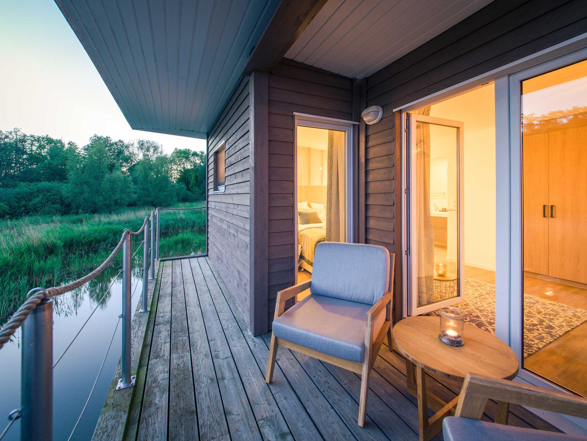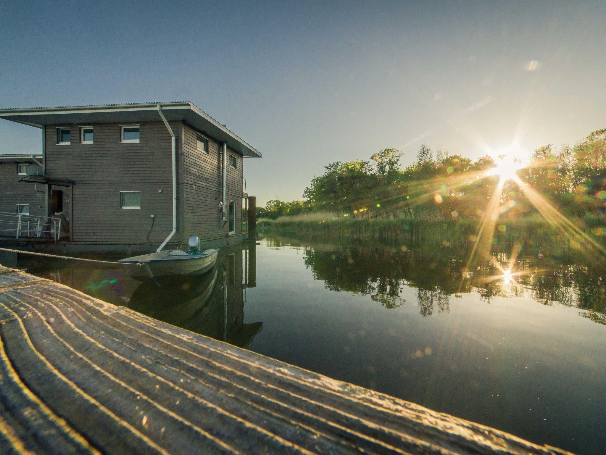 Die neuen exklusiven Schwimmenden Suiten liegen in der kleinen 4-Sterne Marina Naturhafen Krummin auf der Insel Usedom: Der Blick auf das Wasser begleitet Ihren Urlaub die gesamte Zeit.
