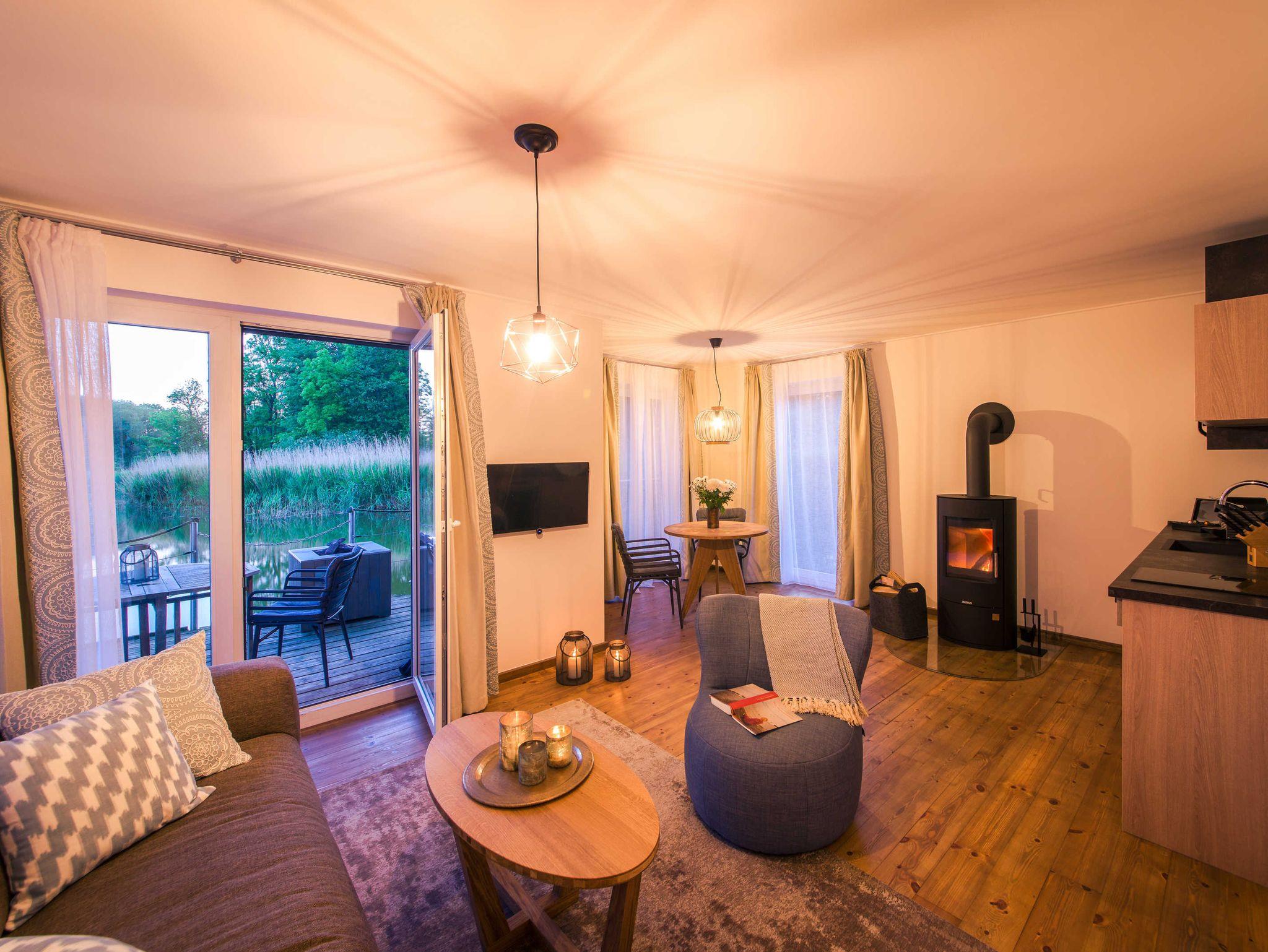 Im Herbst und Winter sorgen Kerzen und ein Kamin (Nutzbar von November bis April) für eine behagliche und kuschelige Atmosphäre im Wohnzimmer.